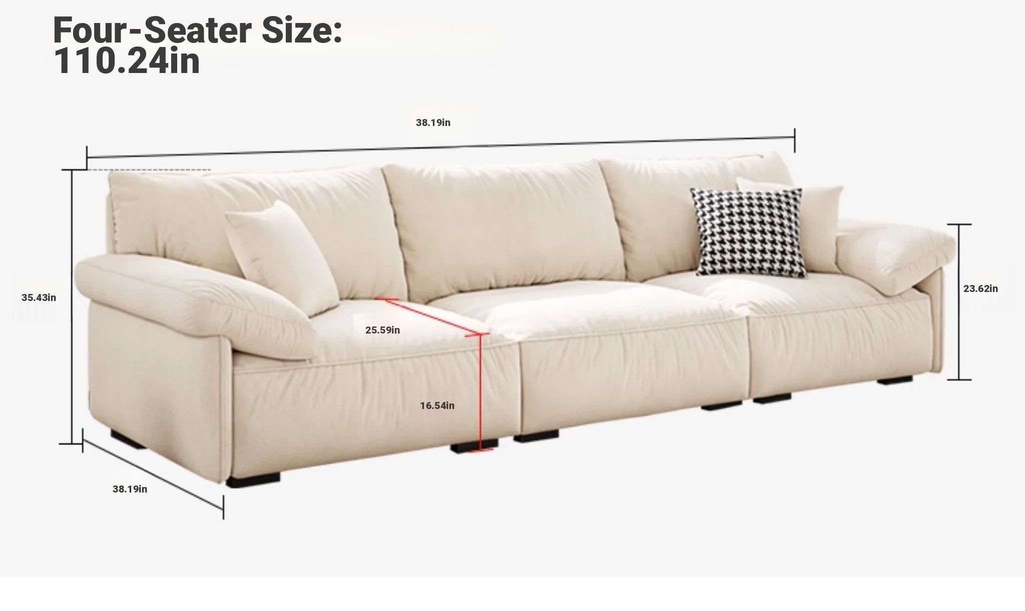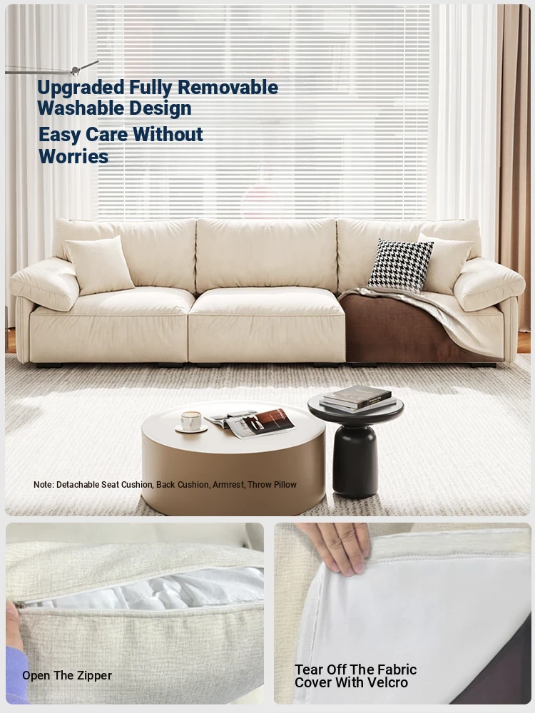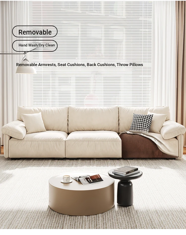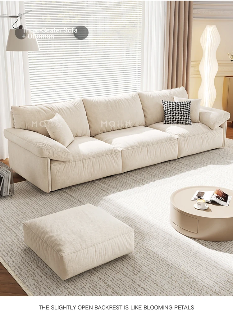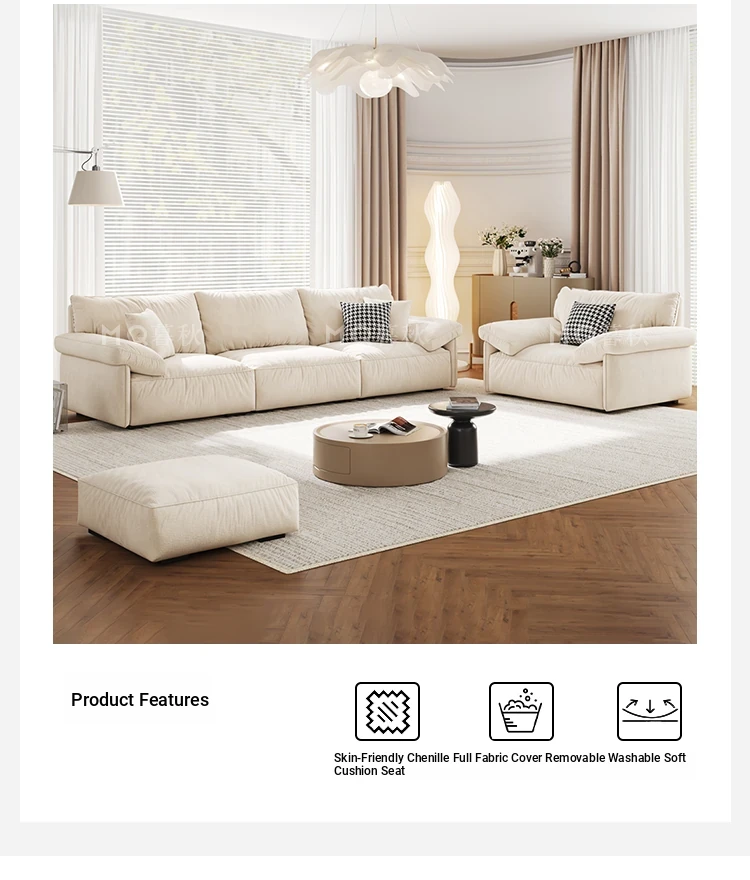 Removable and Washable Chenille French Cream Fabric Sofa with Elephant Ears - 2025 New Tofu Block Sofa for Your Living Room