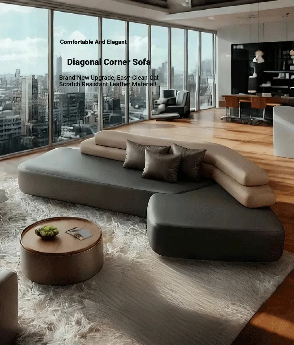 Stylish Italian-Inspired Non-Washable Cat Scratch Resistant Corner Sofa for Offices, Lounges, Showrooms, Hotels, and Beauty Salons - Perfect for Reception Areas!
