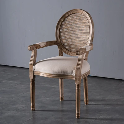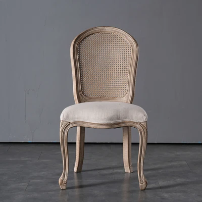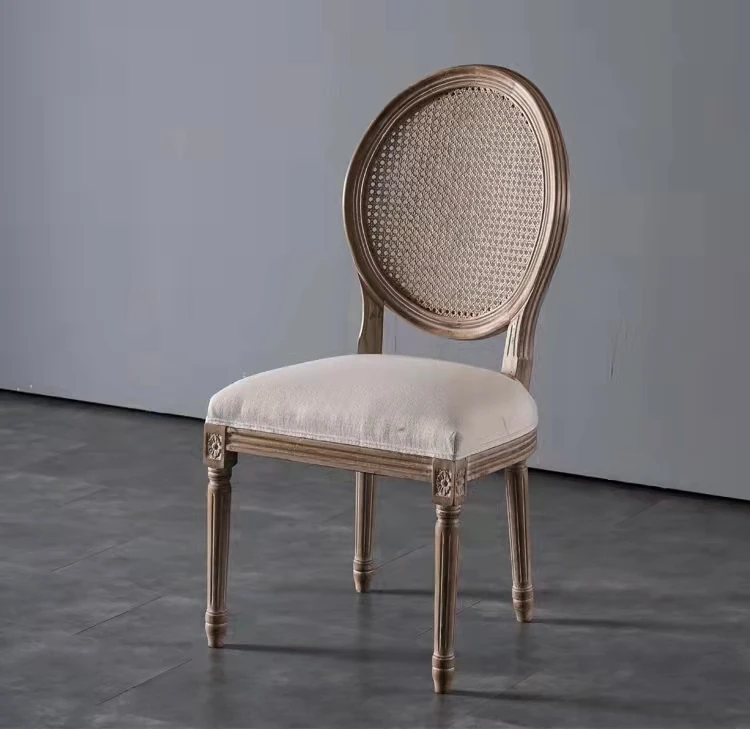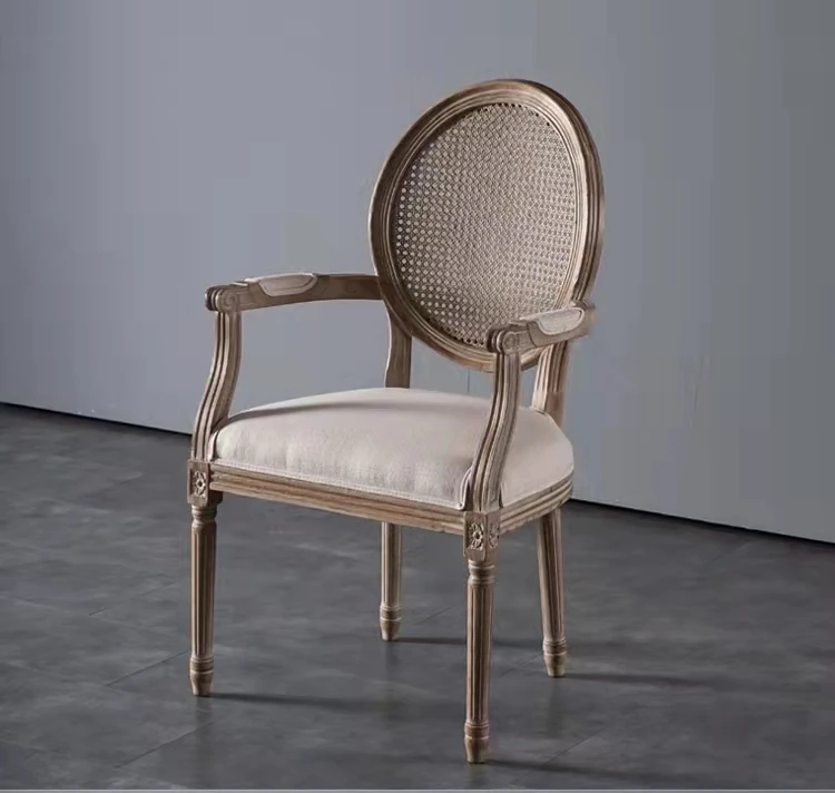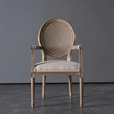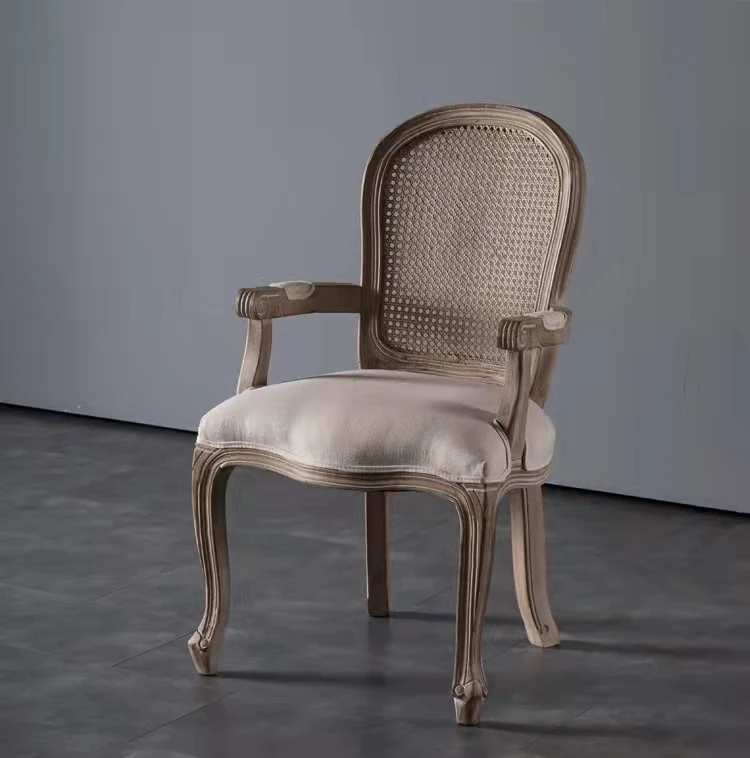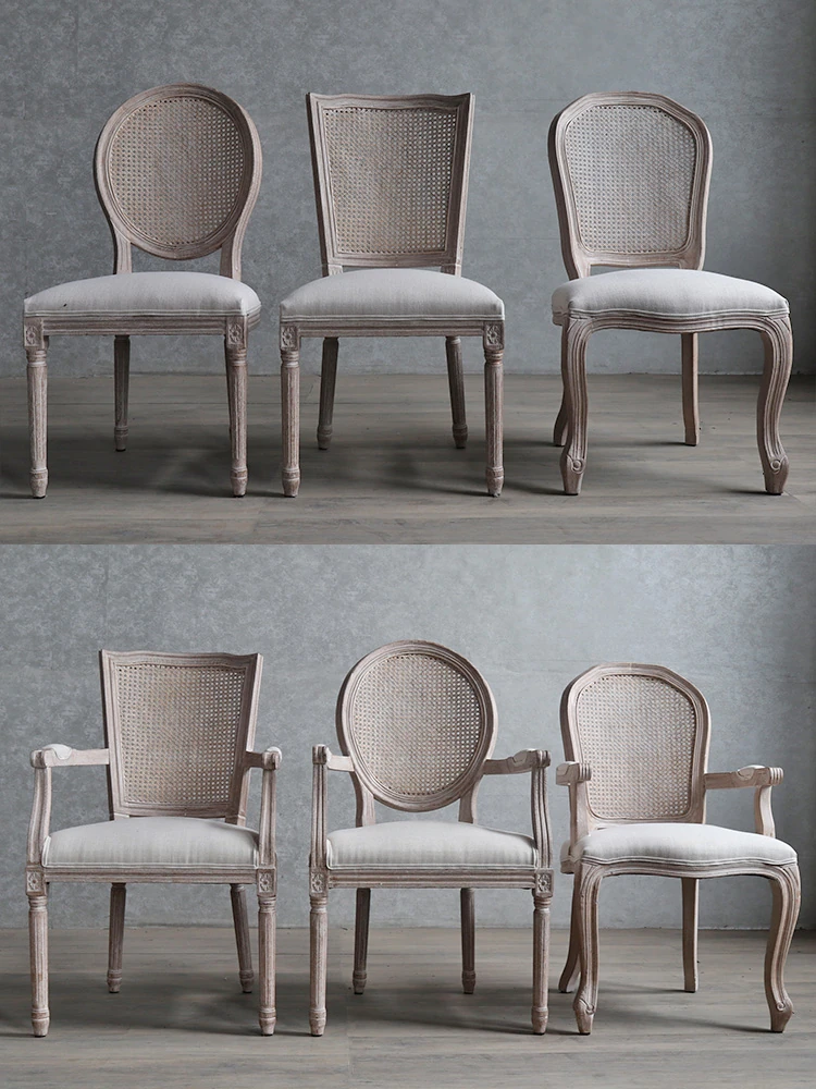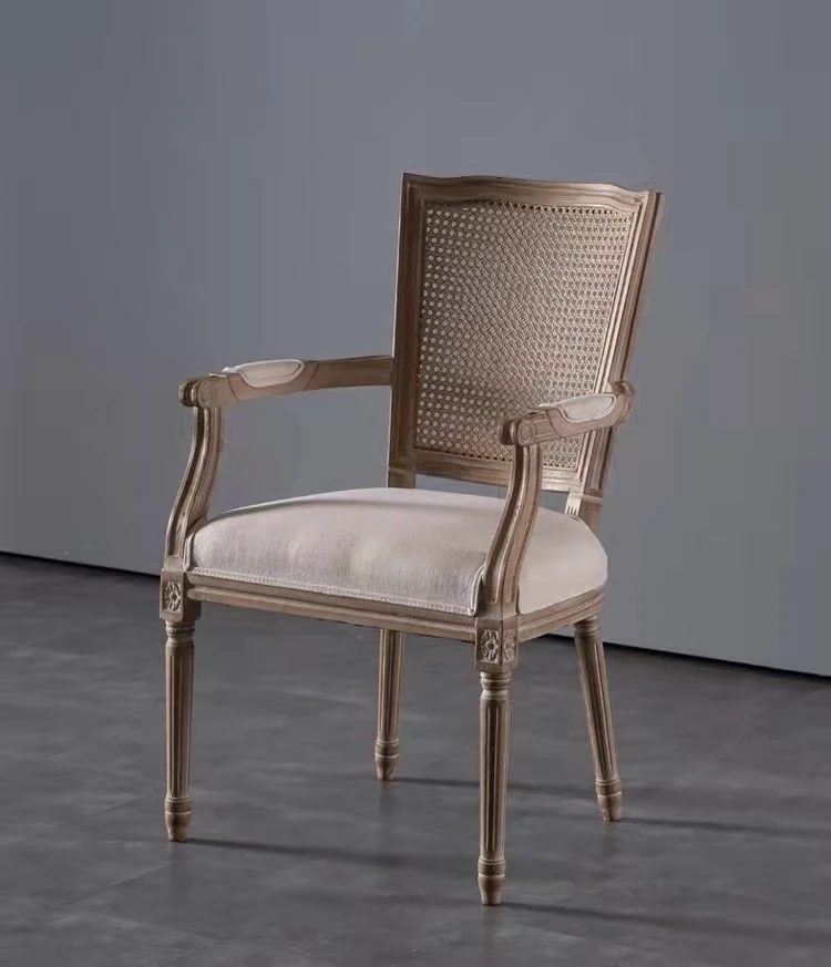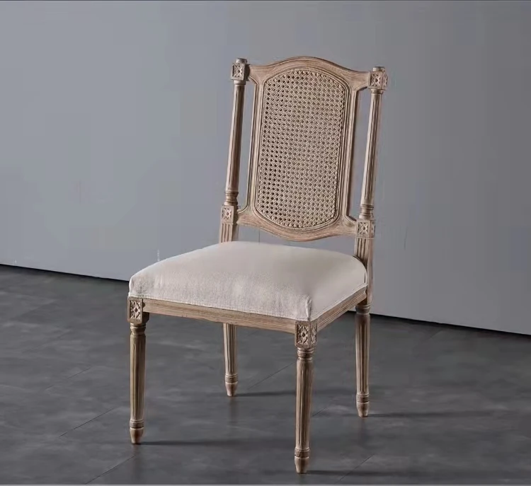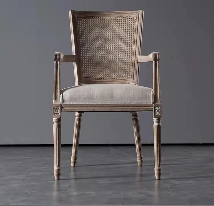 Vintage Rattan Dining Chair - Solid Wood French Style with Backrest, Perfect for Cafés, Bars, and Cozy BnBs - American Country Rustic Relaxation Armchair