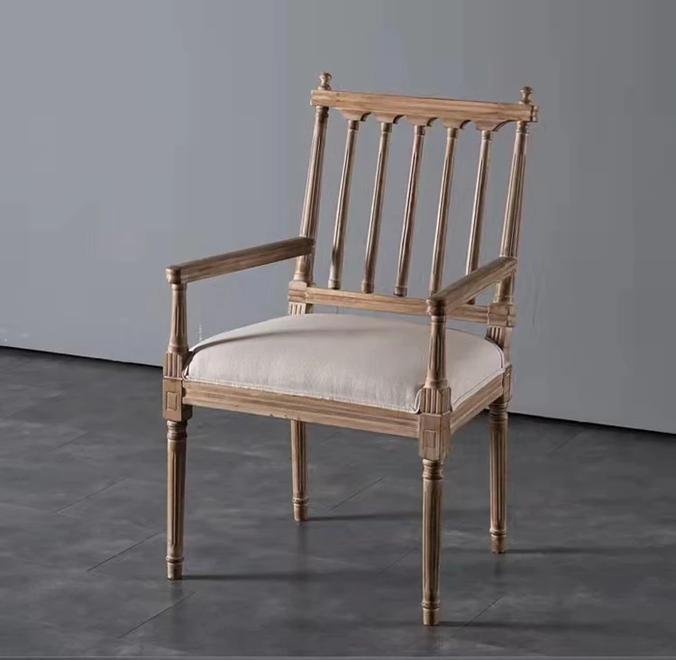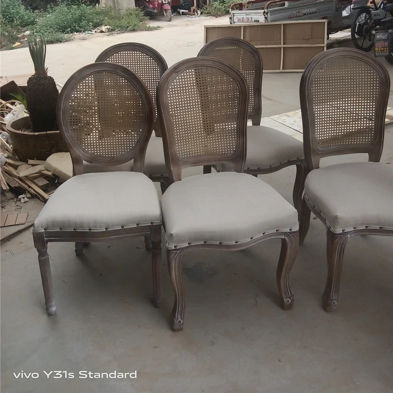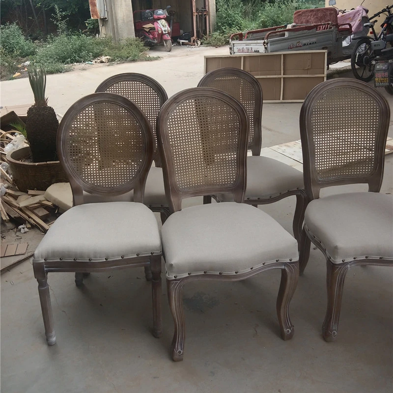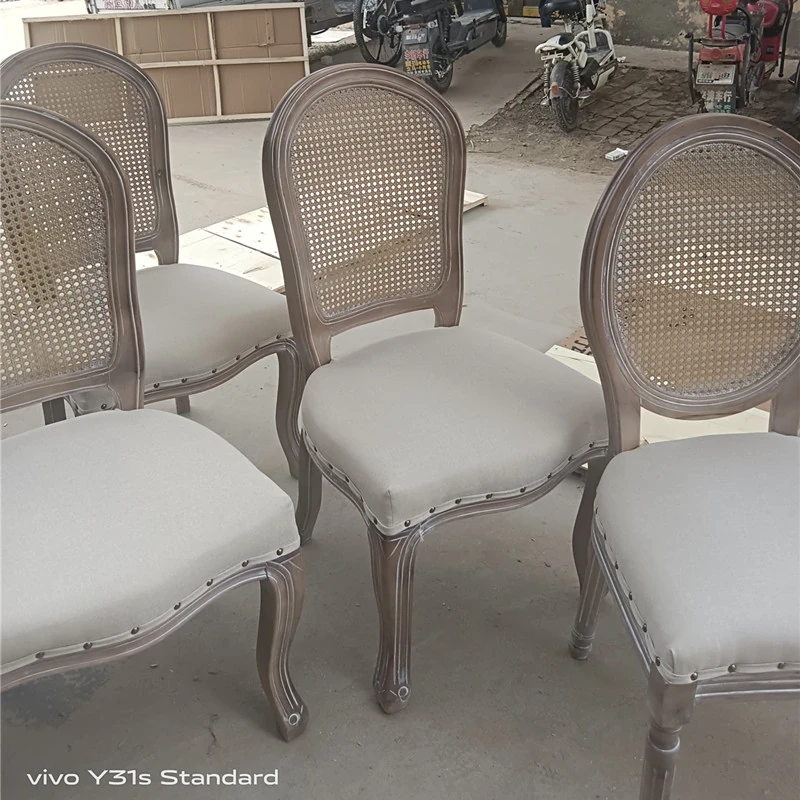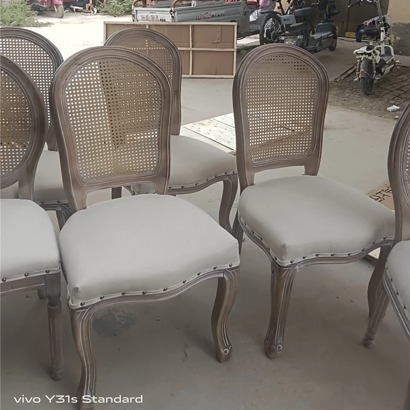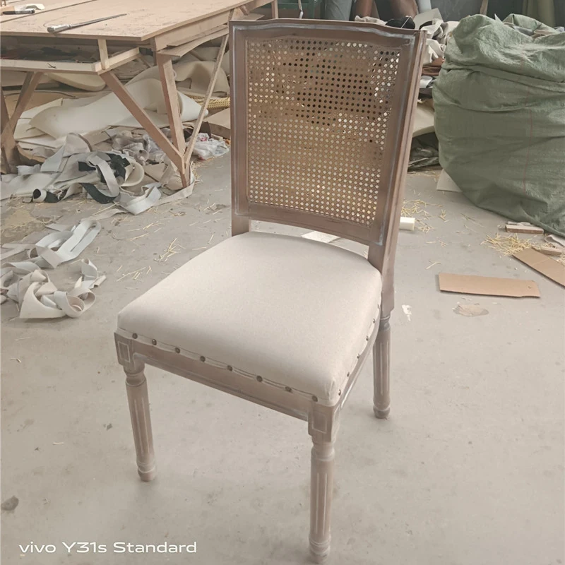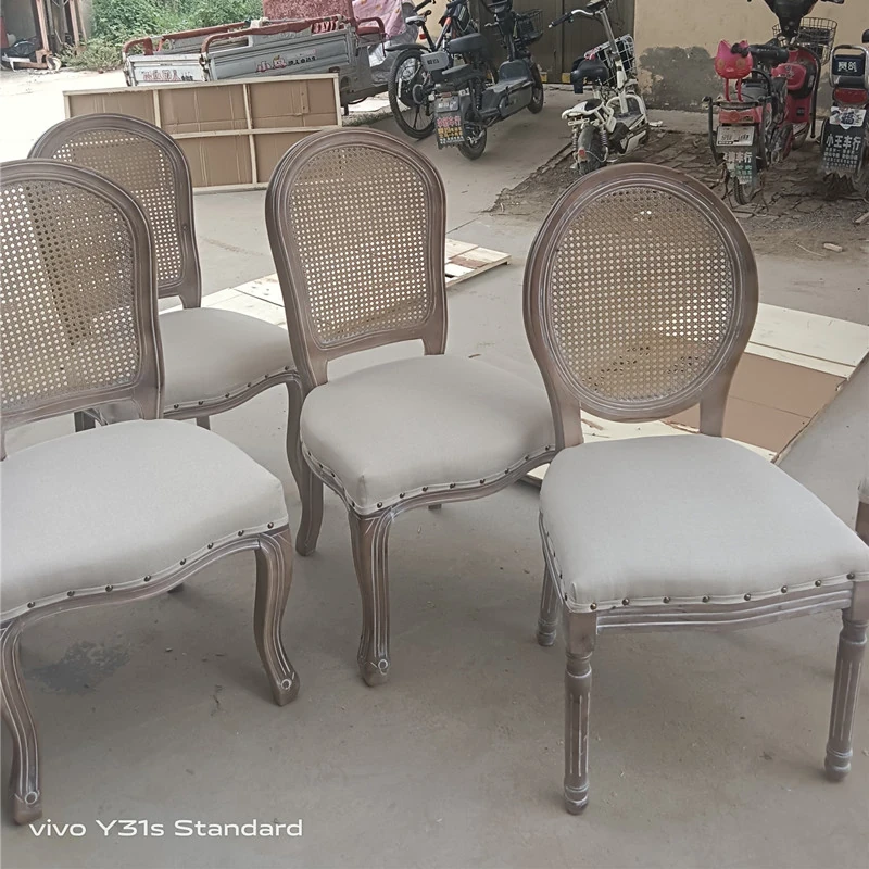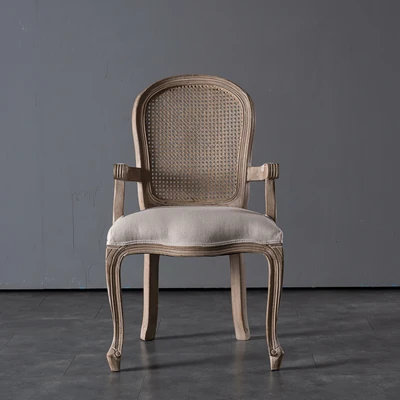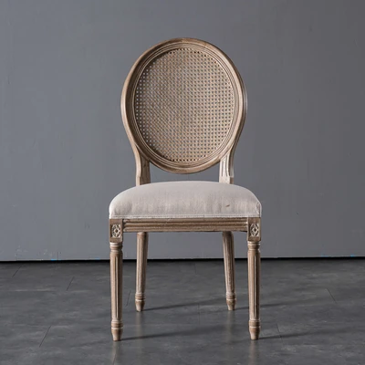 Vintage Rattan Dining Chair - Solid Wood French Style with Backrest, Perfect for Cafés, Bars, and Cozy BnBs - American Country Rustic Relaxation Armchair