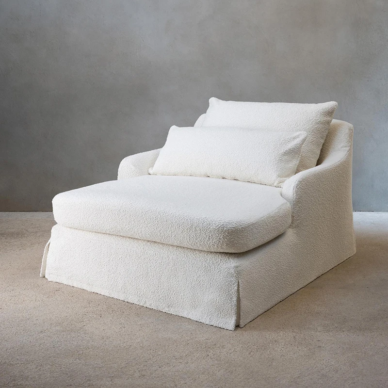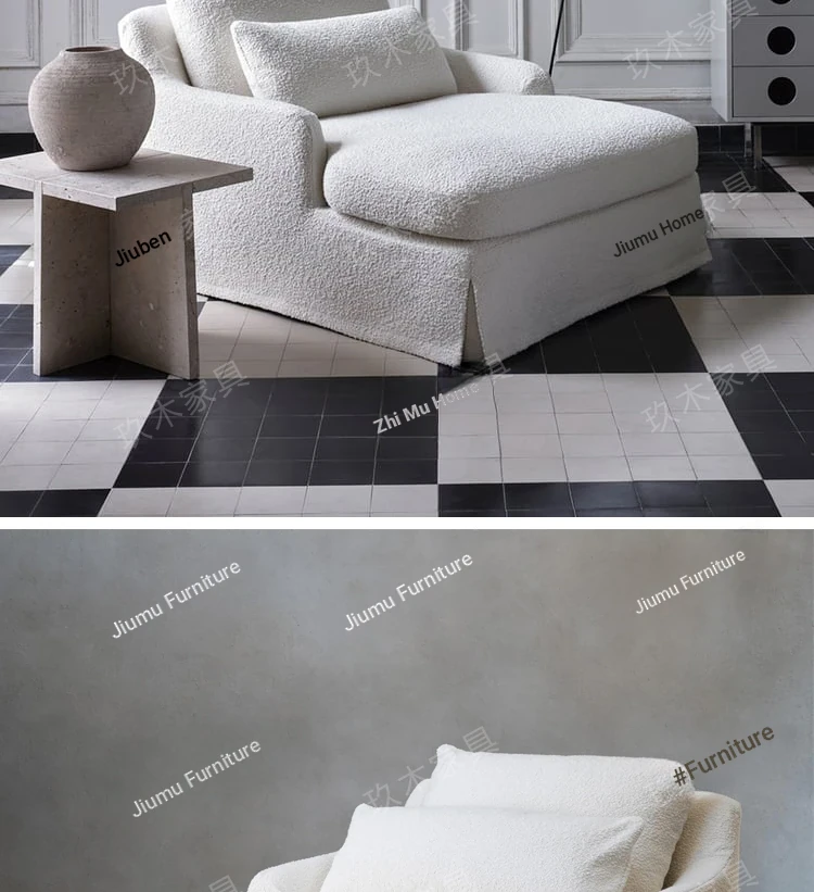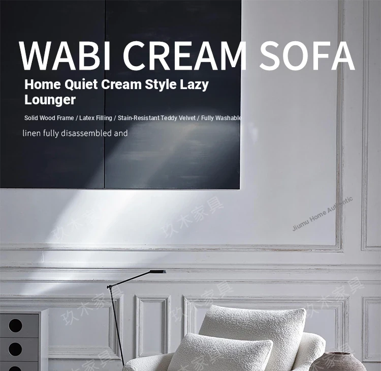 Wabi-Sabi Cream Fabric Chaise Lounge Chair for Small Living Rooms - Designer Removable Cover Lazy Sofa for Ultimate Relaxation