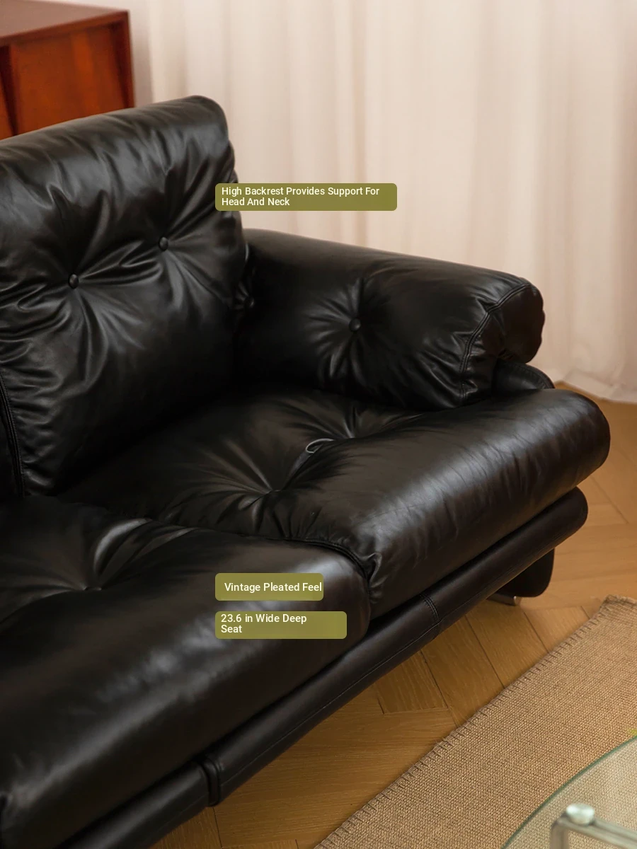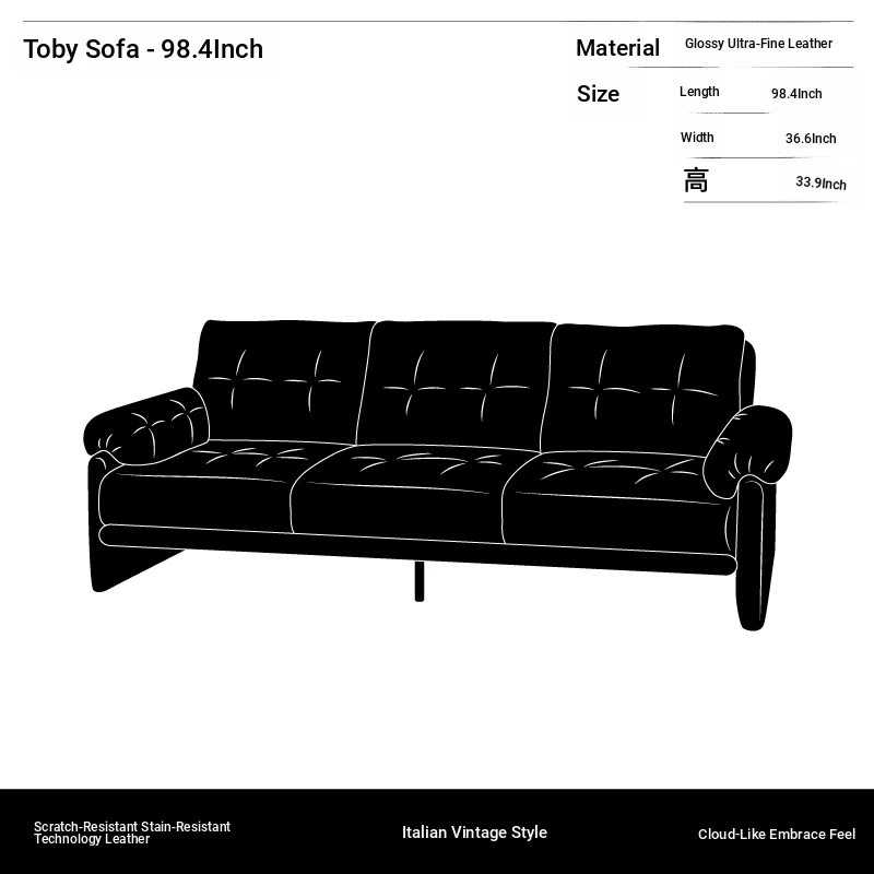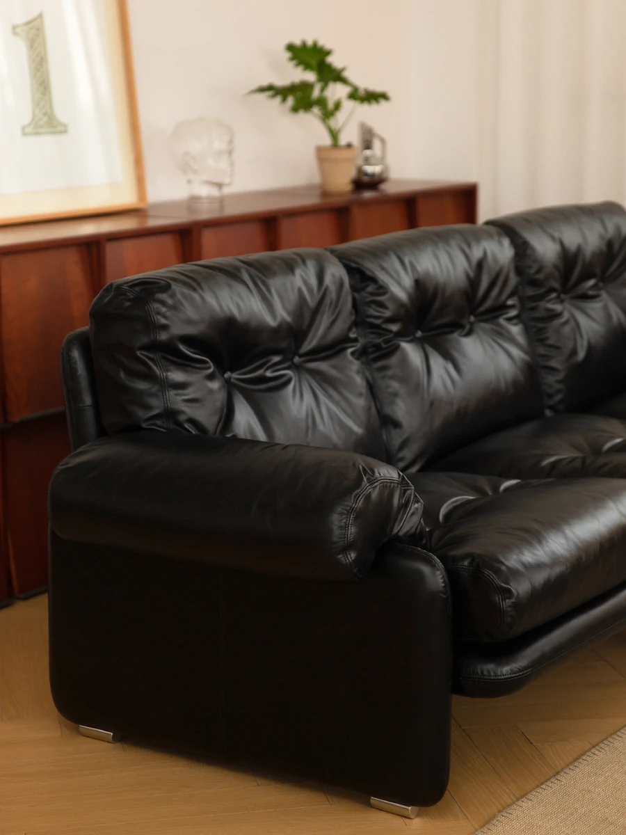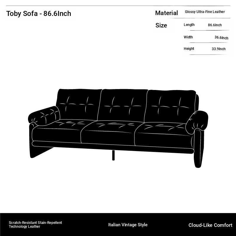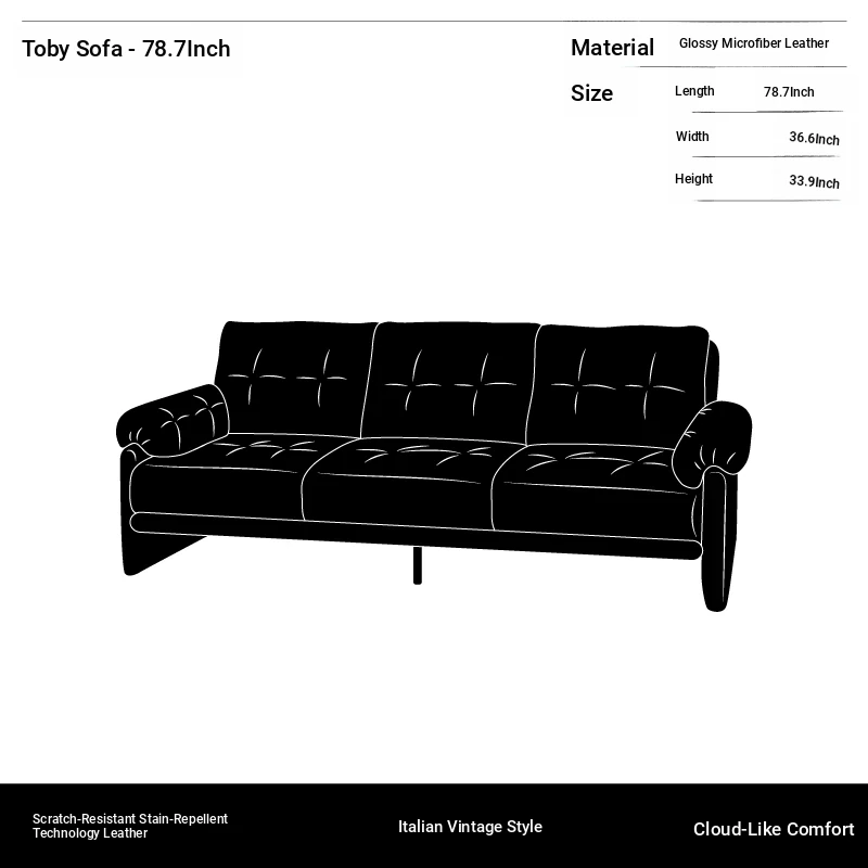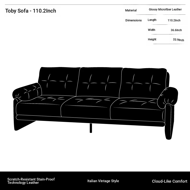 Yizhou Furniture | Toby Retro Straight-Line Down Sofa for Small Spaces, Italian Style 3-Seater in Black Tech Leather - Perfect for Modern Living Rooms
