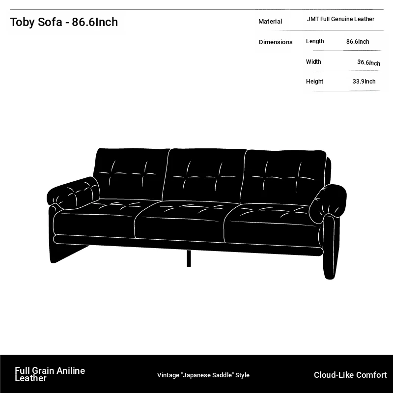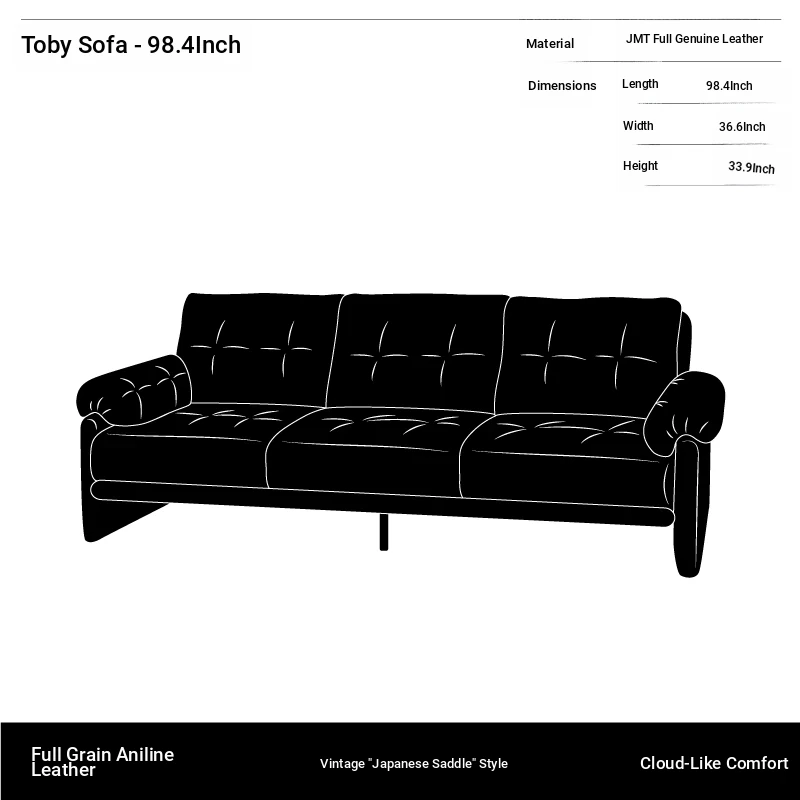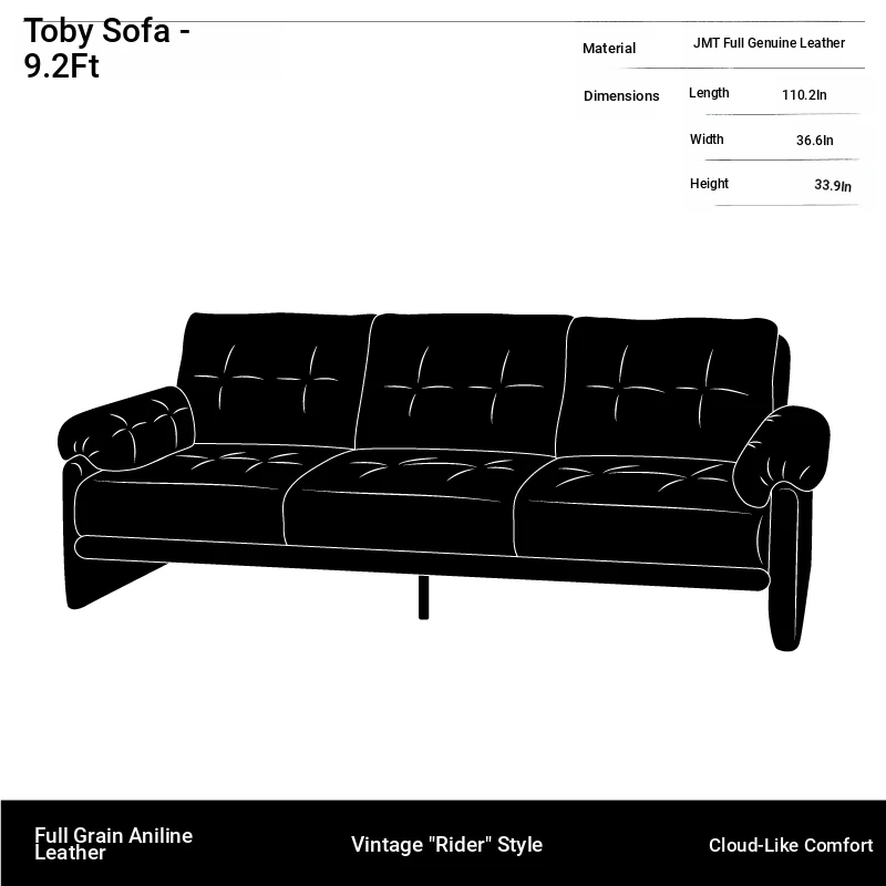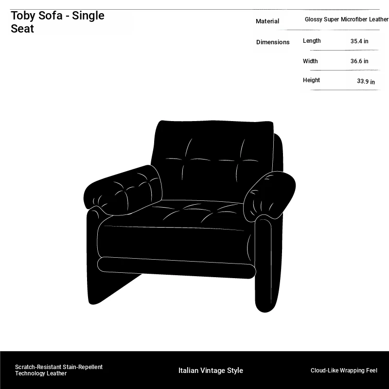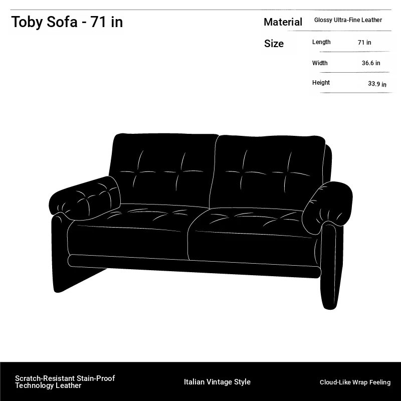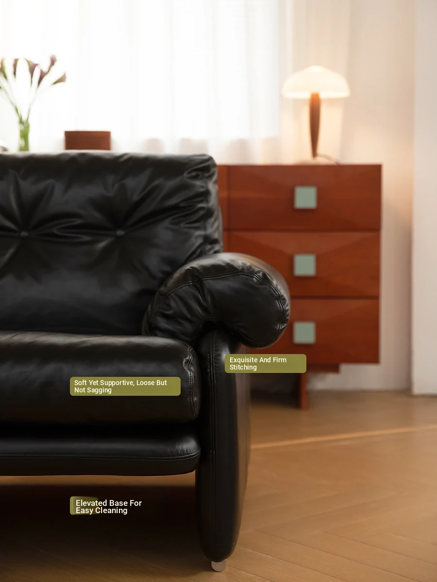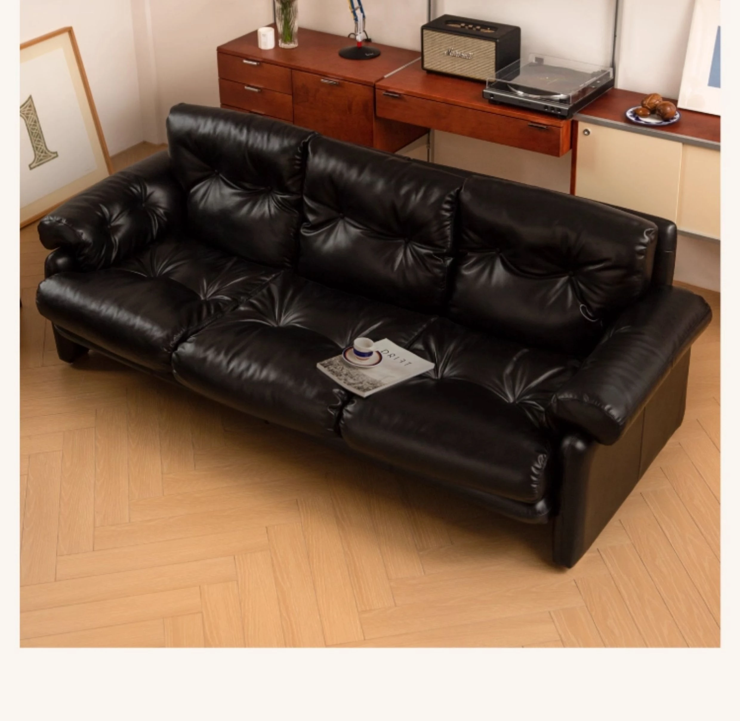 Yizhou Furniture | Toby Retro Straight-Line Down Sofa for Small Spaces, Italian Style 3-Seater in Black Tech Leather - Perfect for Modern Living Rooms