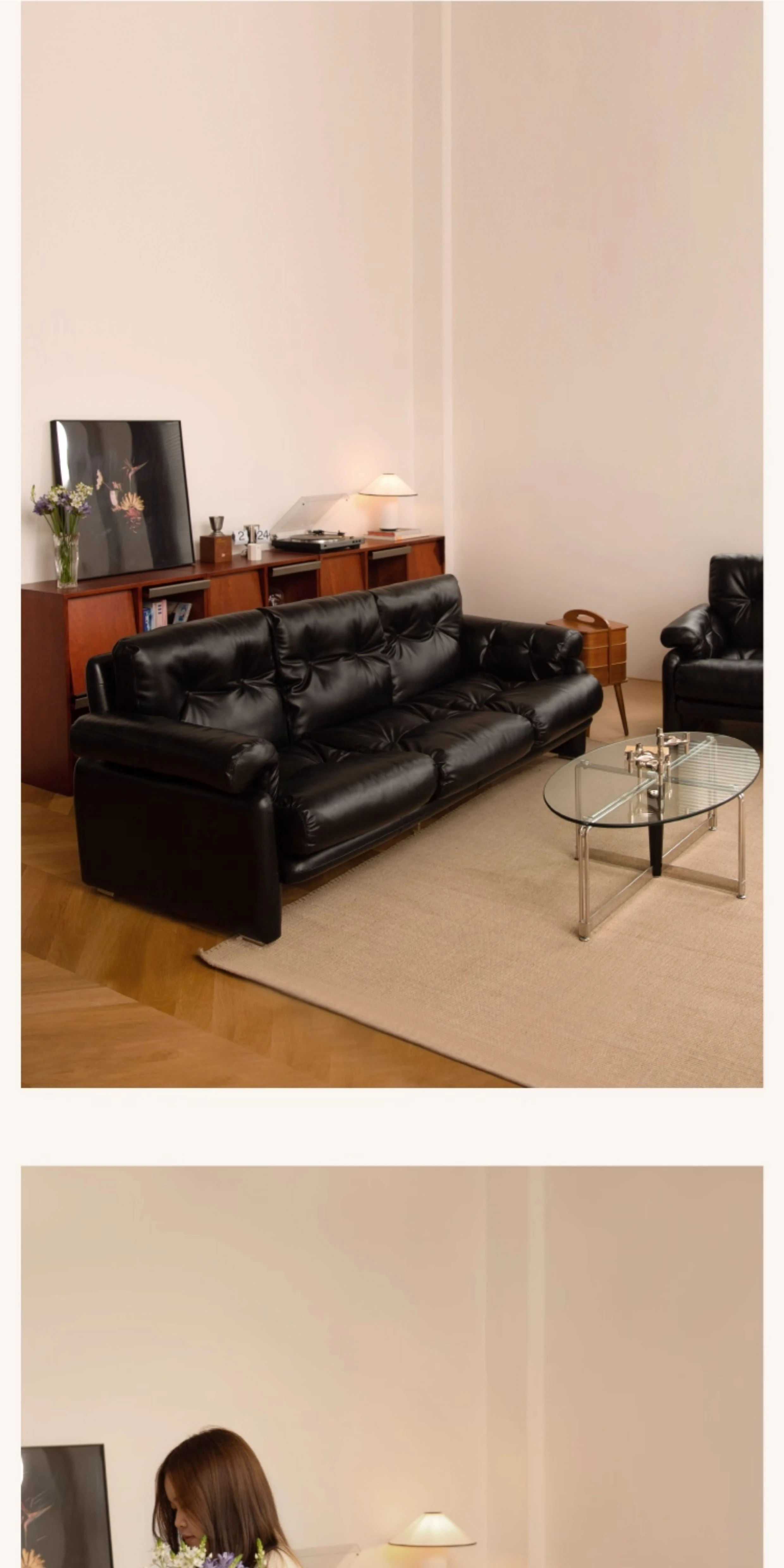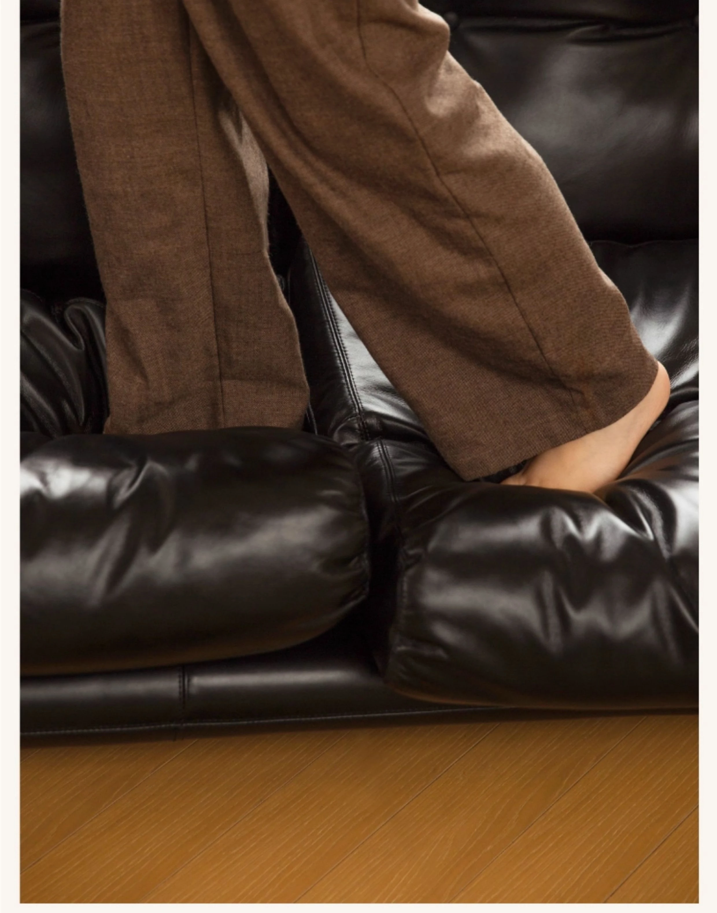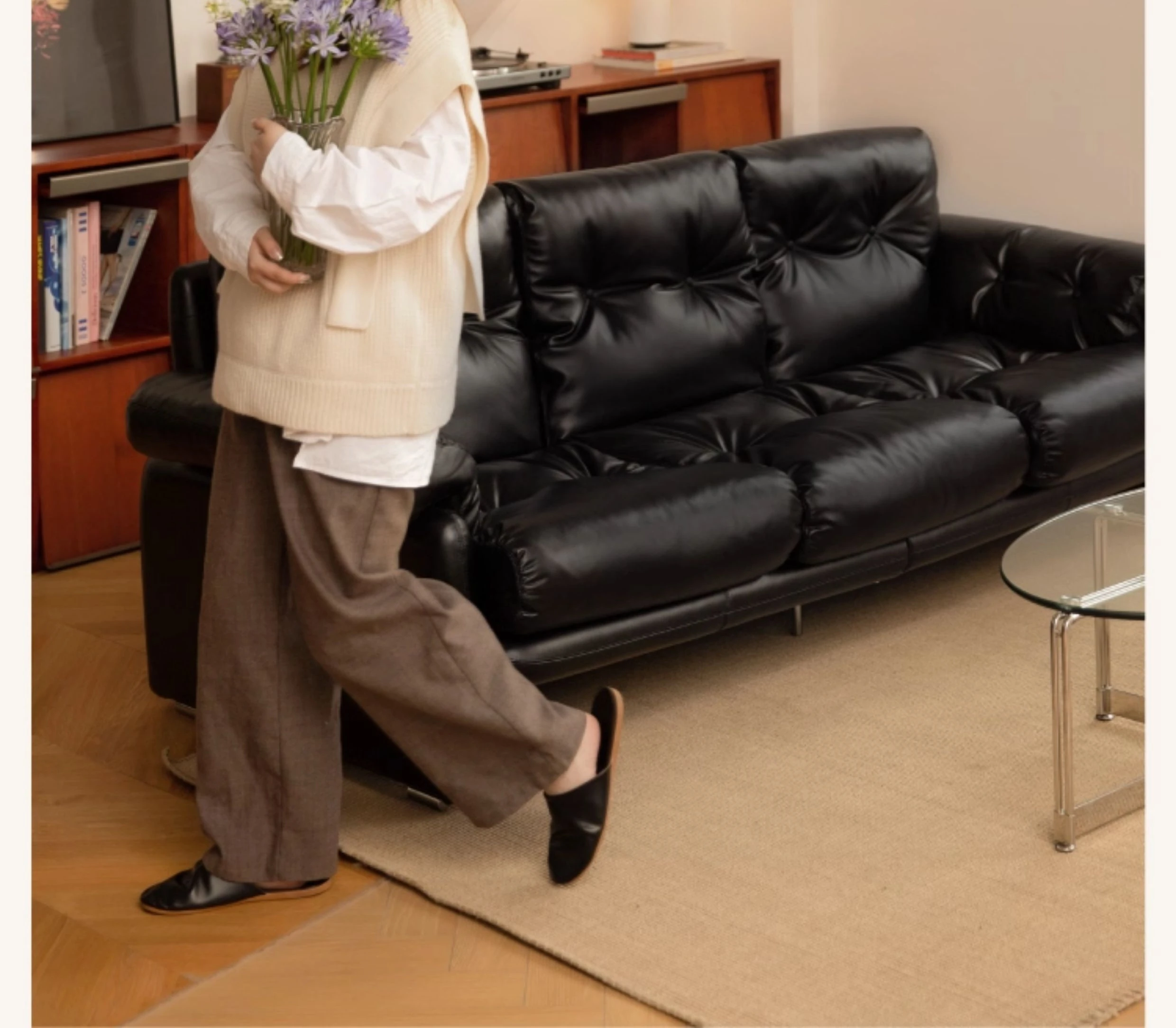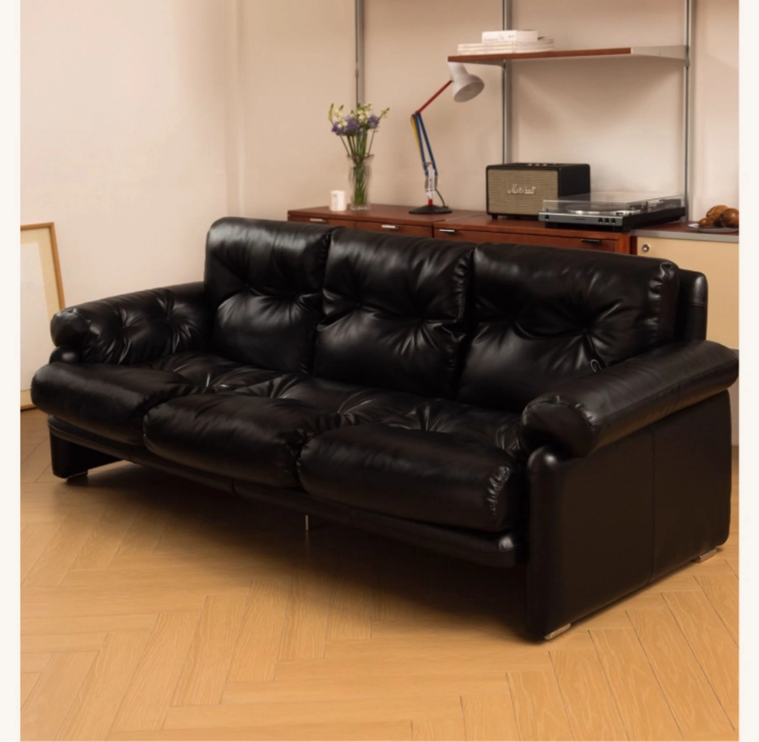 Yizhou Furniture | Toby Retro Straight-Line Down Sofa for Small Spaces, Italian Style 3-Seater in Black Tech Leather - Perfect for Modern Living Rooms