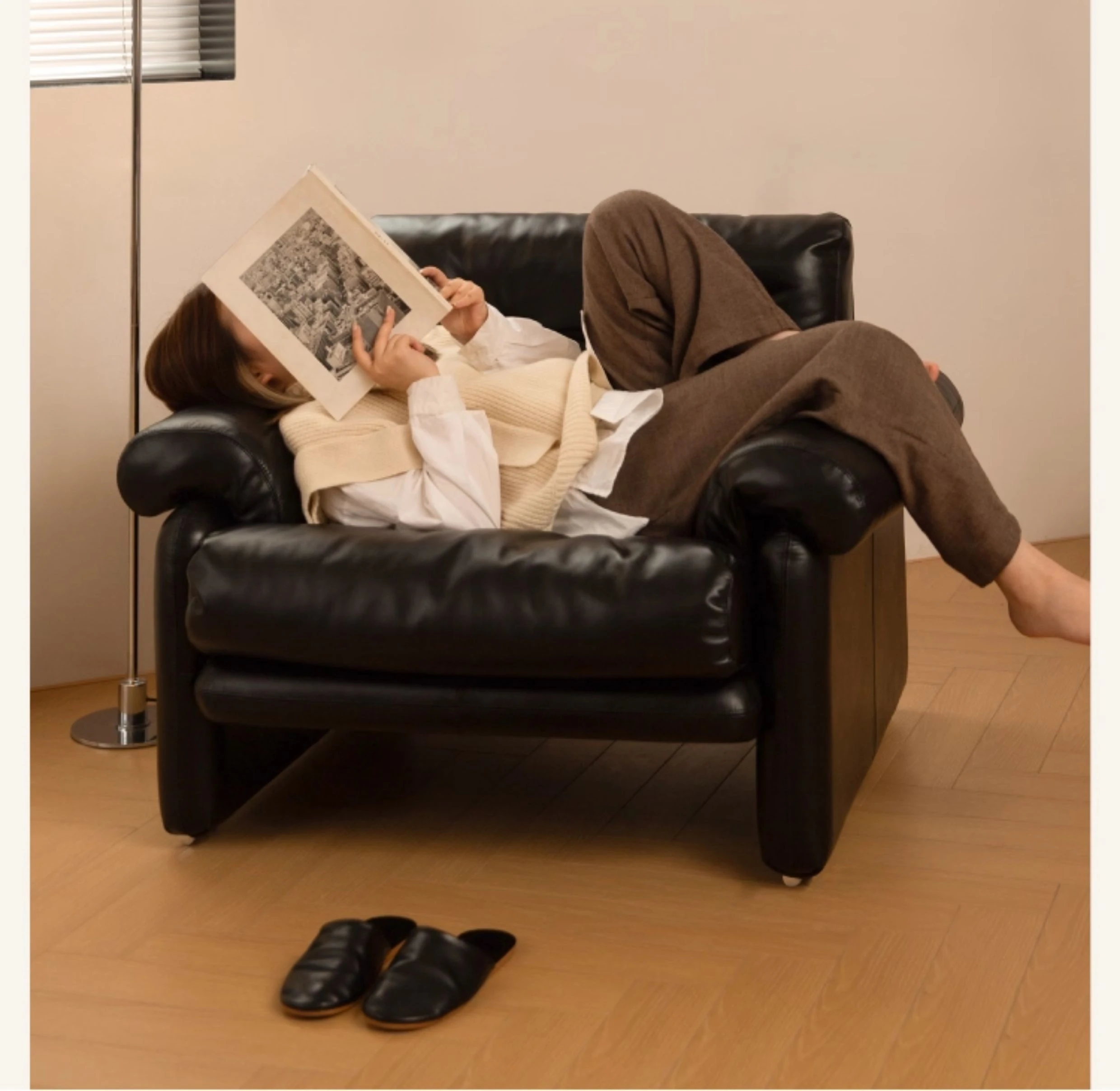Retro bright black ultra-fiber leather-single position(| 45 days after order)