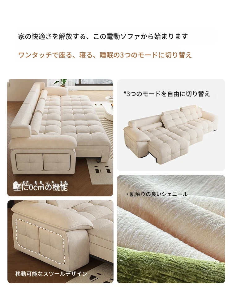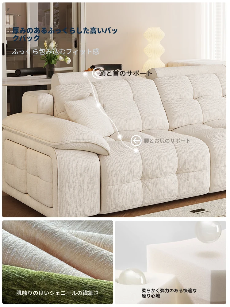 リクライニング機能付き電動ソファ|リビングに最適!多機能の貴婦人チェア|家で使える伸縮式|壁にぴったりフィットする雪尼ール素材で快適さを追求!