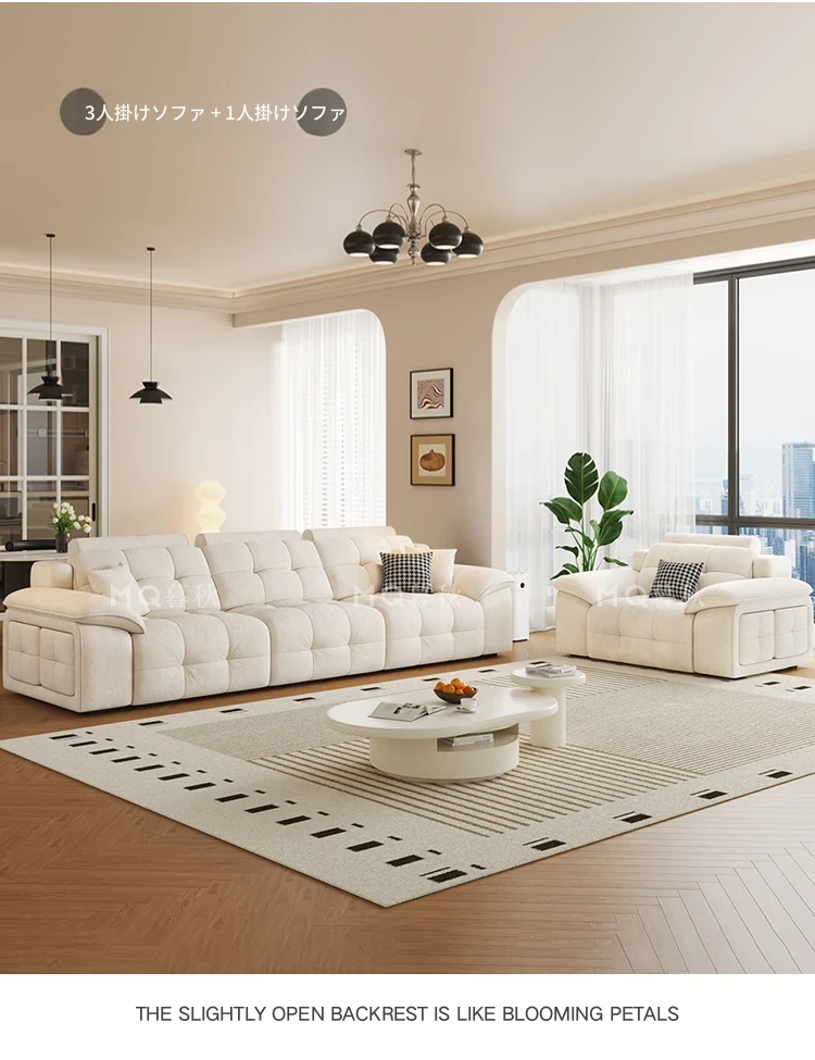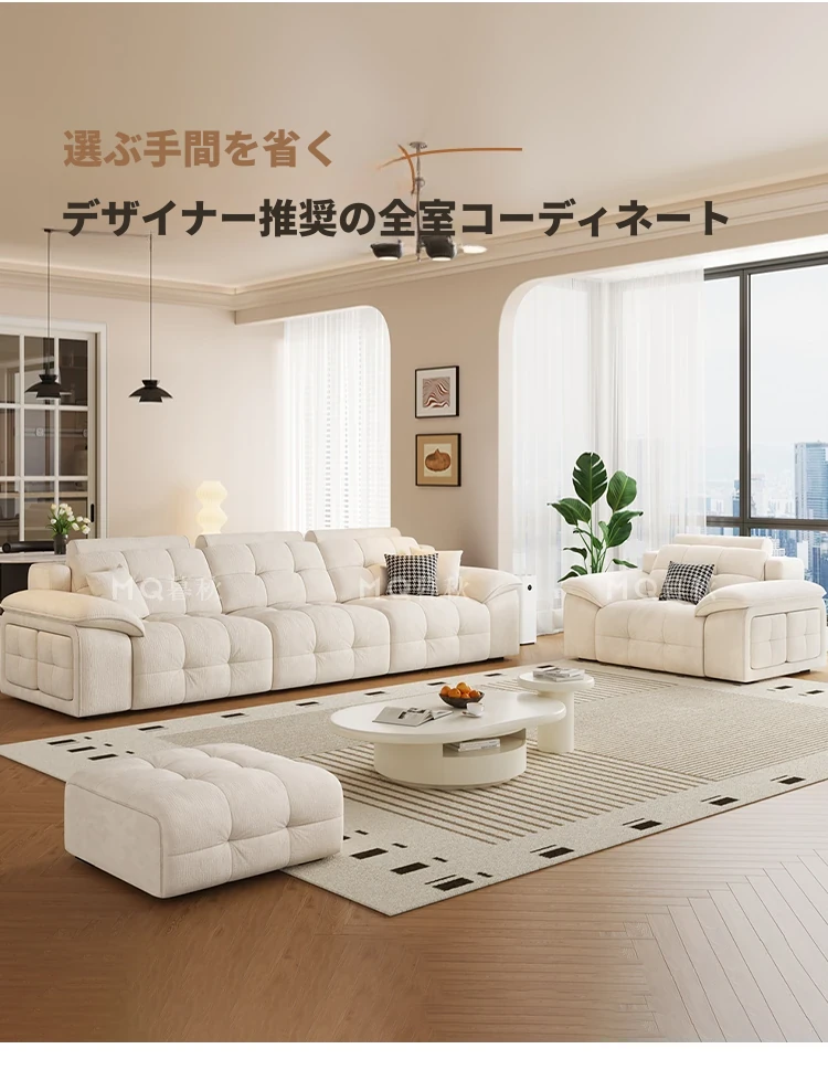 3.0m三電動+コンビネーションコーヒーテーブル+伸縮テレビキャビネット+1.4mダイニングテーブル+ダイニングチェア*4