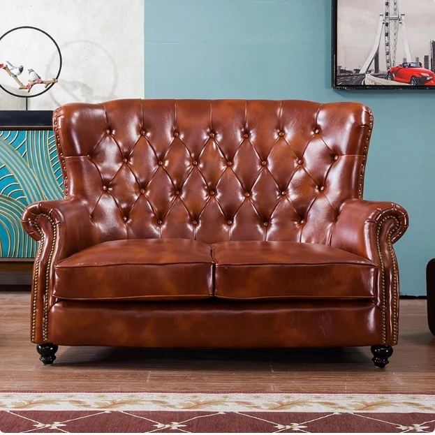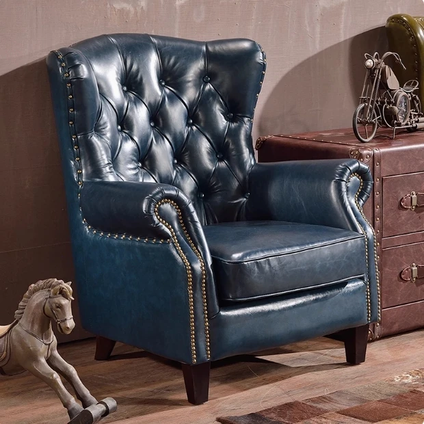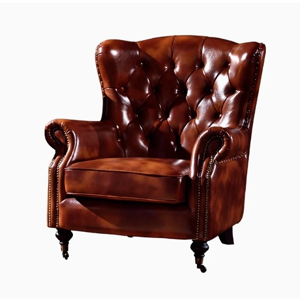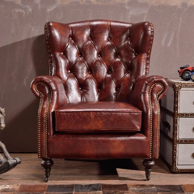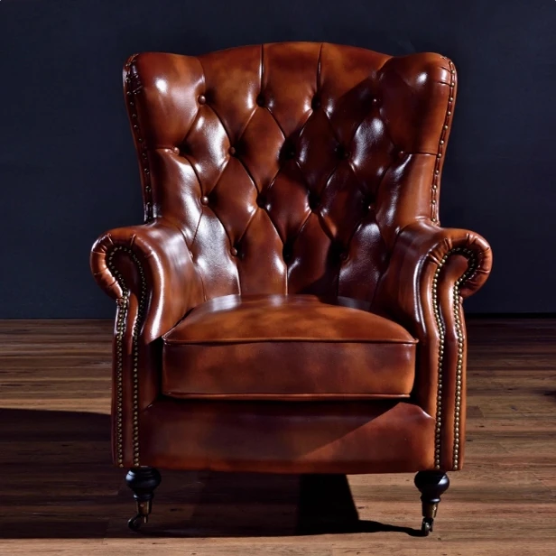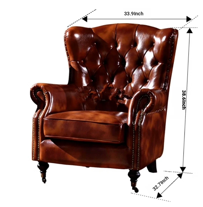 American Vintage Luxury Leather Single Sofa - Stylish Reclining Armchair, Retro Leather Lounge Chair, Elegant Tiger Chair, Genuine Leather Accent Chair for Comfort and Style