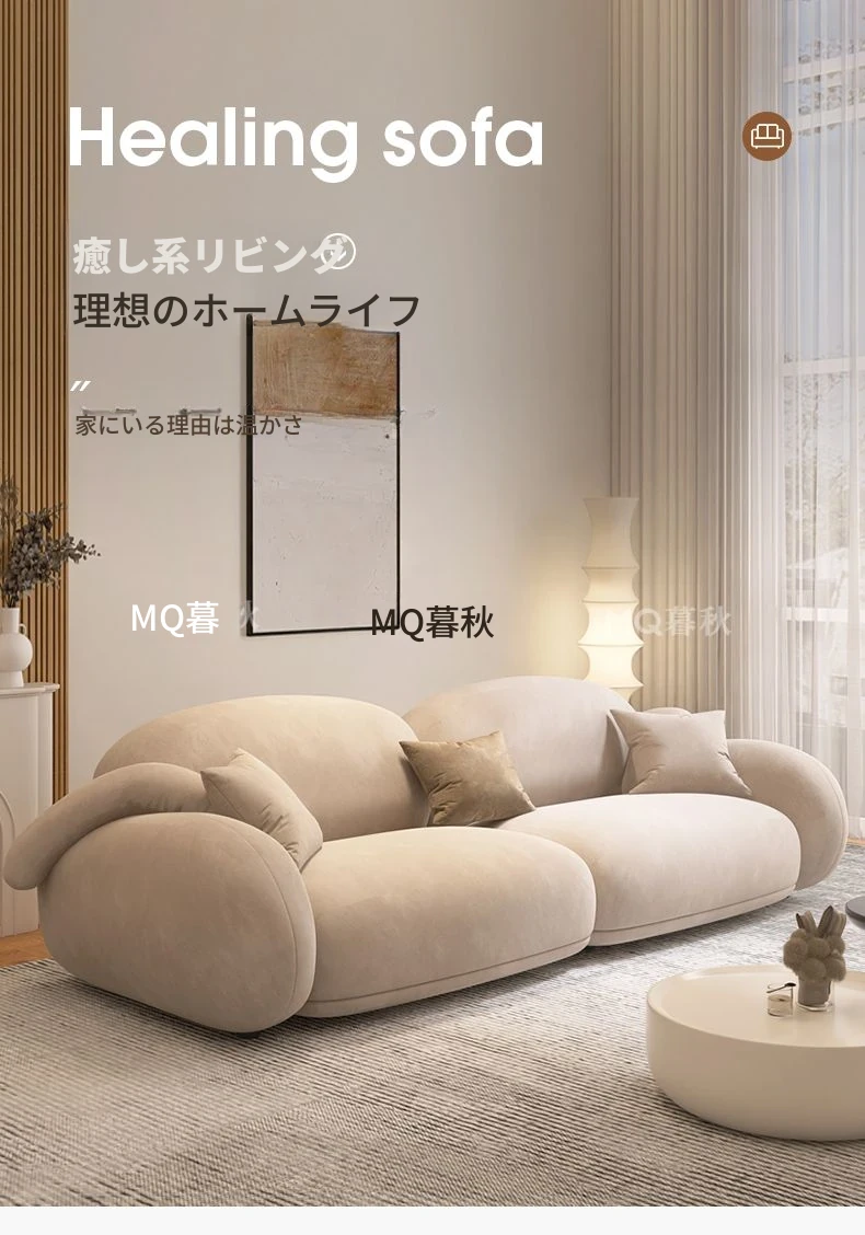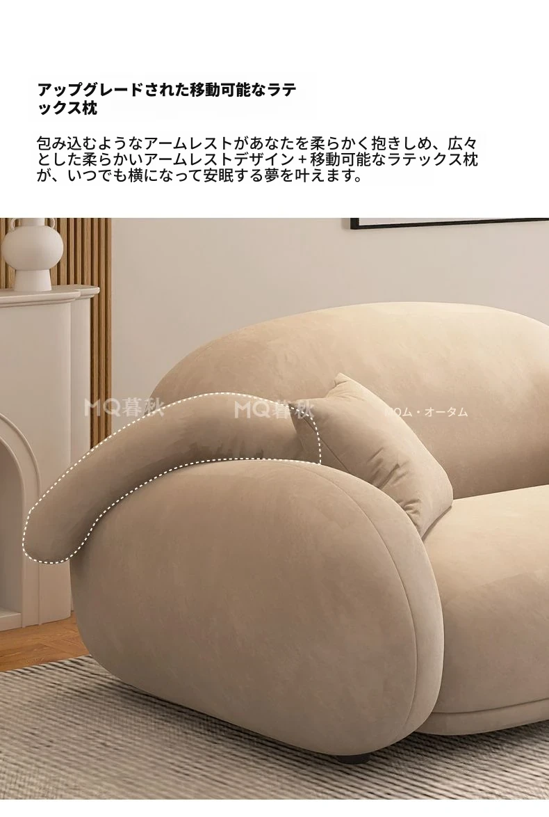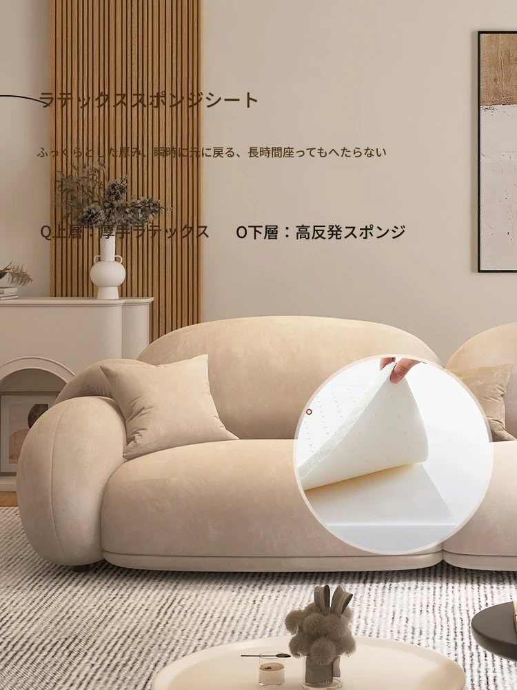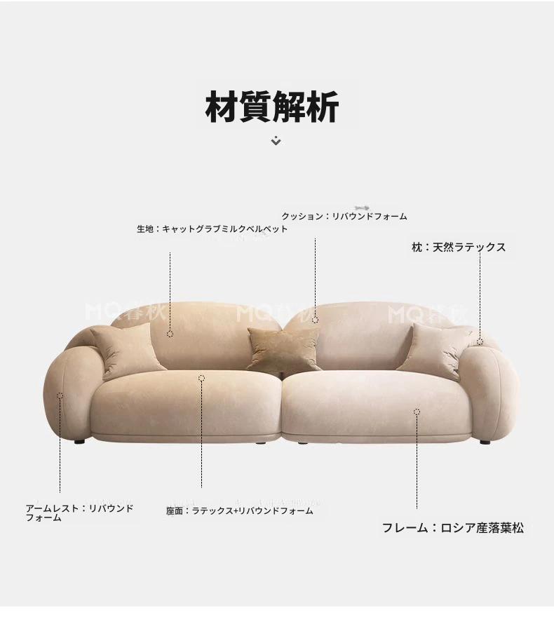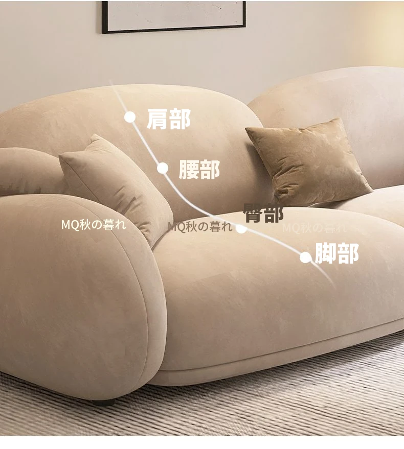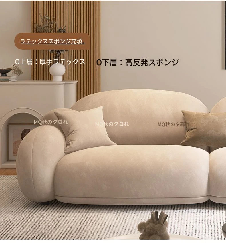 クリーミーな布製ソファー、猫の爪研ぎも安心!リビングにぴったりな柔らかな感触のフワフワ雲のようなデザイン。シンプルでありながら贅沢な二人掛けソファで、くつろぎの空間を演出します。