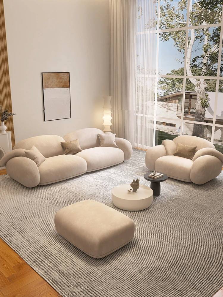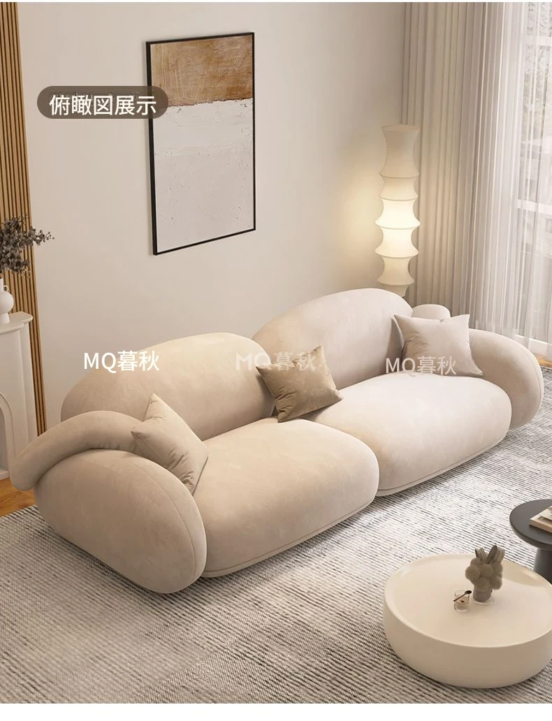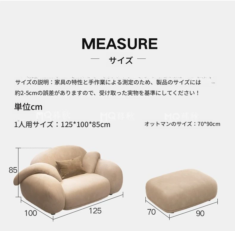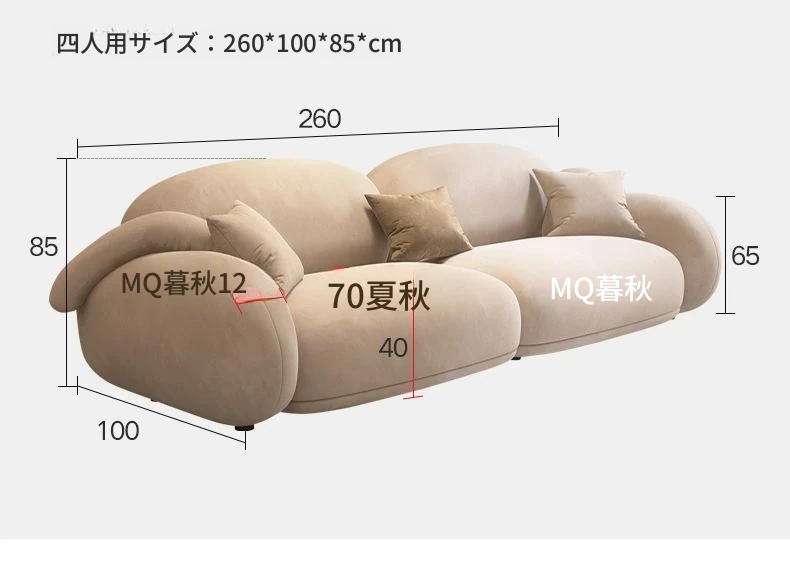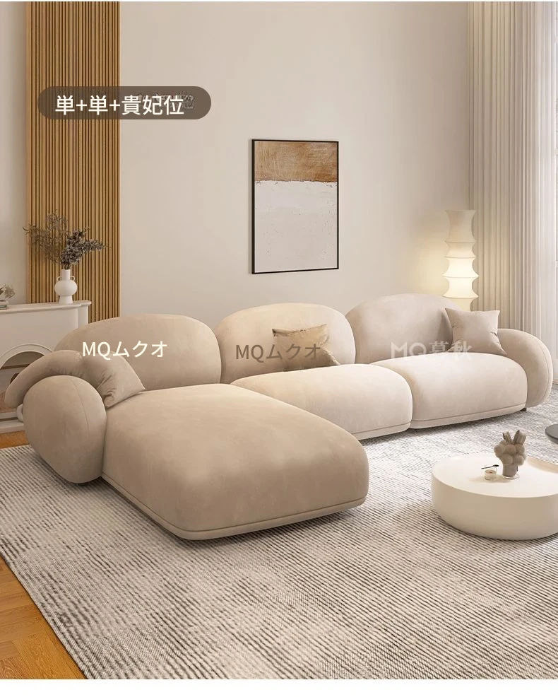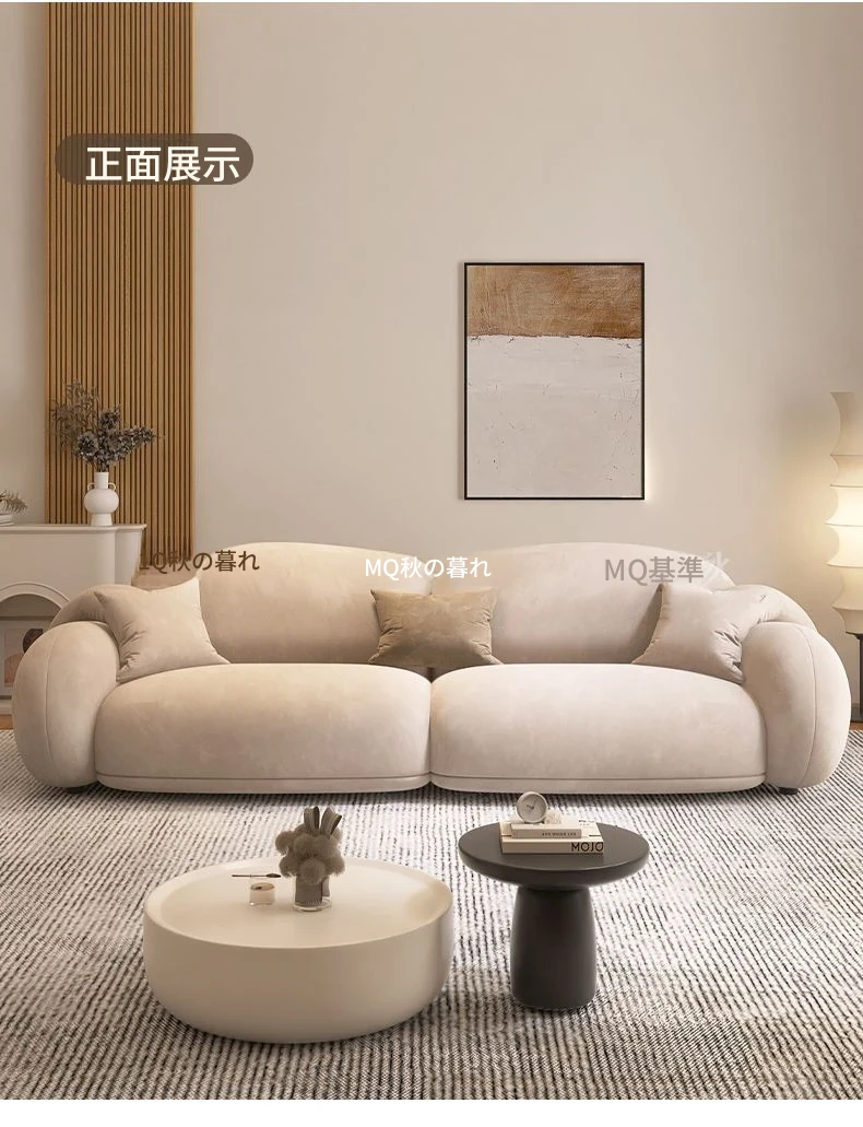 クリーミーな布製ソファー、猫の爪研ぎも安心!リビングにぴったりな柔らかな感触のフワフワ雲のようなデザイン。シンプルでありながら贅沢な二人掛けソファで、くつろぎの空間を演出します。