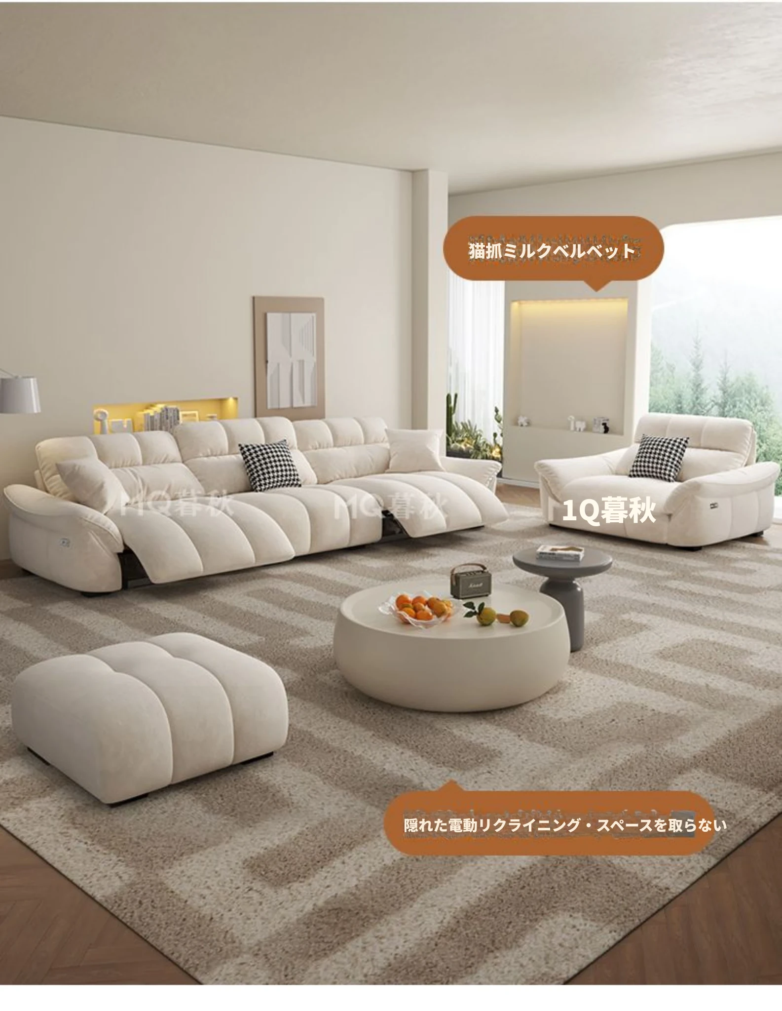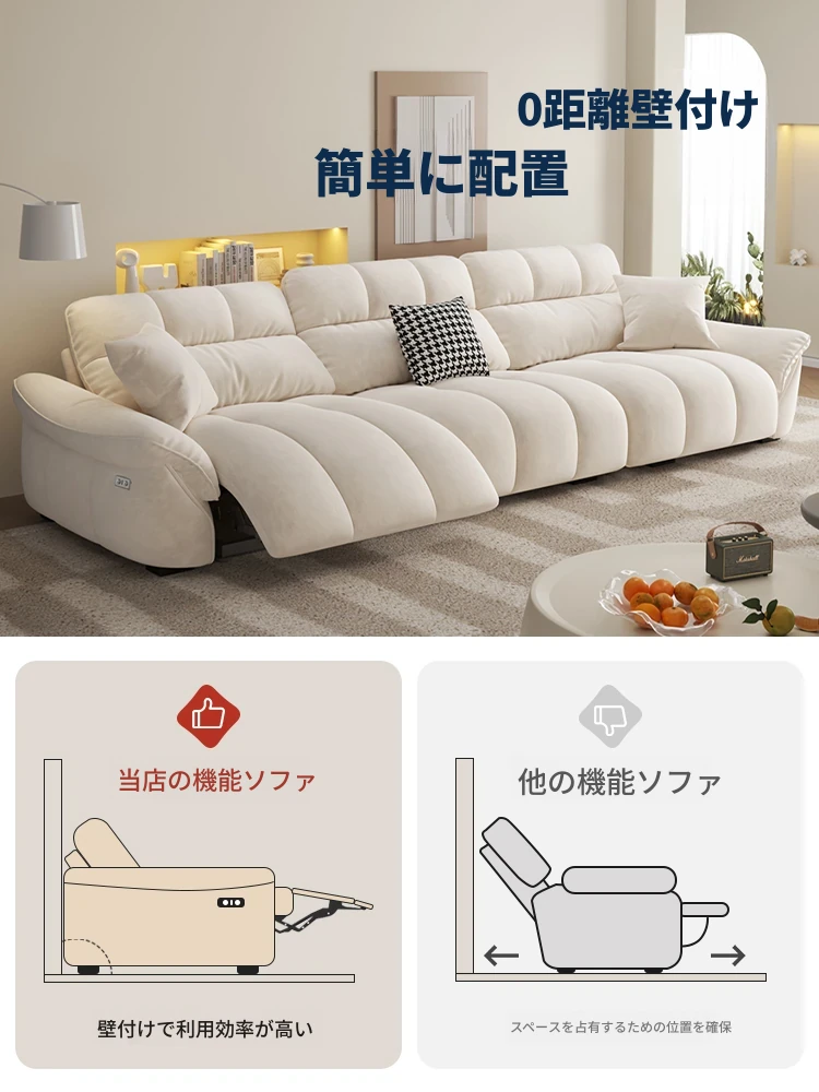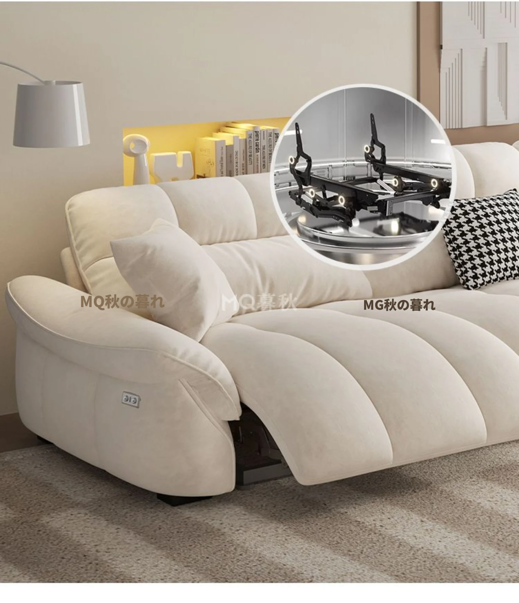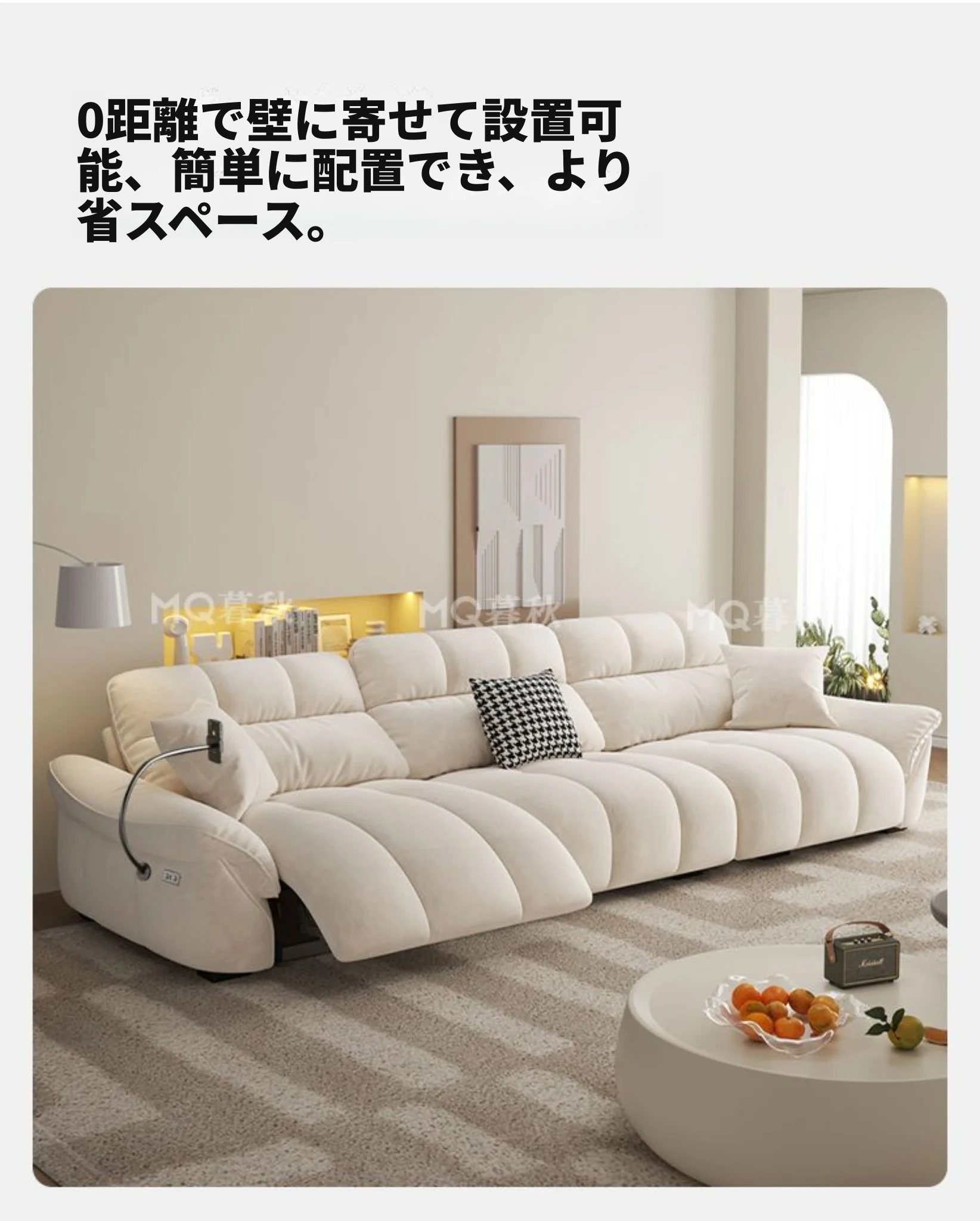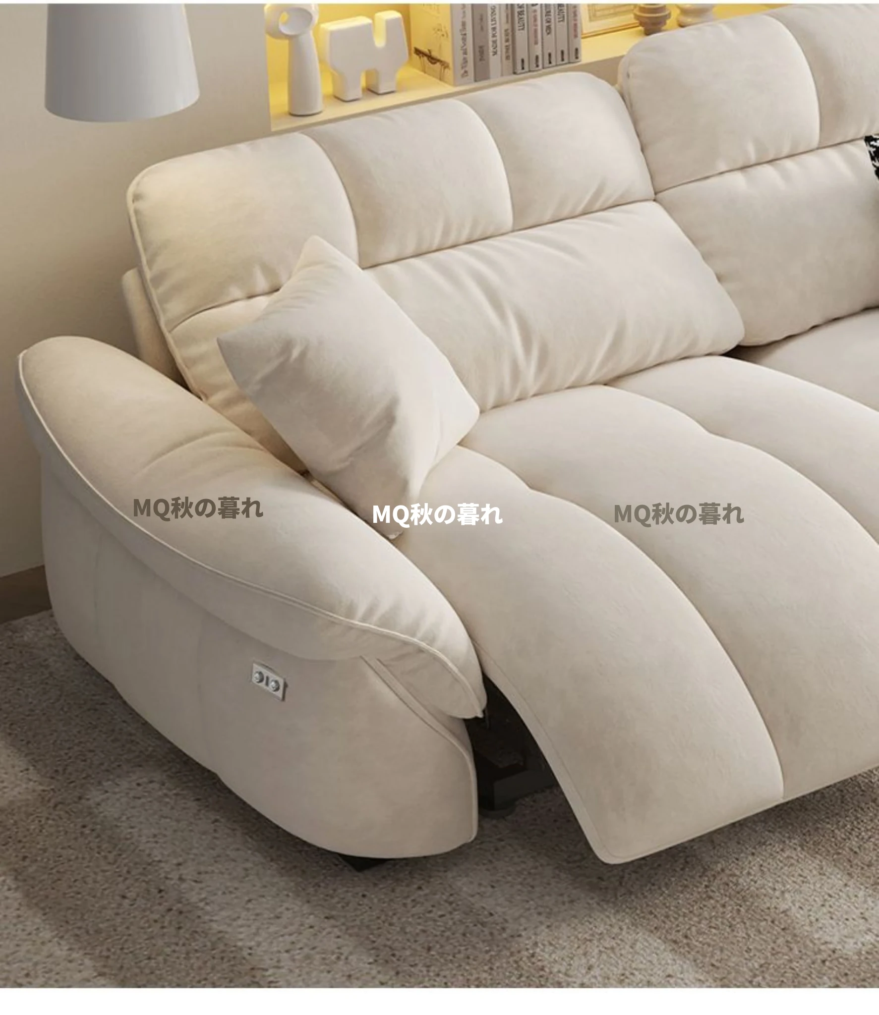 クリーム風多機能布製電動ソファー - 頭等級の宇宙船シアター、壁に寄り添わないデザイン、猫の爪を引っかけても安心!快適な座り心地とスタイリッシュな外観で、あなたのリビングを特別な空間に変えます。