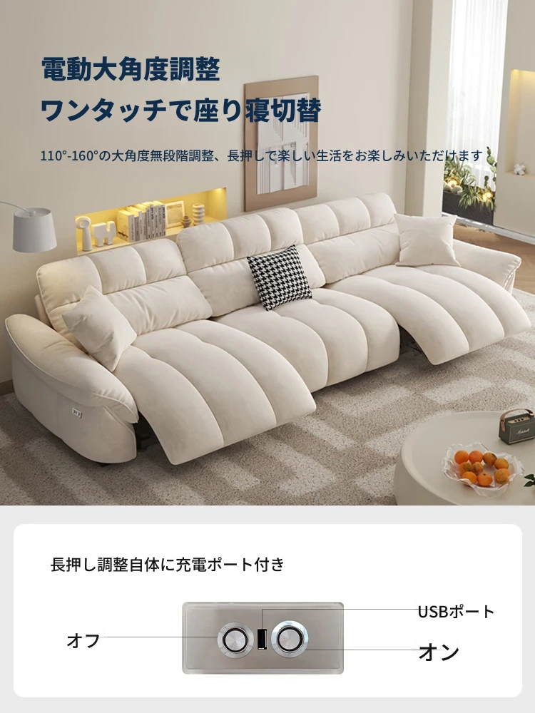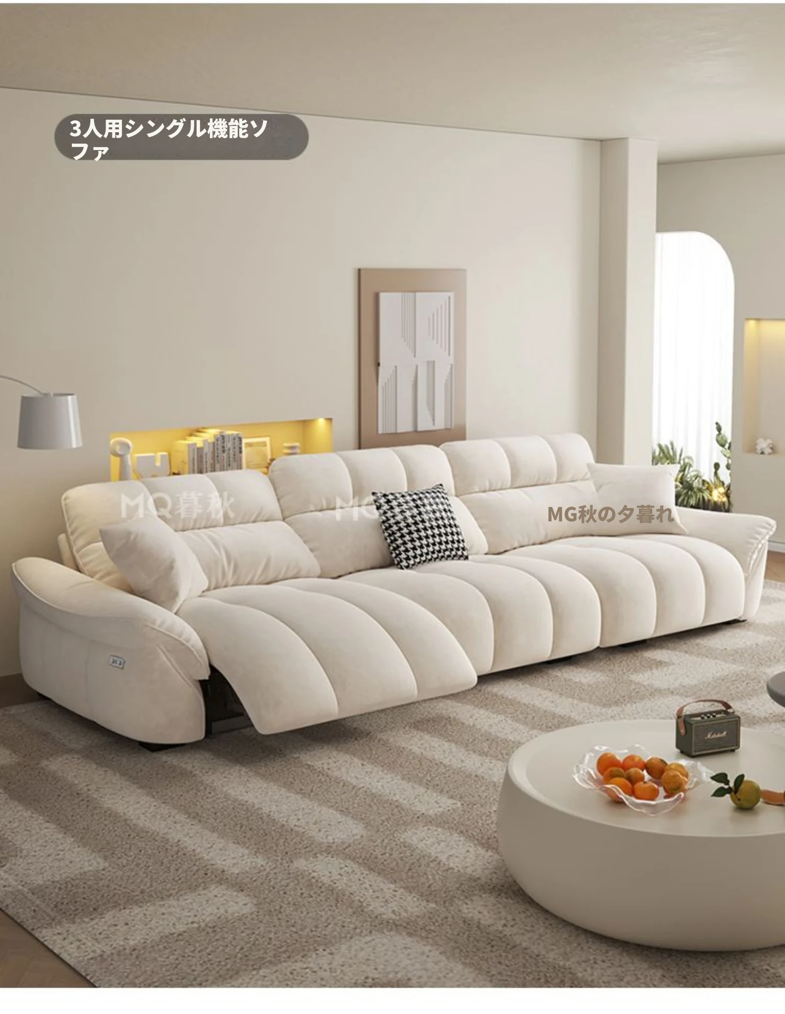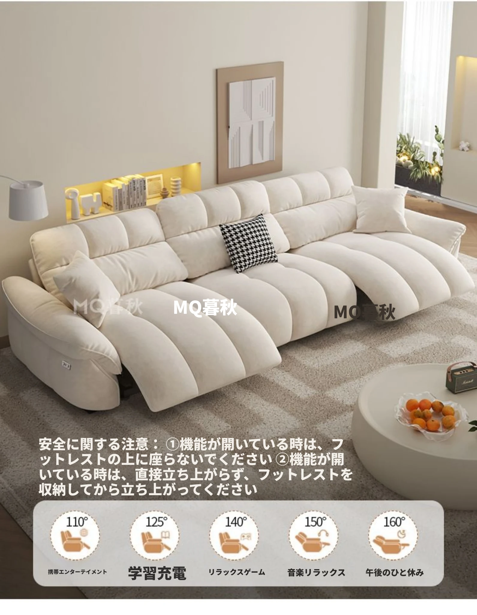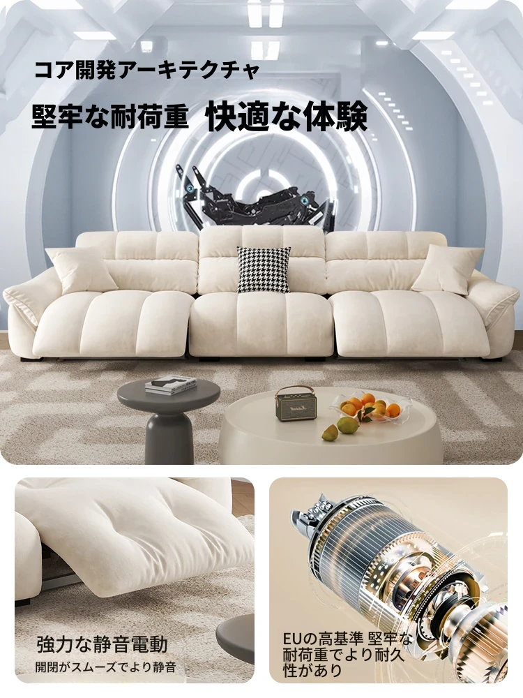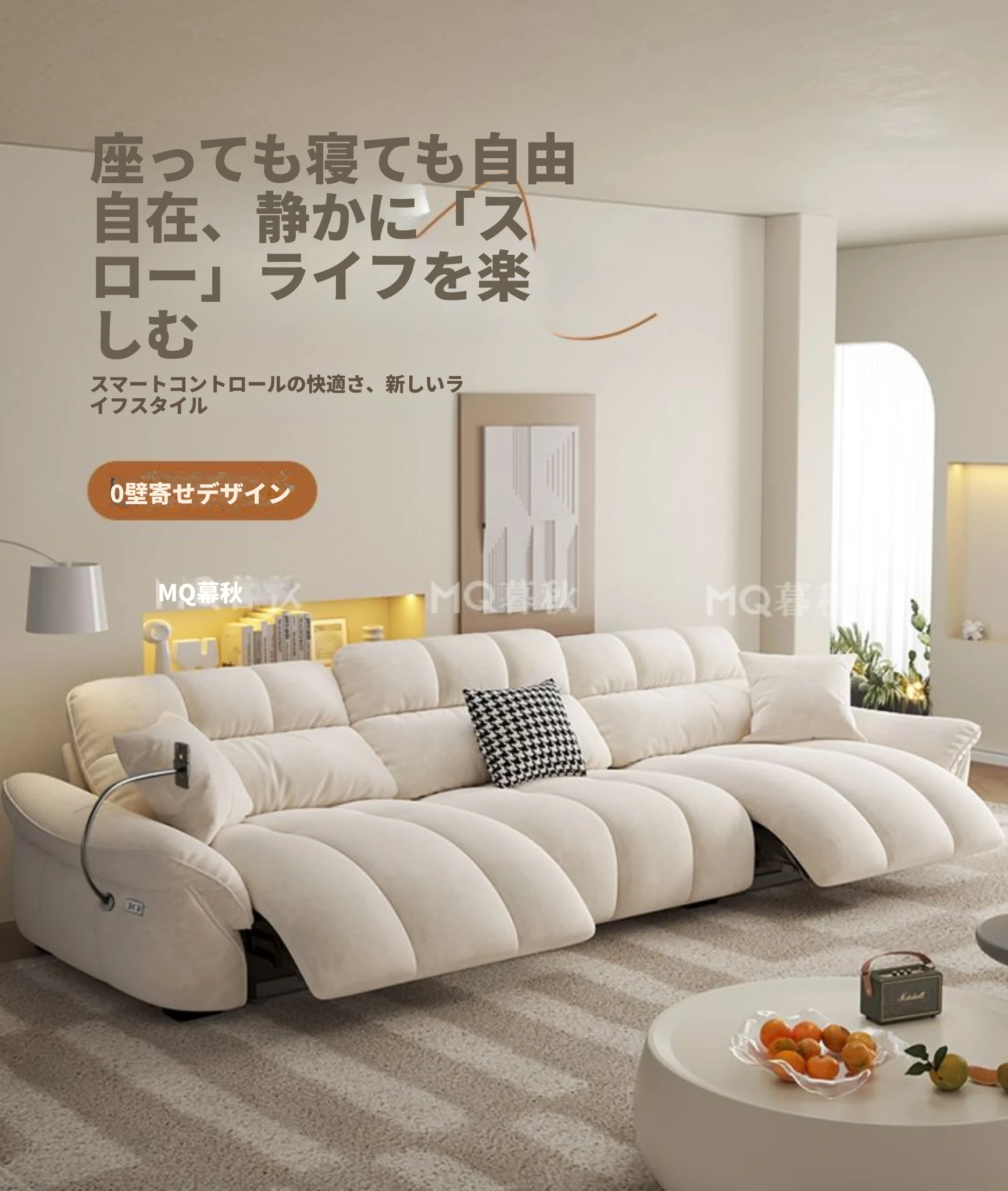 クリーム風多機能布製電動ソファー - 頭等級の宇宙船シアター、壁に寄り添わないデザイン、猫の爪を引っかけても安心!快適な座り心地とスタイリッシュな外観で、あなたのリビングを特別な空間に変えます。