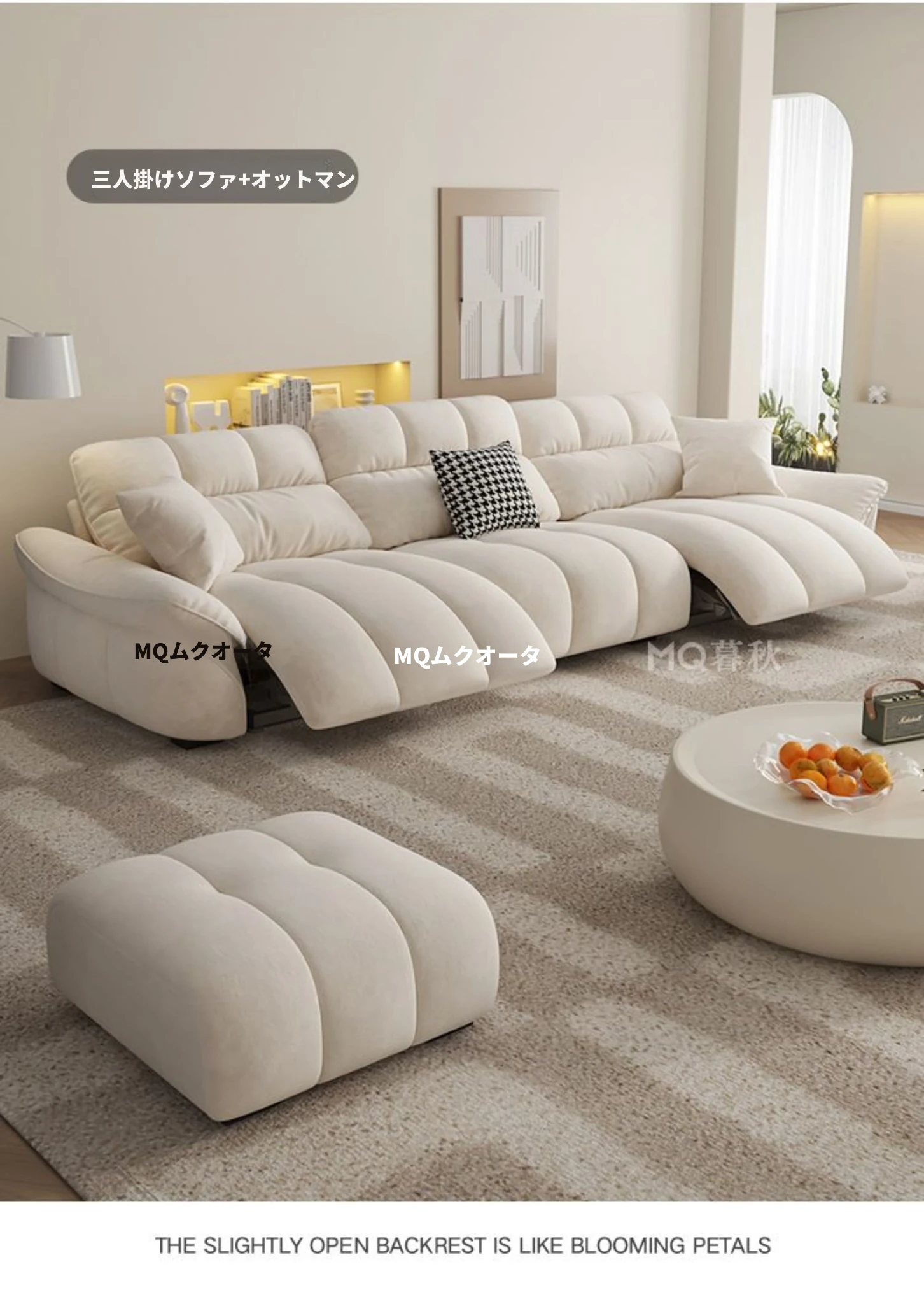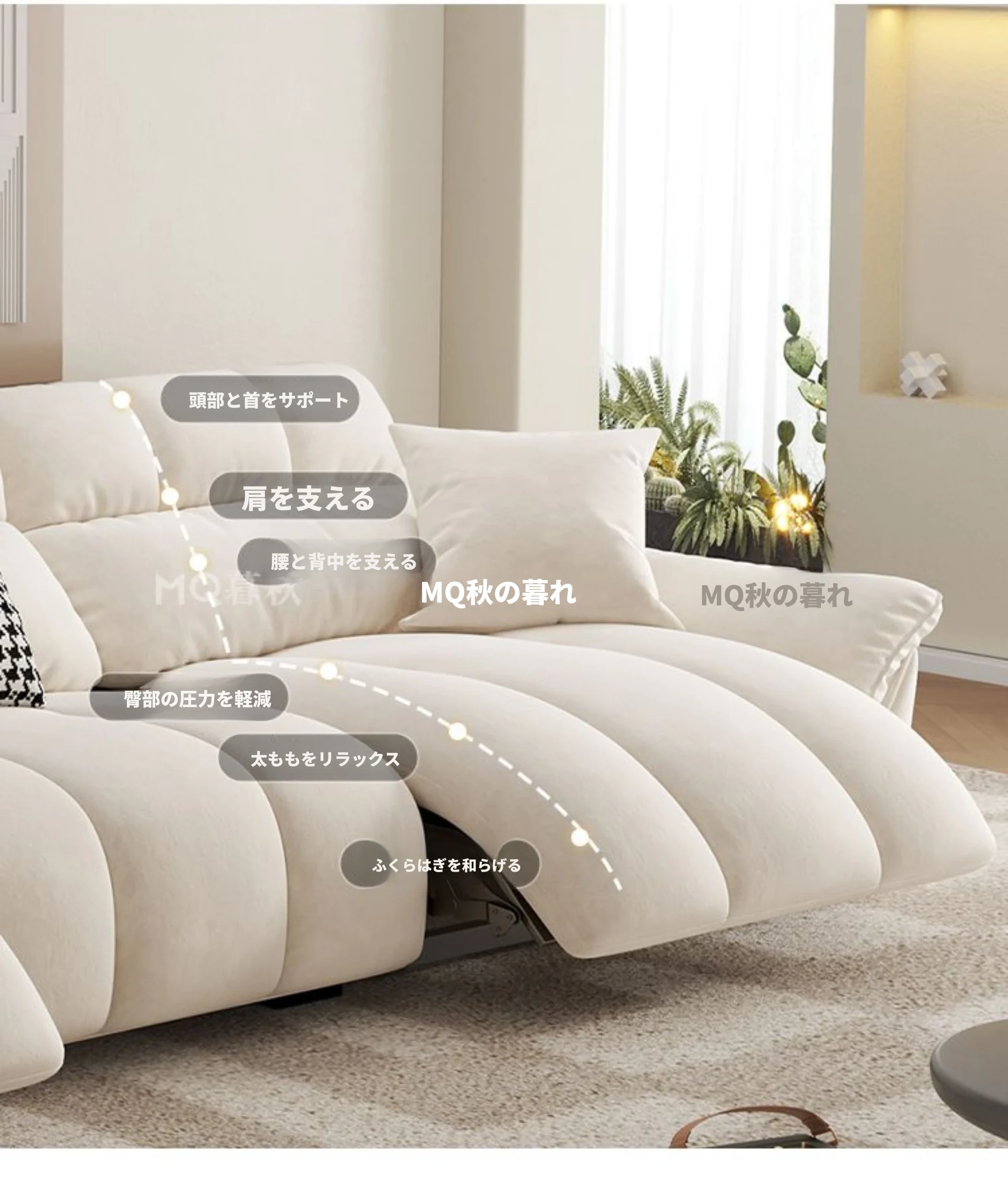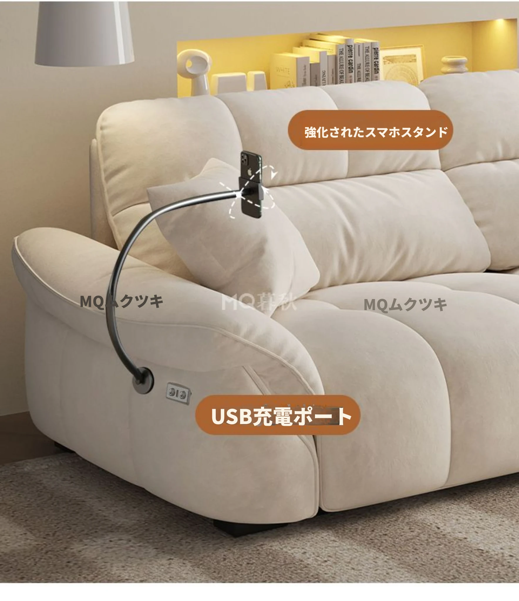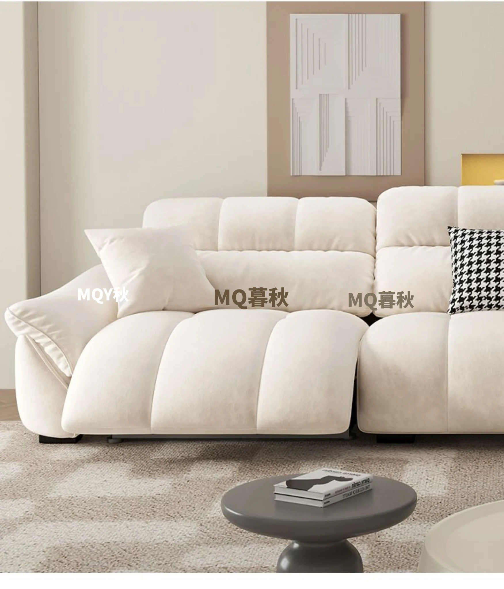 クリーム風多機能布製電動ソファー - 頭等級の宇宙船シアター、壁に寄り添わないデザイン、猫の爪を引っかけても安心!快適な座り心地とスタイリッシュな外観で、あなたのリビングを特別な空間に変えます。