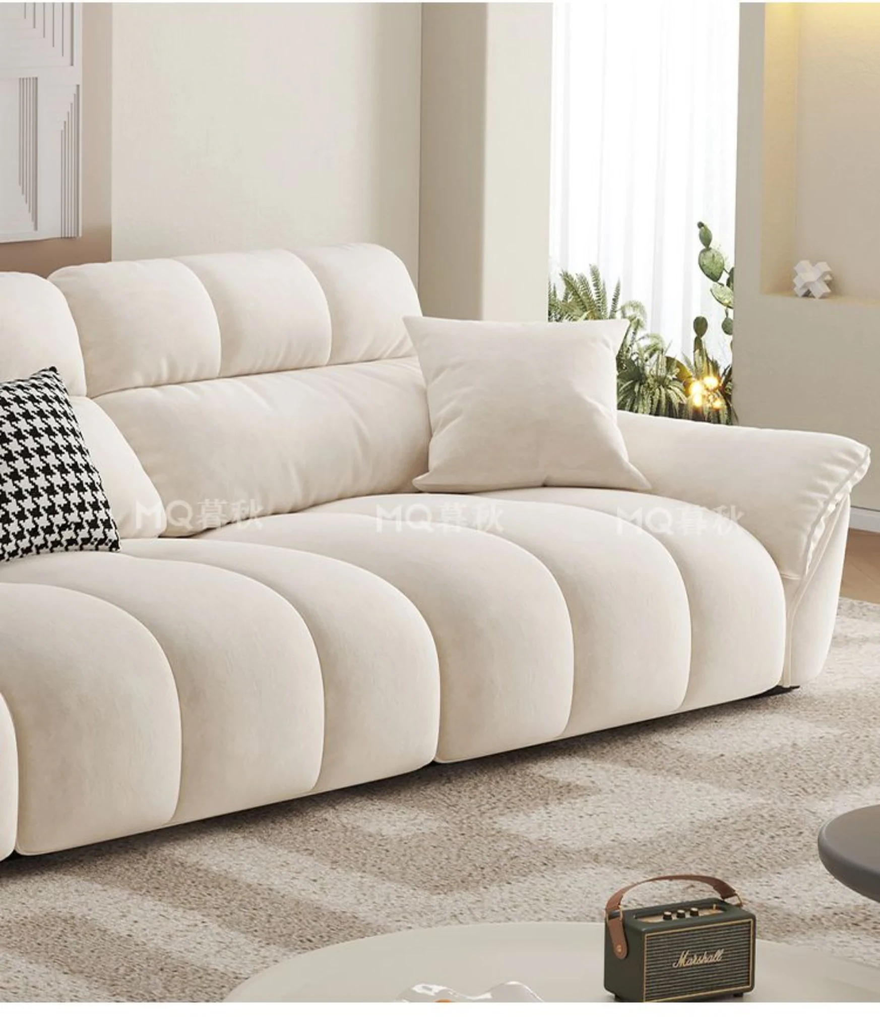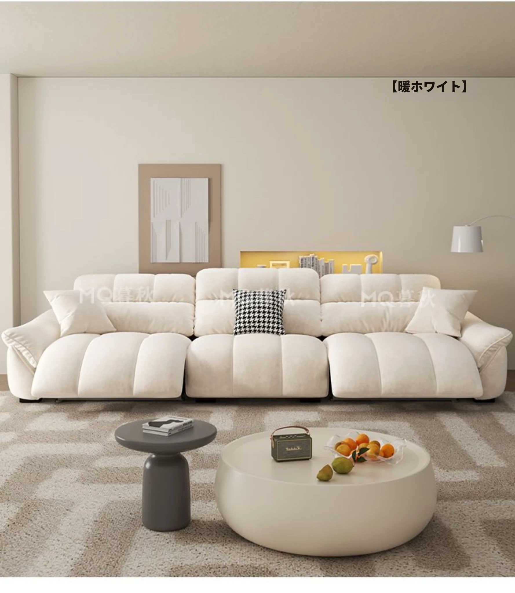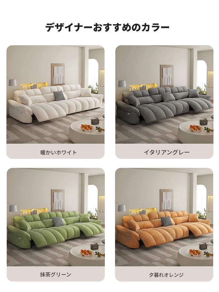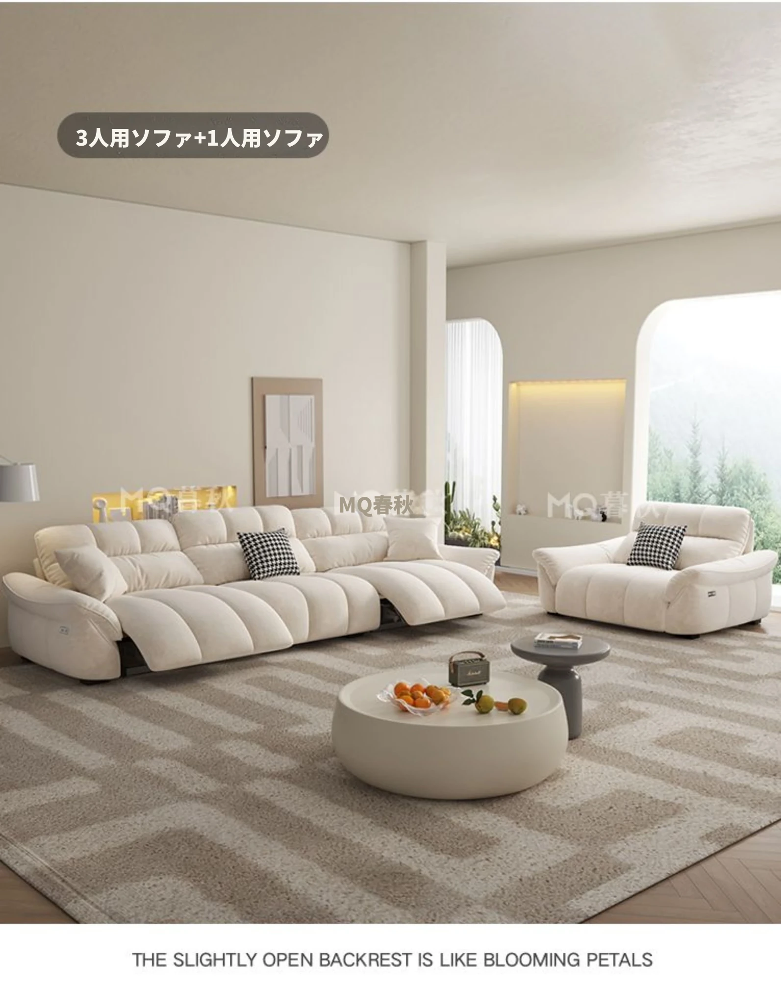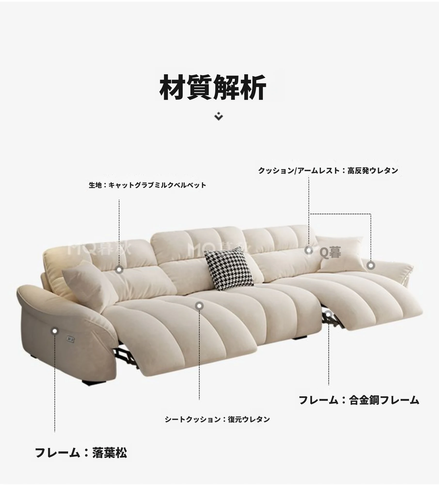 クリーム風多機能布製電動ソファー - 頭等級の宇宙船シアター、壁に寄り添わないデザイン、猫の爪を引っかけても安心!快適な座り心地とスタイリッシュな外観で、あなたのリビングを特別な空間に変えます。