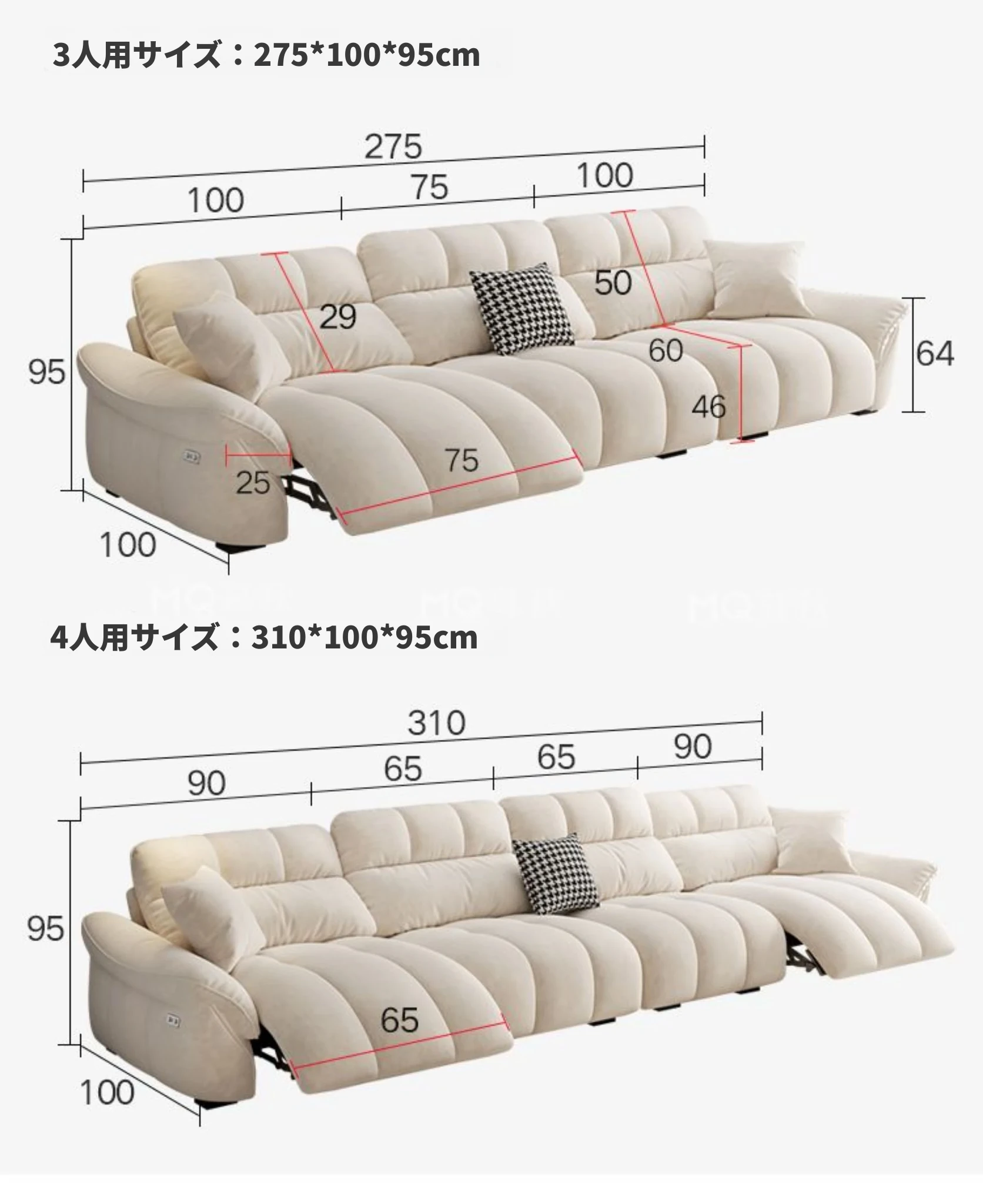 2.75m三人用(シングル電動)+ダブルアームレストのシングルチェア(電動付き)
