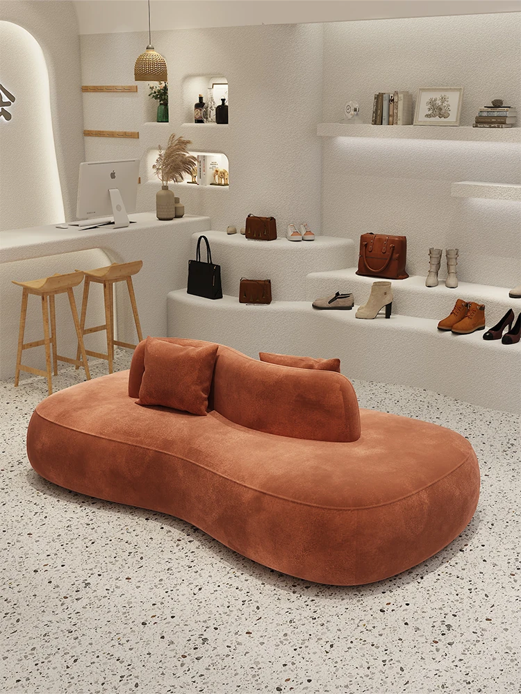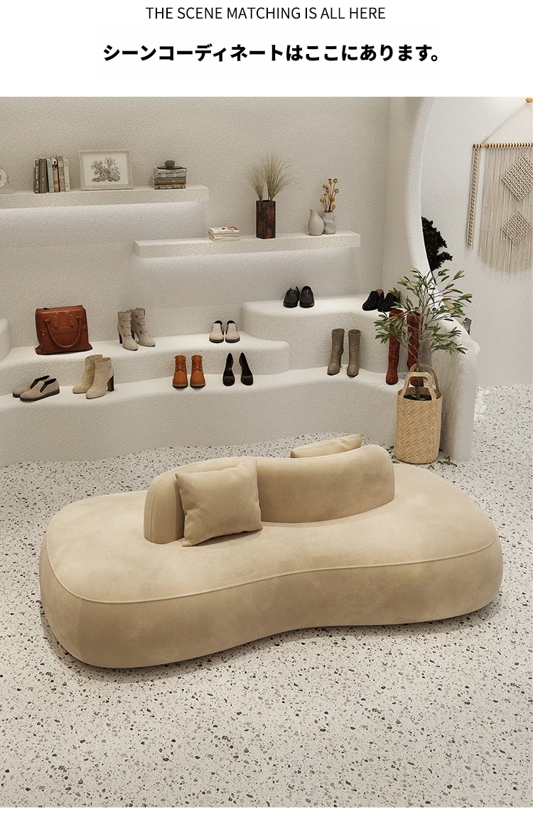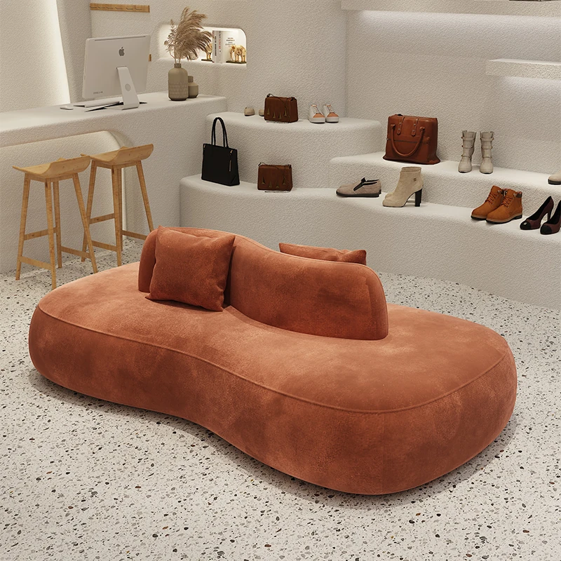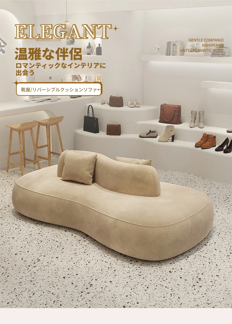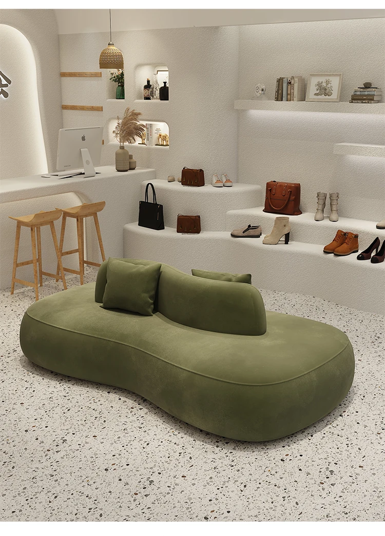 デザイナー服装店や靴店にぴったり!両面使用可能な洗浄不要のクリエイティブなアーチ型ソファ。小型ホテルや狭いスペースでも活躍する、おしゃれで機能的な休憩エリアを演出します。