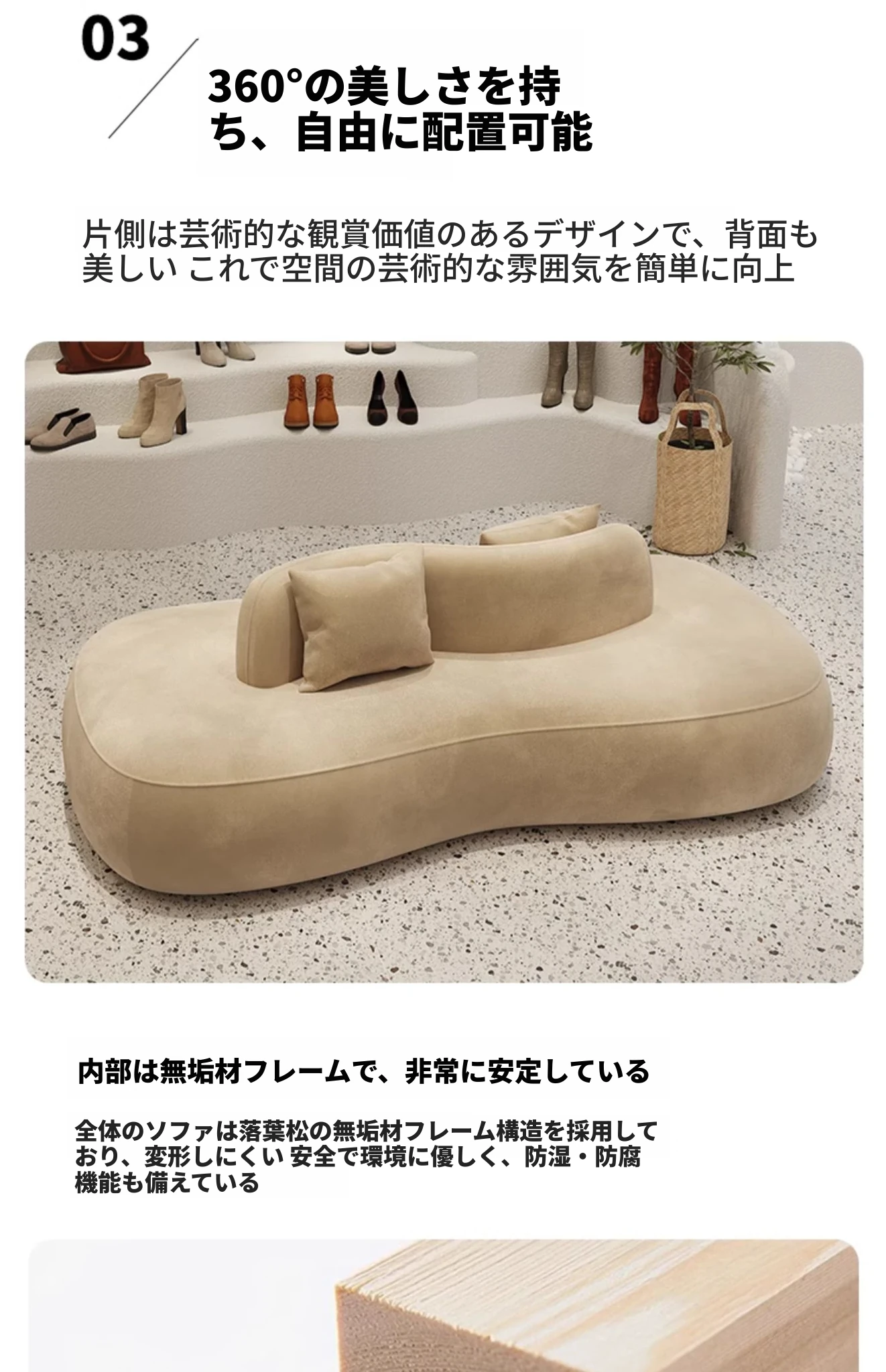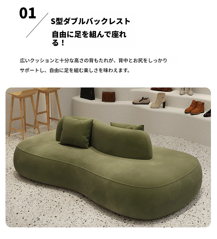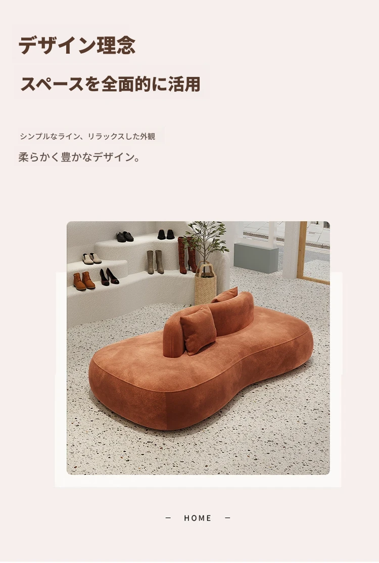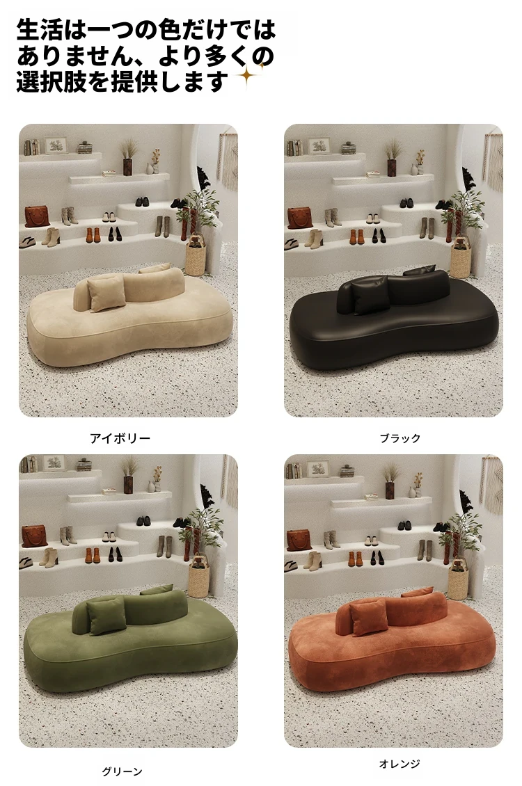 デザイナー服装店や靴店にぴったり!両面使用可能な洗浄不要のクリエイティブなアーチ型ソファ。小型ホテルや狭いスペースでも活躍する、おしゃれで機能的な休憩エリアを演出します。