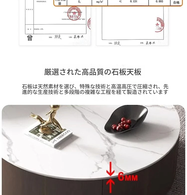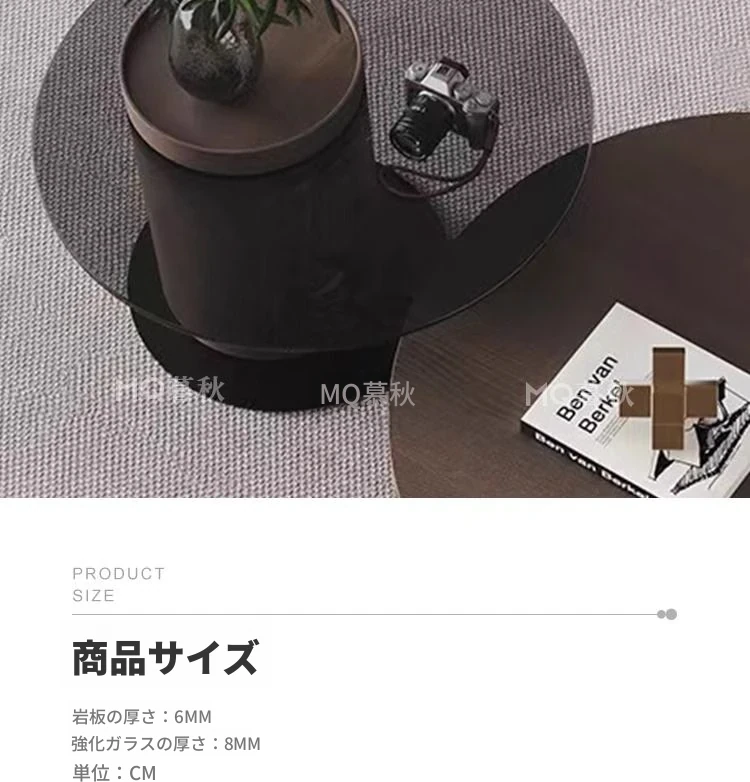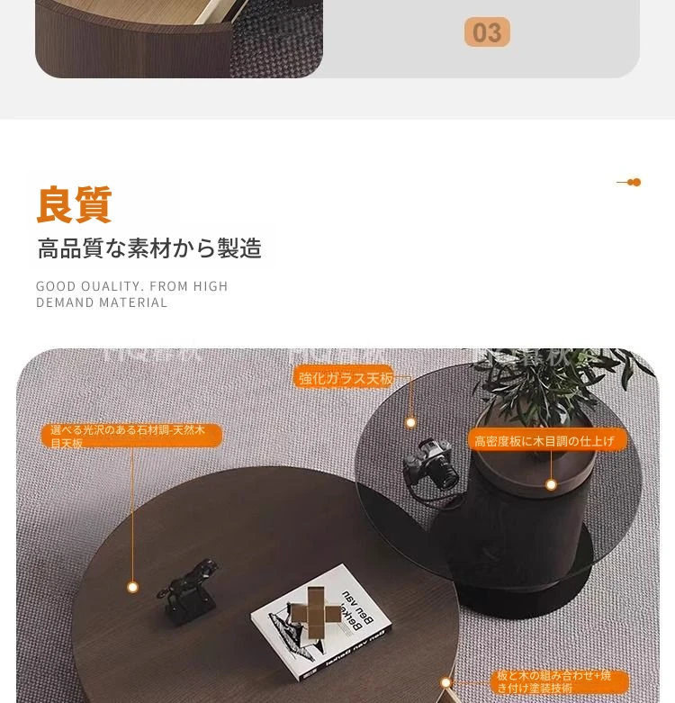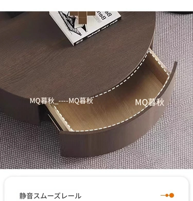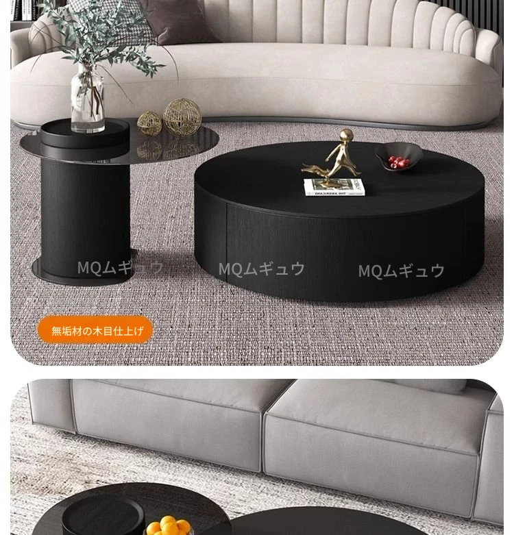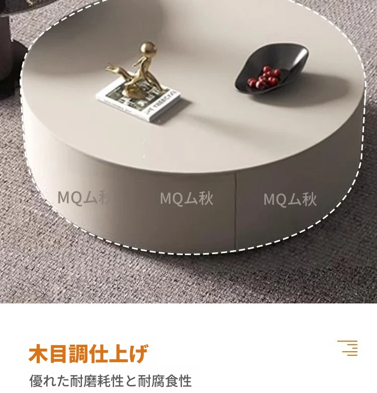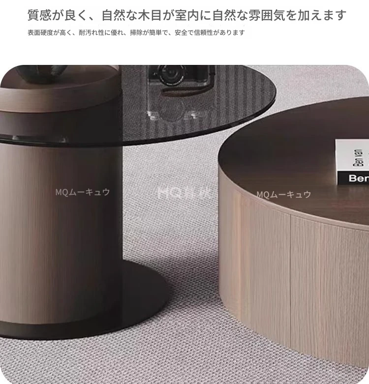 イタリアンスタイルのラウンドウッドコーヒーテーブルセット - 小さなリビングにぴったりのシンプルでモダンな軽奢デザイン、トレンドの岩板使用でおしゃれな空間を演出!