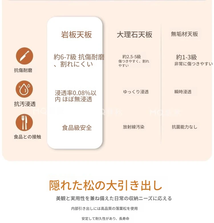 カーキ色-コンビネーションコーヒーテーブル(ストーン面)