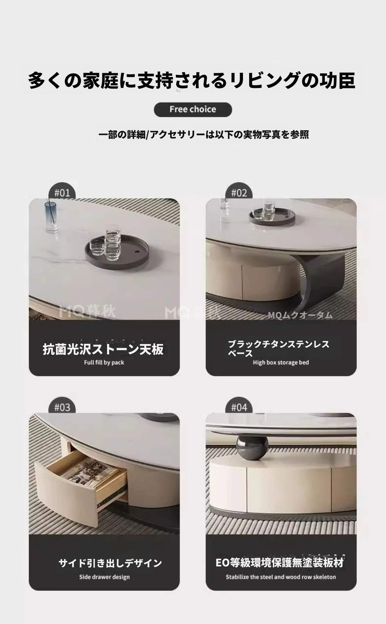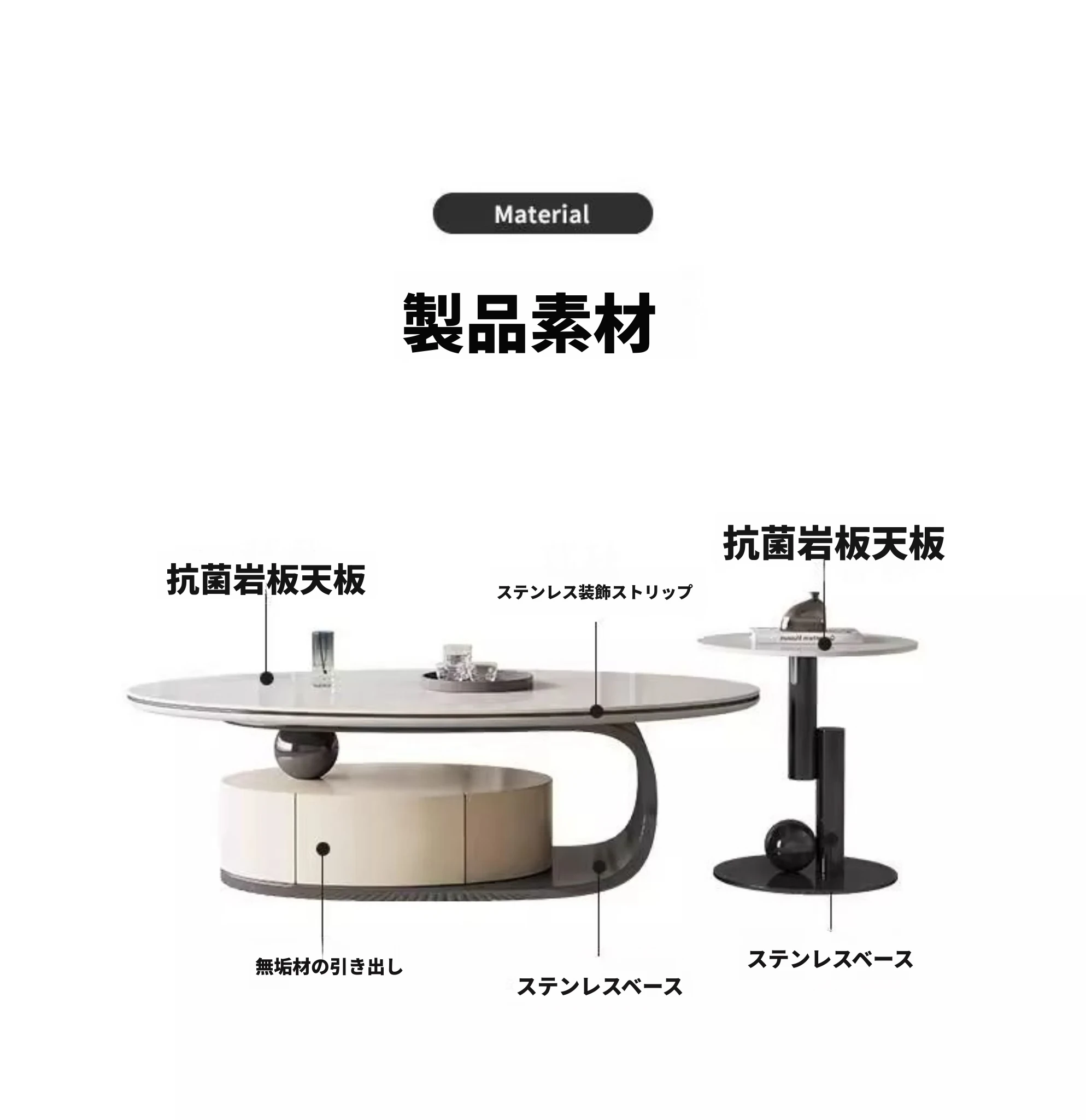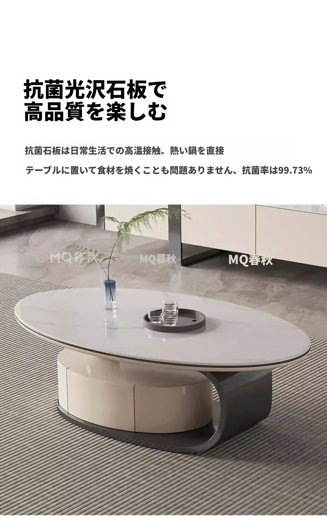 イタリアンスタイルの軽やかなラグジュアリー、モダンミニマリストのオーバルテーブル。収納付きのクリエイティブなテレビ台とサイズ組み合わせが可能で、リビングルームに最適な家用家具です。