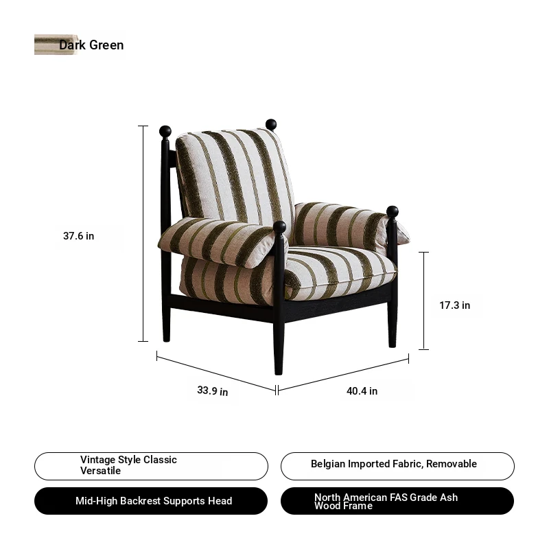 Dark Green-Ash Solid Wood + Belgian Import Cotton and Linen-Removable and Washable