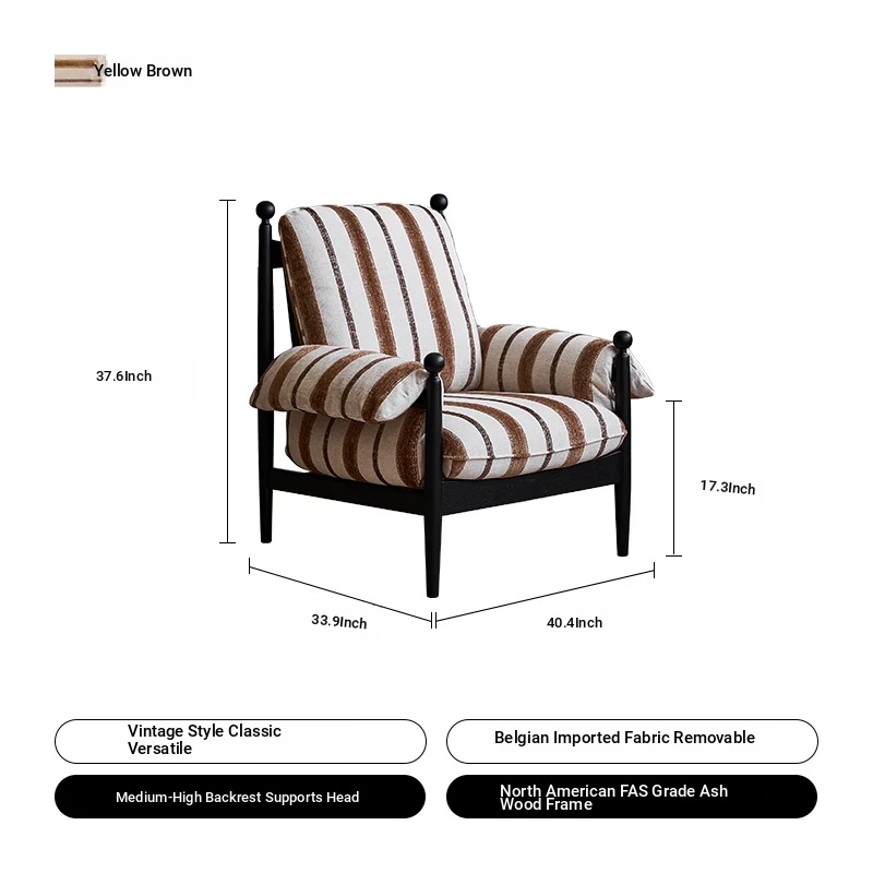 Yellow Brown-Ash Solid Wood + Belgian Import Cotton and Linen-Removable and Washable