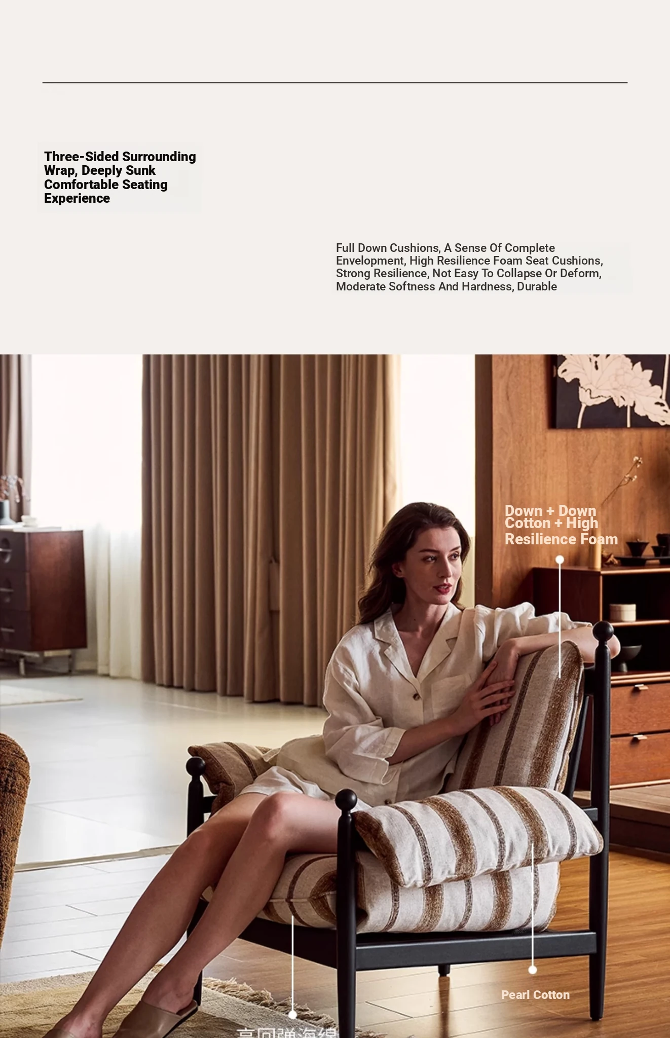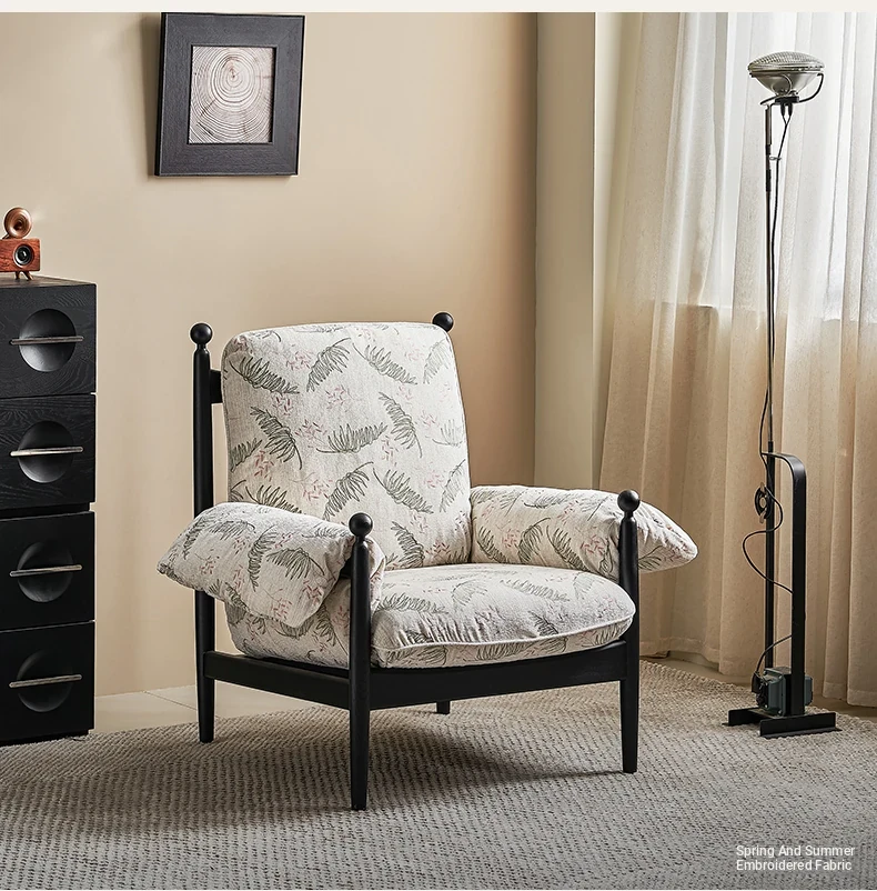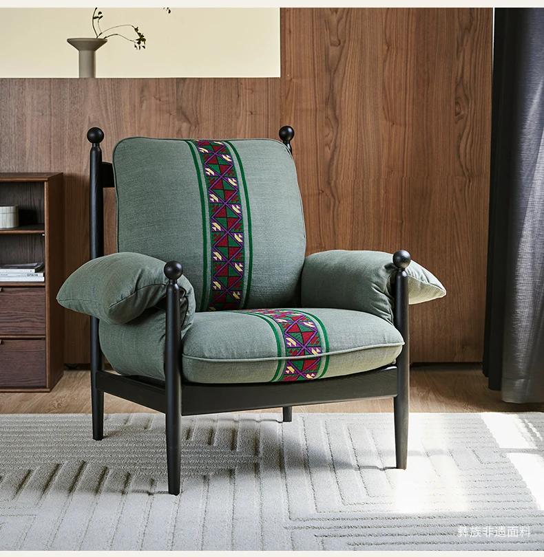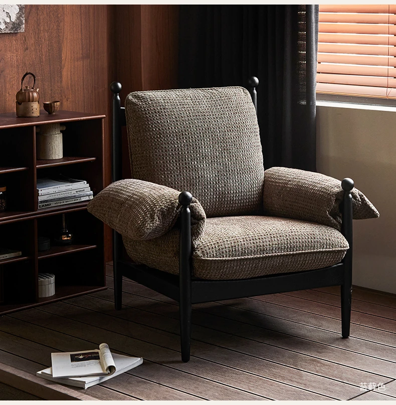 Gedu & KK Collaboration | Red Wu Vintage-Inspired Solid Wood High-Back Single Sofa Chair for Home Use - Creative and Cozy Lounge Seat