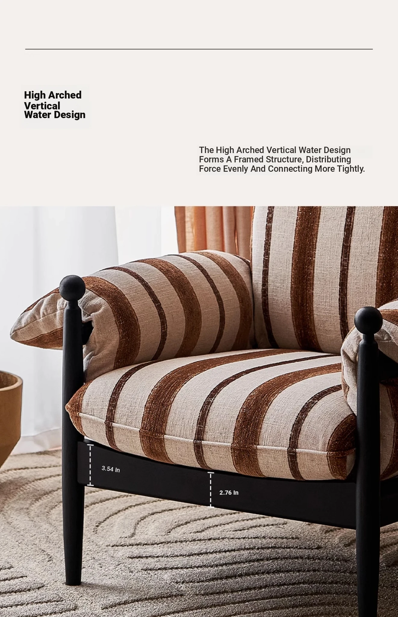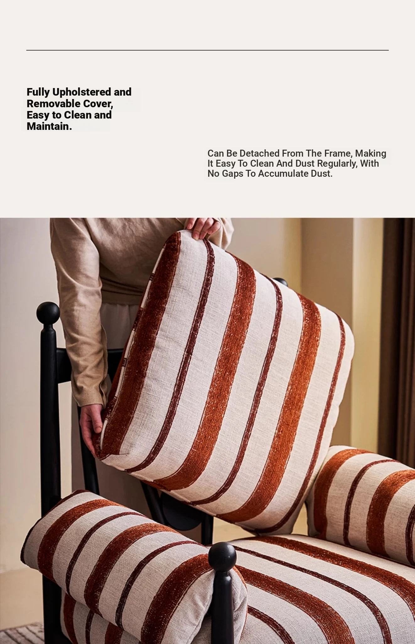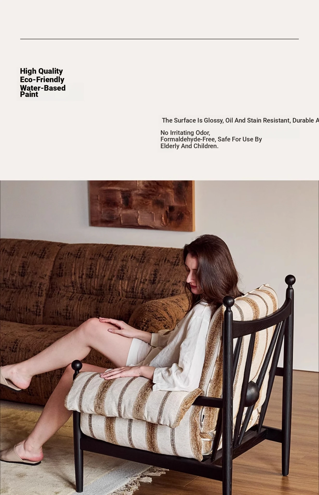 Chocolate-Ash Solid Wood + Wool Retro Stripes-Removable and Washable