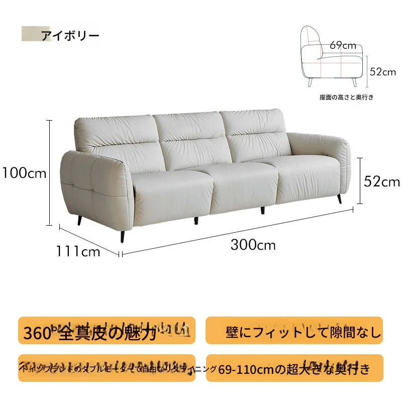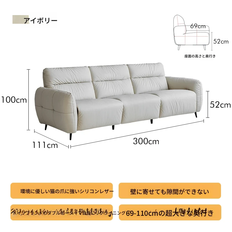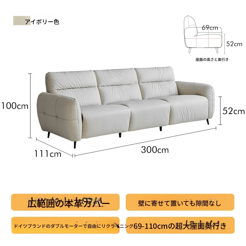 グラド | 初見多機能電動ソファベッド、布製小型リビングルーム用三人掛け直排本革ソファ。快適な座り心地と洗練されたデザインで、あなたのリビングをスタイリッシュに演出します!