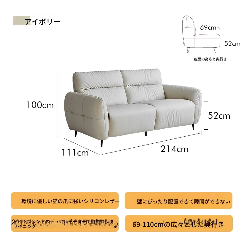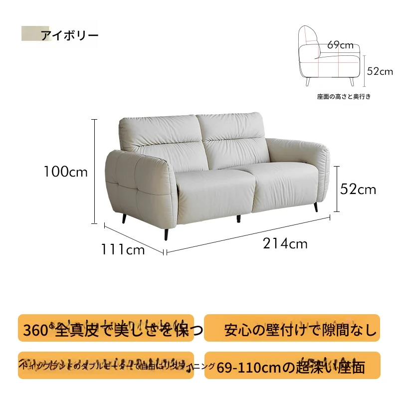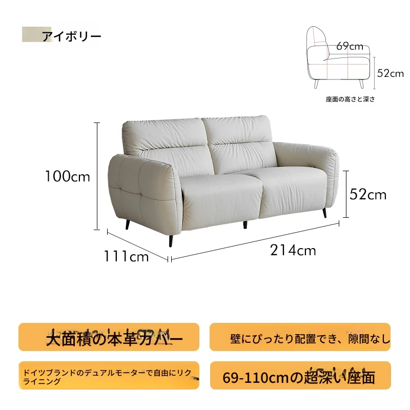 【電動タイプ】アイボリー-ビジュアルレザー-214cm