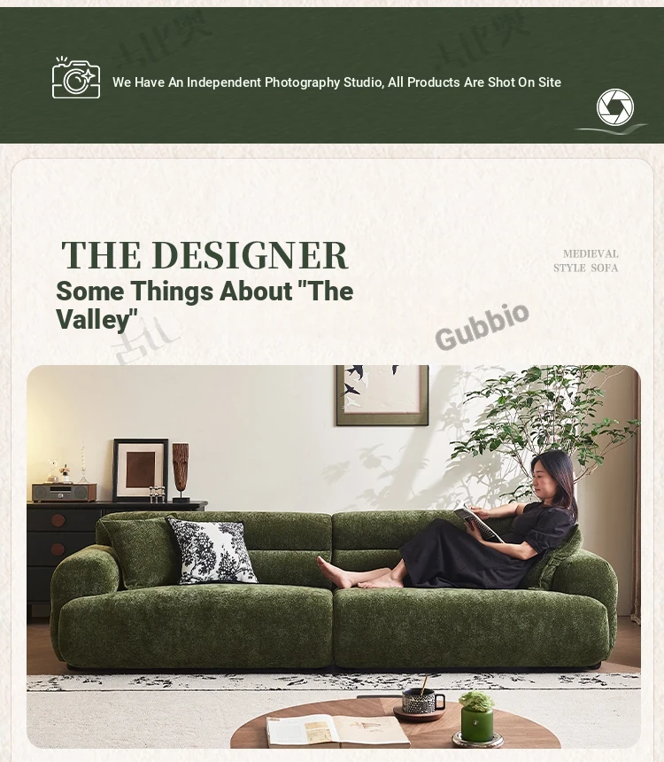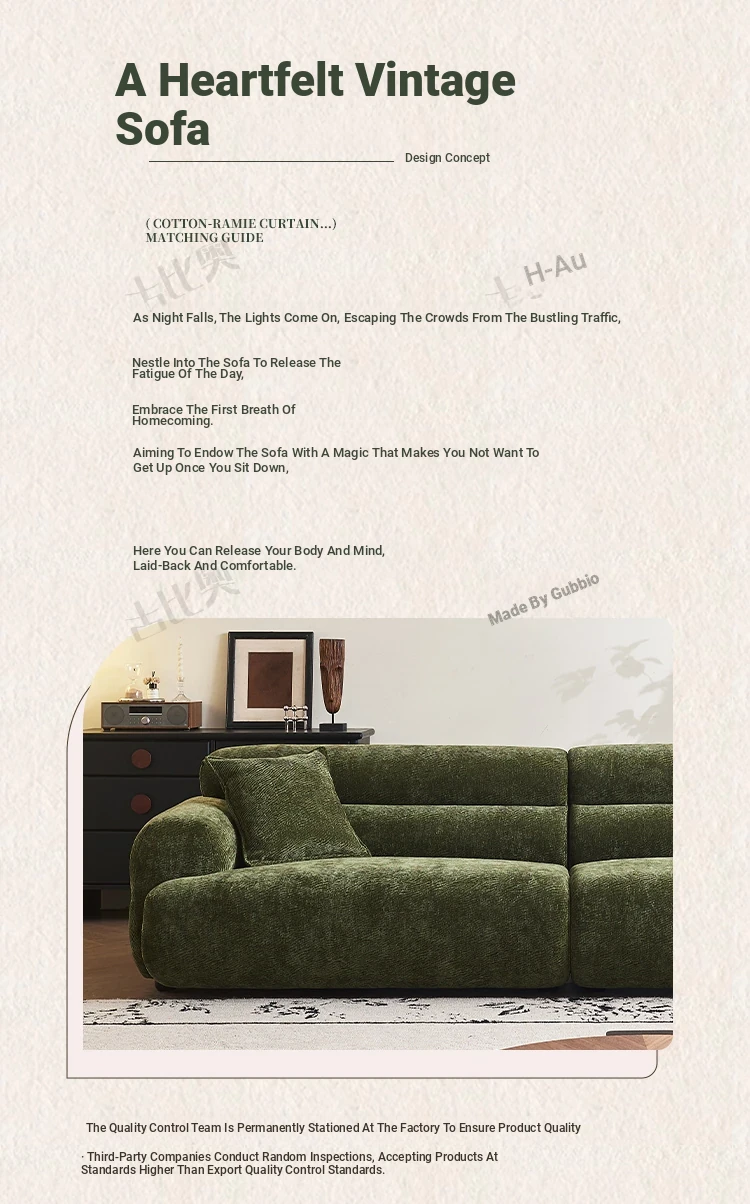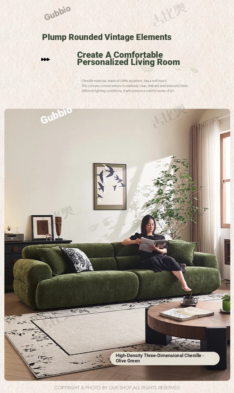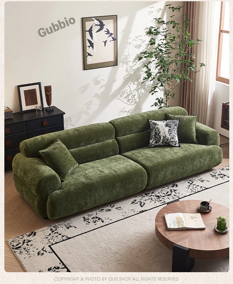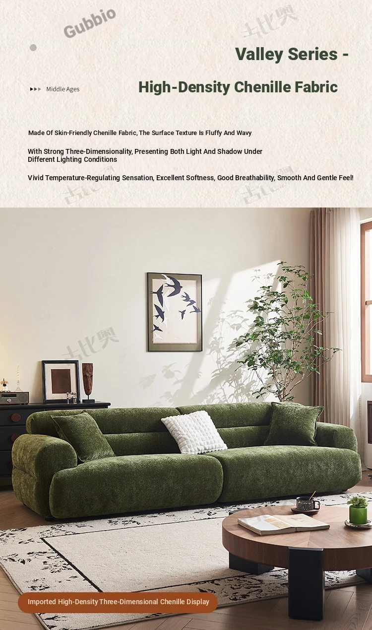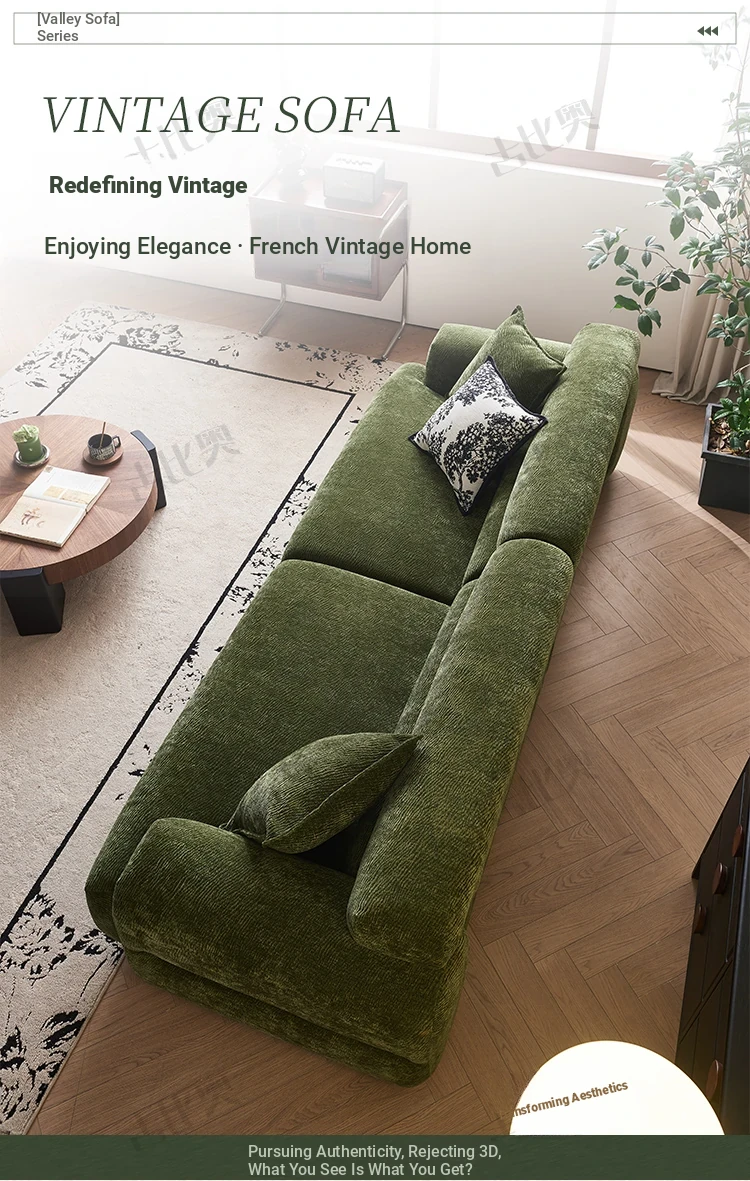 Gubbio Valley Removable Sofa for Small Spaces - French Vintage Style Chenille Fabric Straight Sofa for Cozy Living Rooms
