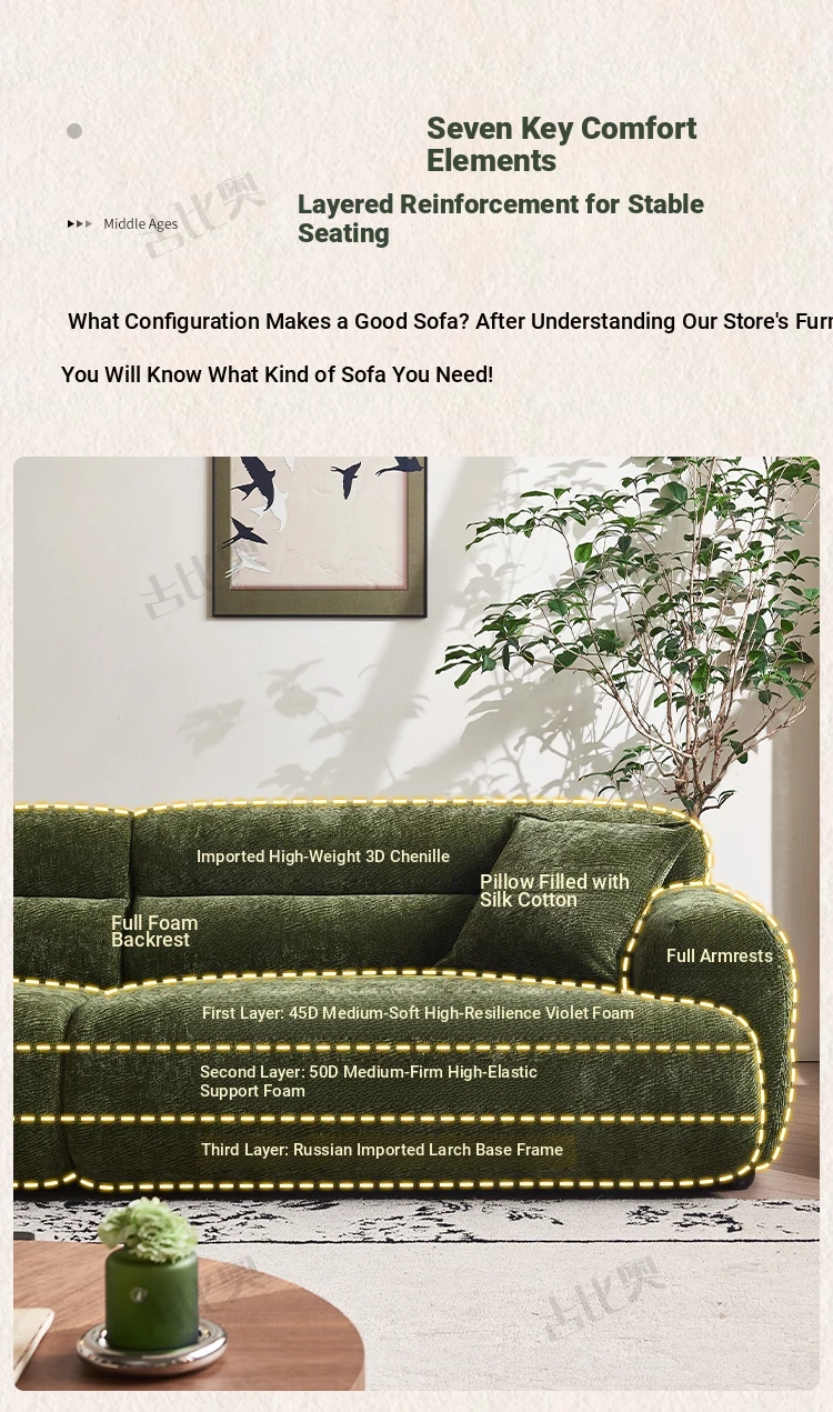 Upgrade 3.0 full disassembly and washing Import high gram weight three-dimensional chenille fabric [Waterproof anti-fouling cat claw resistance] [50D high density and high resilience water sponge/widened thickened full solid wood frame]]