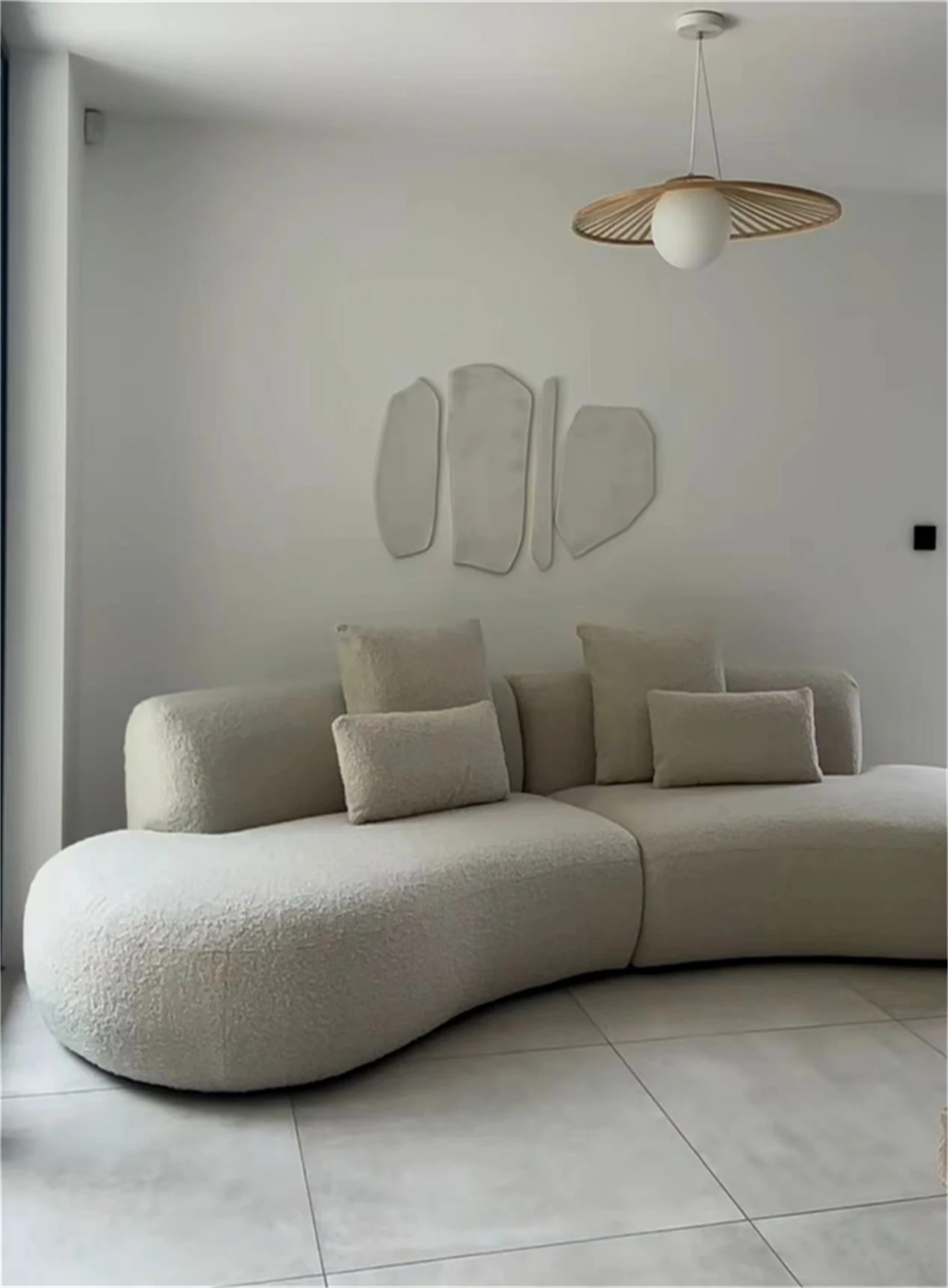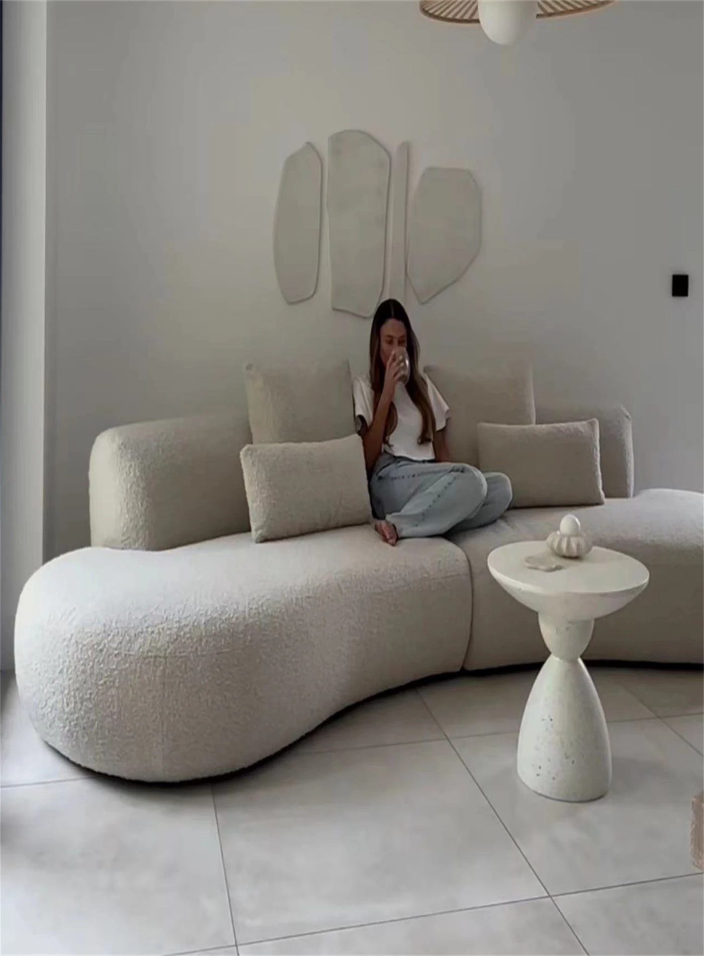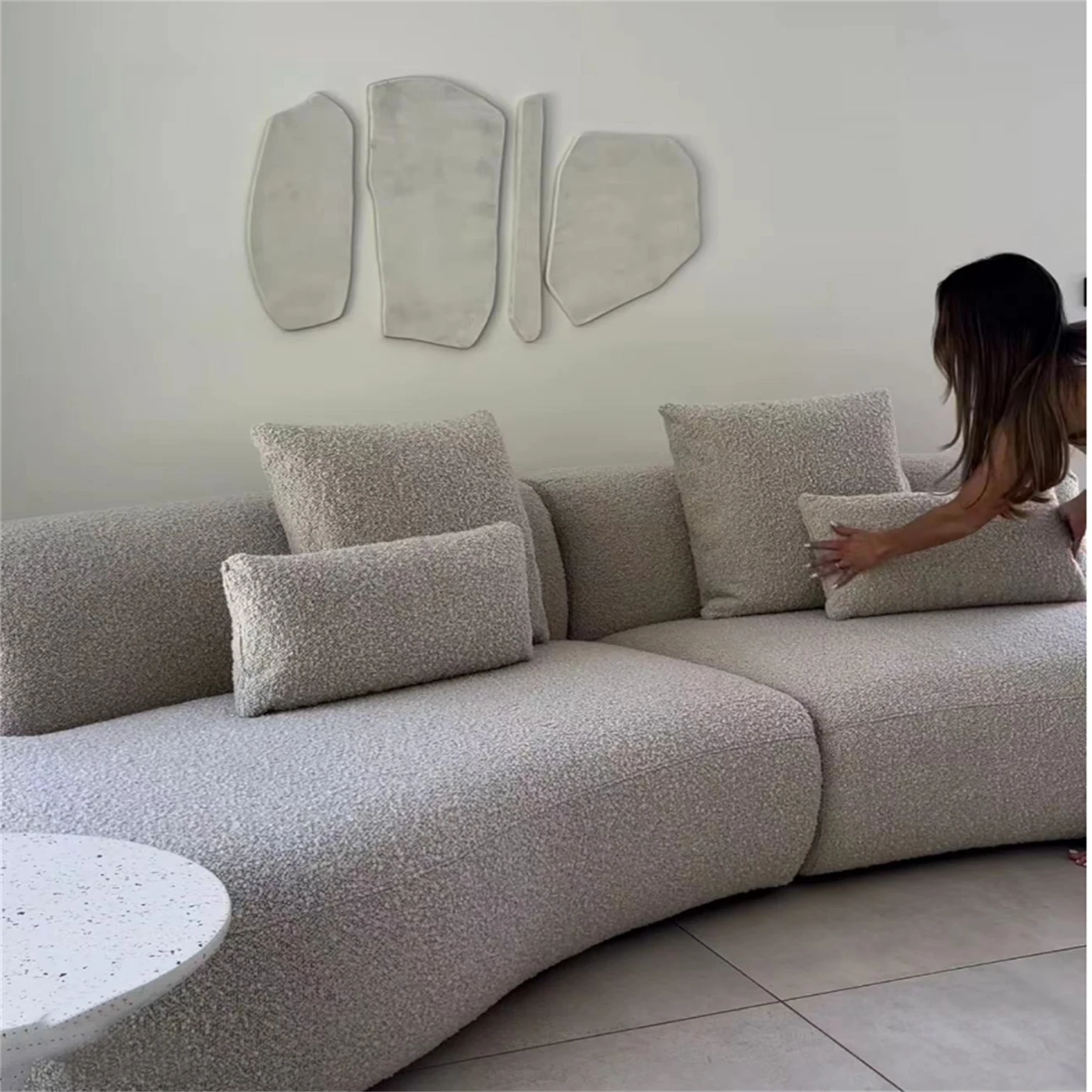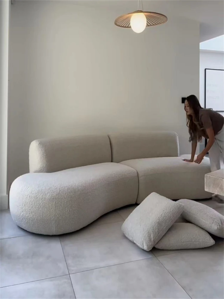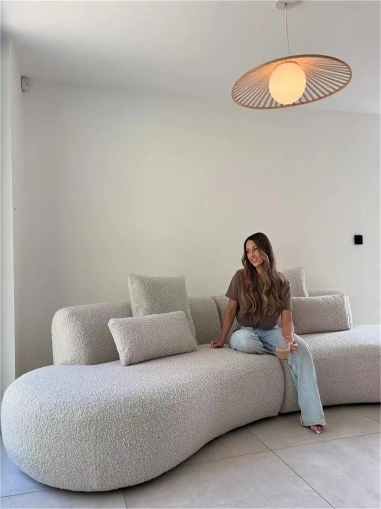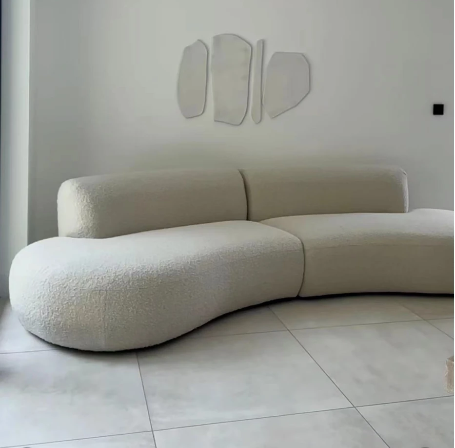 イタリアンミニマリズムの軽やかなラグジュアリー、アーチ型ファブリックカウチソファ。デザイナーによる小型住宅向けの新しいクリエイティブなリラックスソファ、シンプルで洗練されたデザイン!
