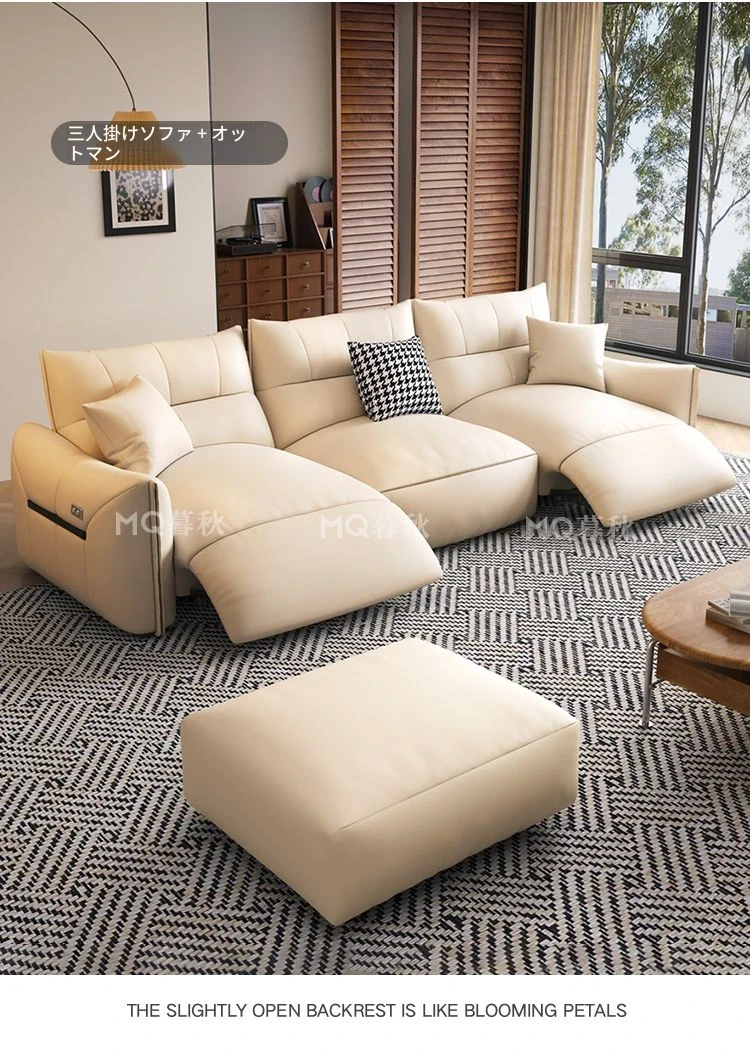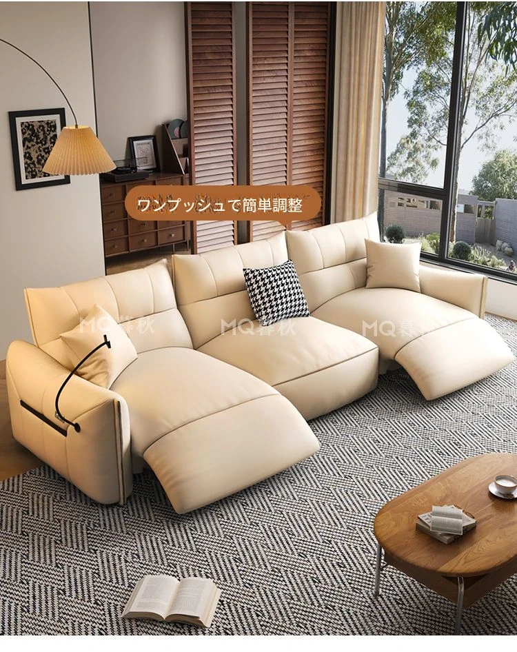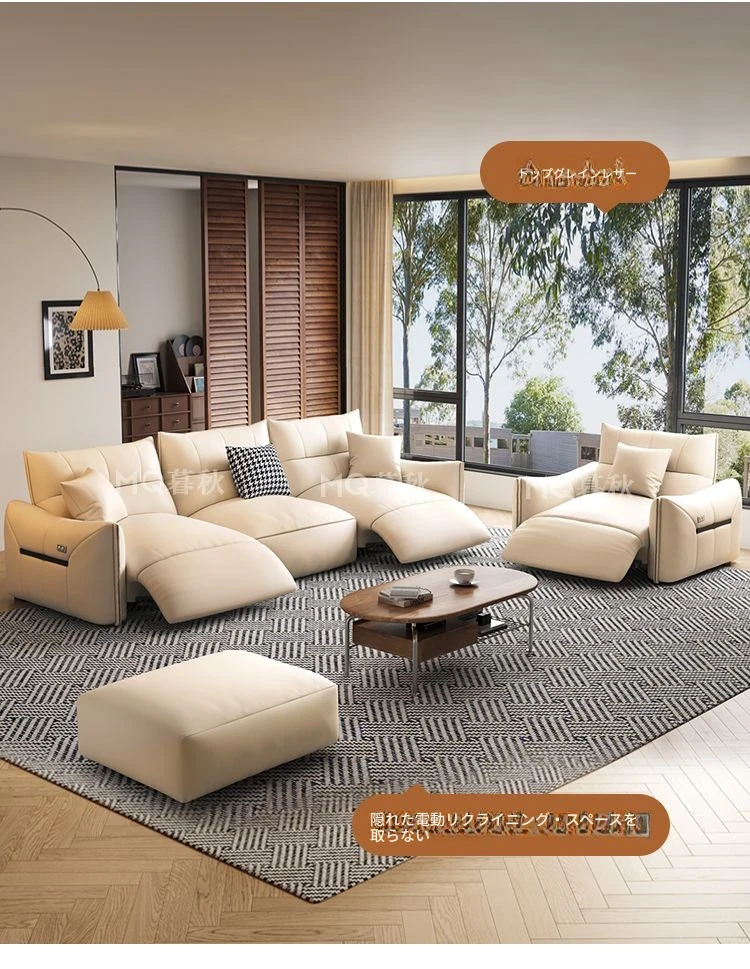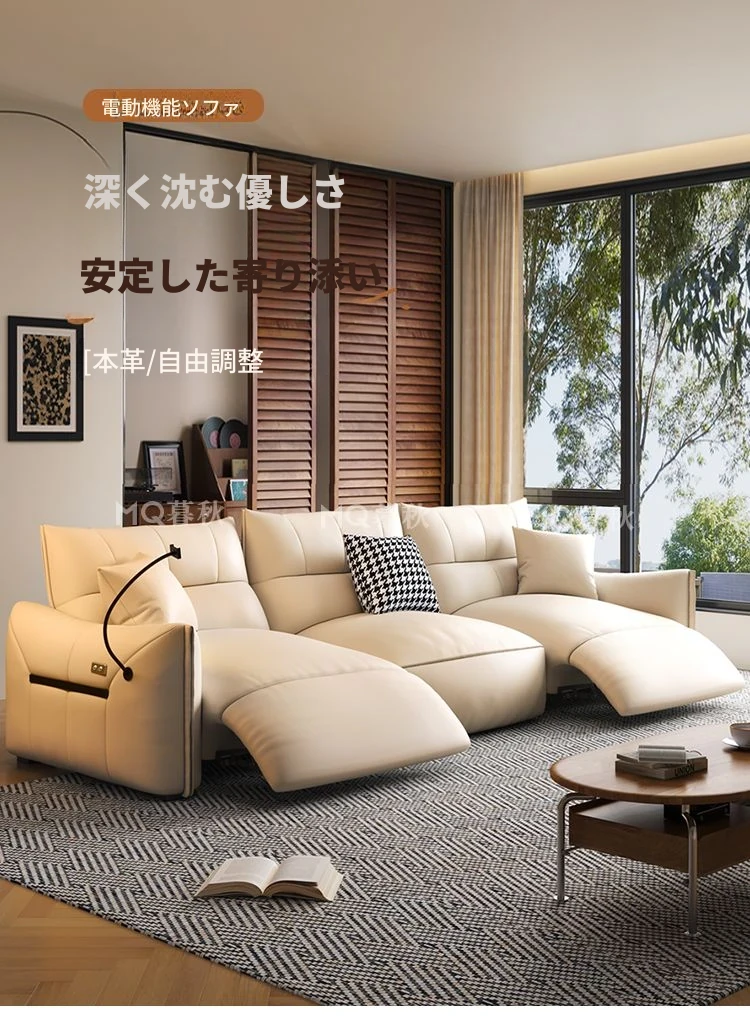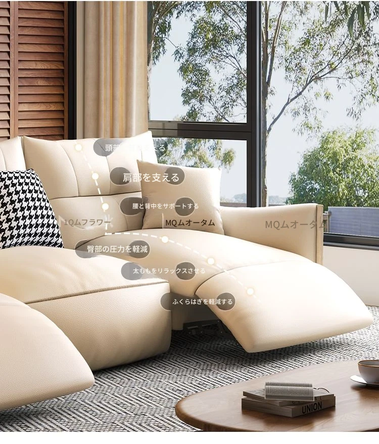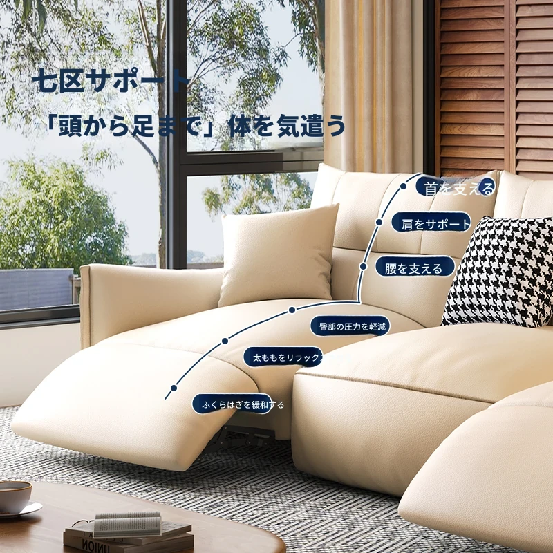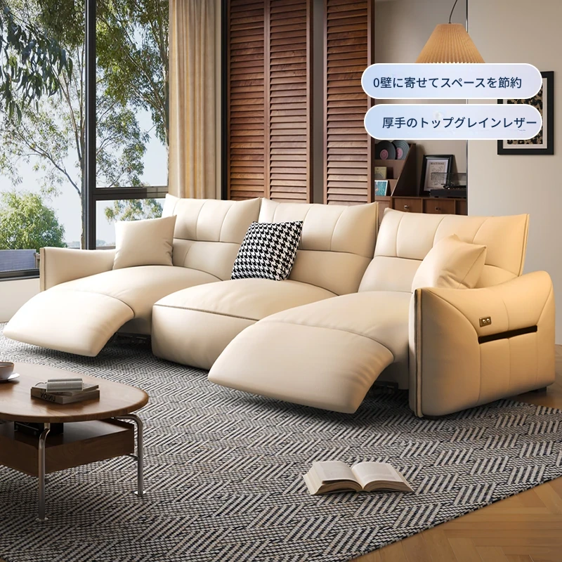 本革製エグゼクティブ多機能ソファ - 小型住宅向け、リビングにぴったりな電動機能付き!クリーム風の上質な一層牛革使用で、贅沢な座り心地を実現。おしゃれで快適な空間を演出します!