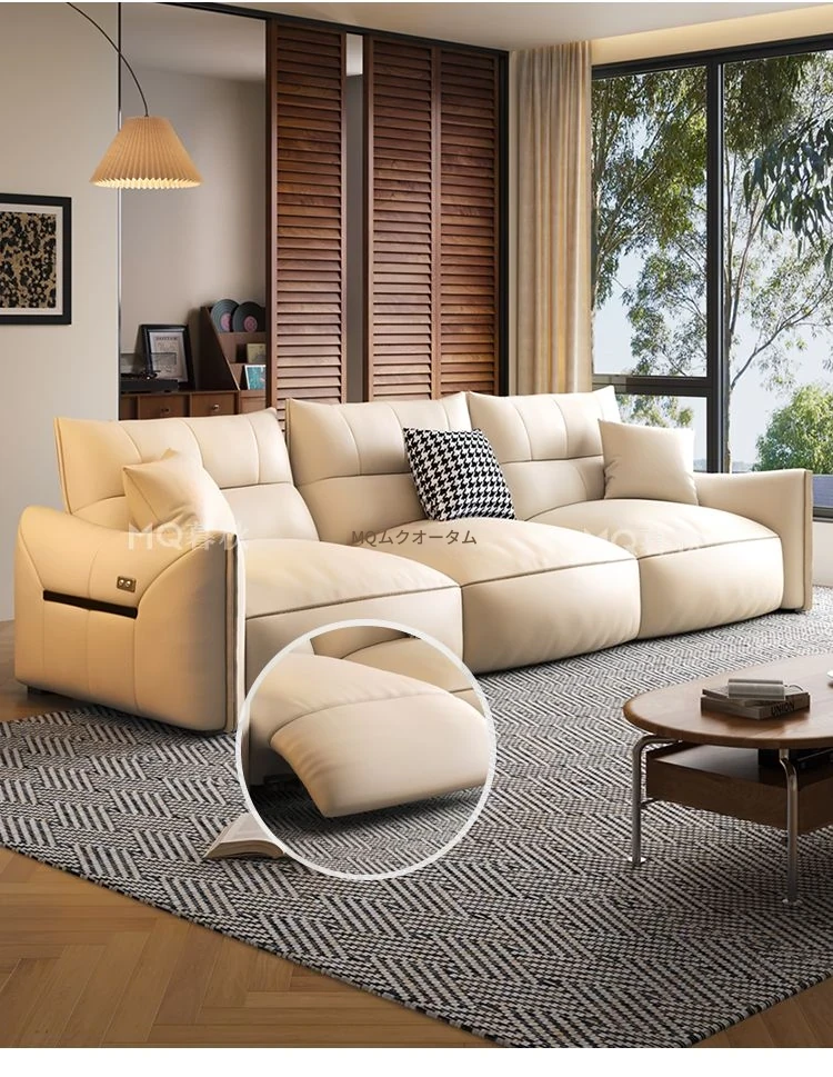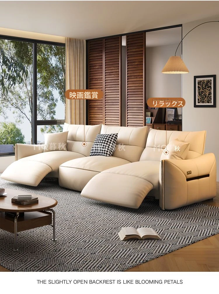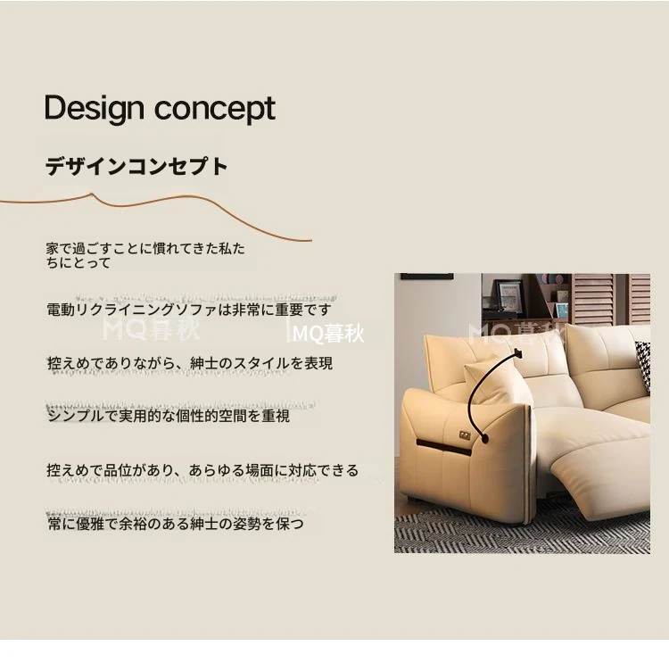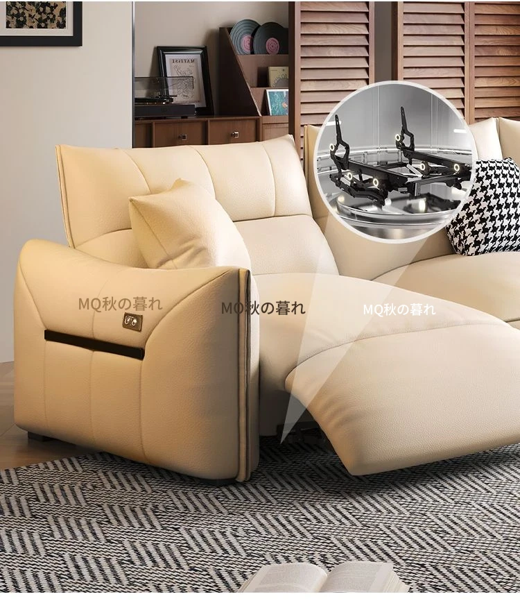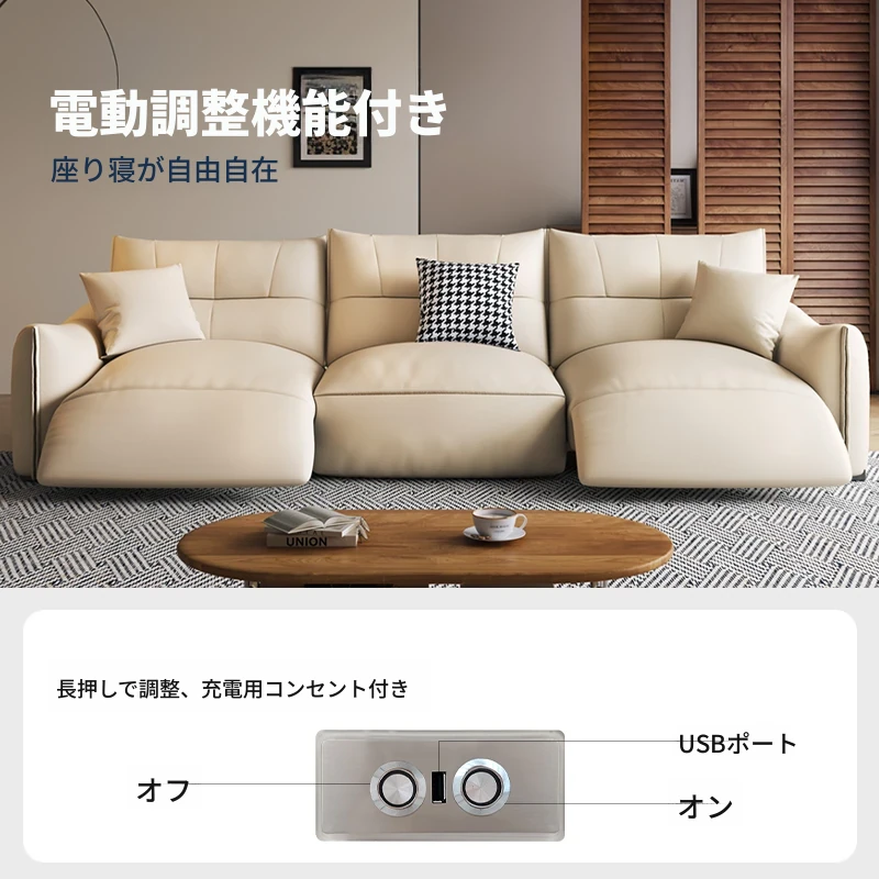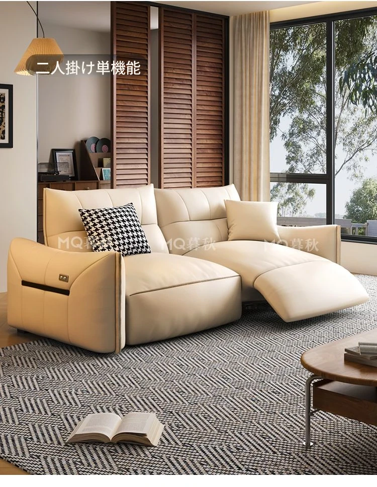 本革製エグゼクティブ多機能ソファ - 小型住宅向け、リビングにぴったりな電動機能付き!クリーム風の上質な一層牛革使用で、贅沢な座り心地を実現。おしゃれで快適な空間を演出します!