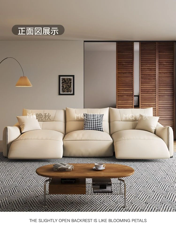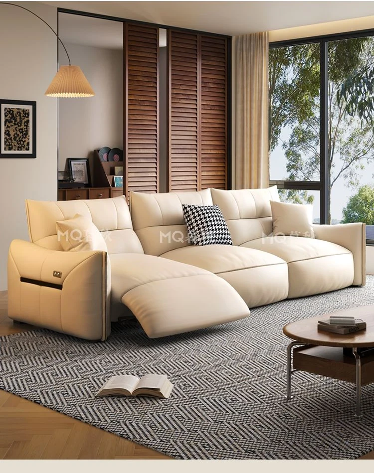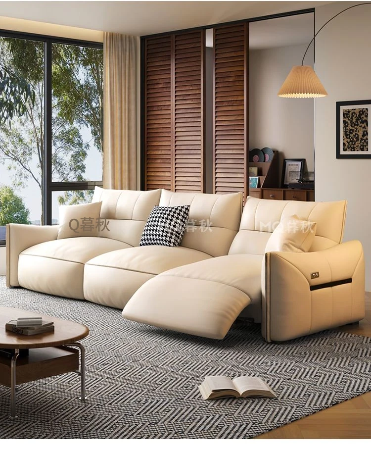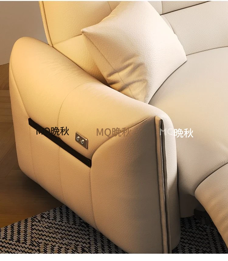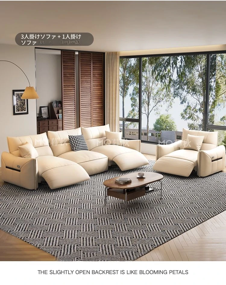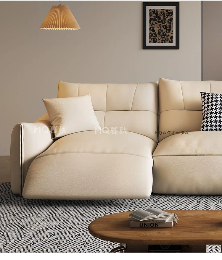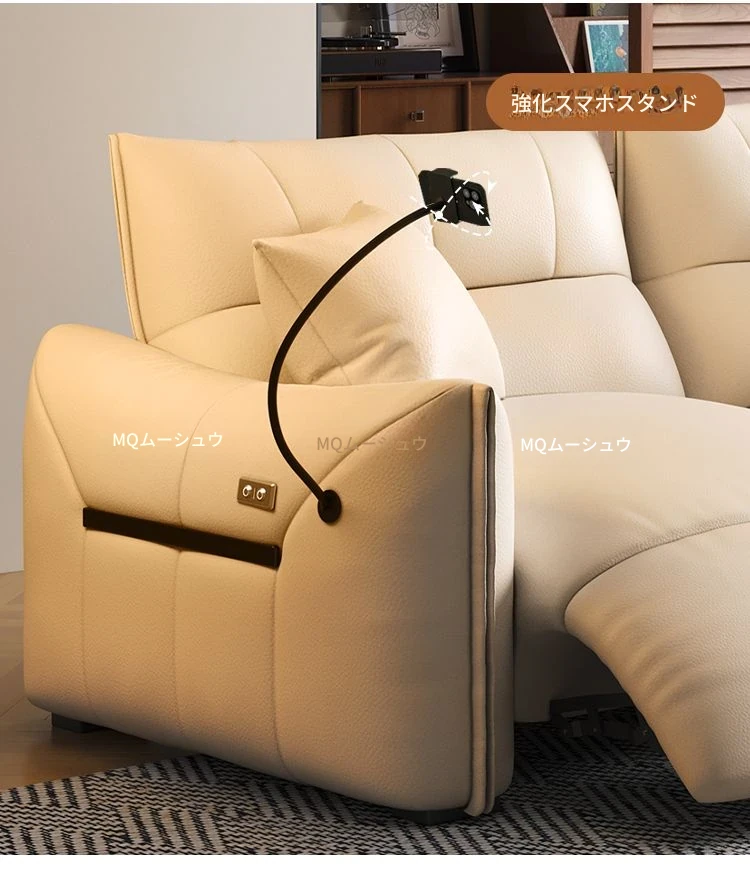 本革製エグゼクティブ多機能ソファ - 小型住宅向け、リビングにぴったりな電動機能付き!クリーム風の上質な一層牛革使用で、贅沢な座り心地を実現。おしゃれで快適な空間を演出します!