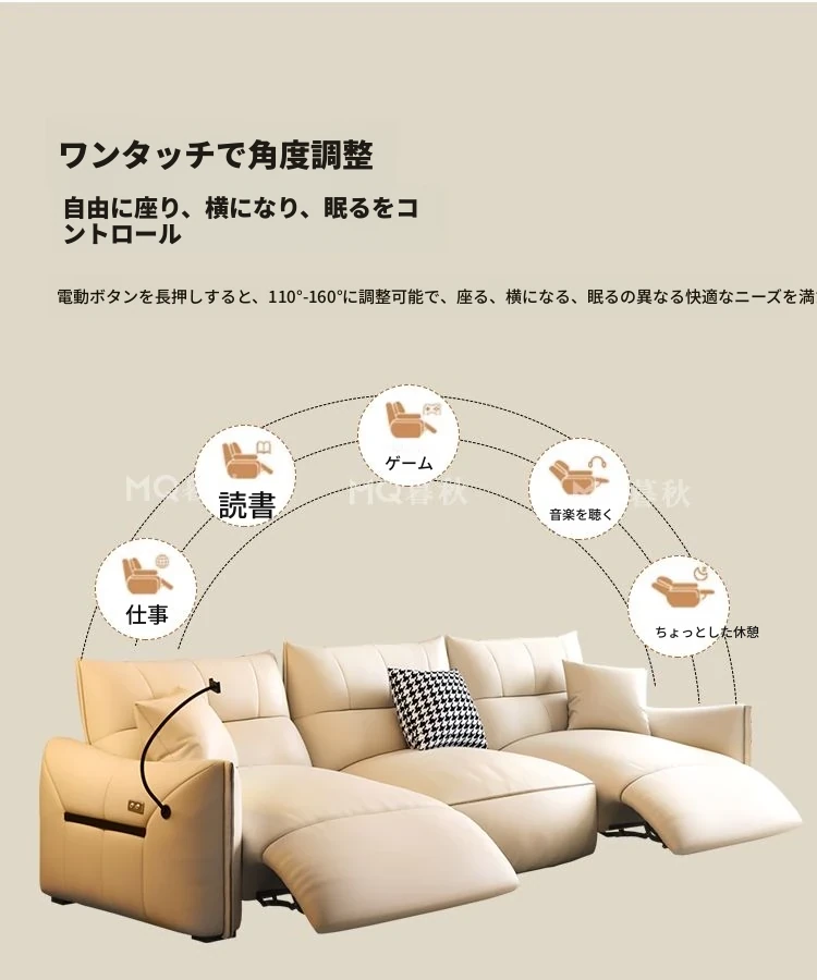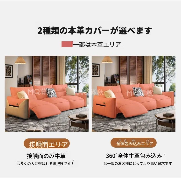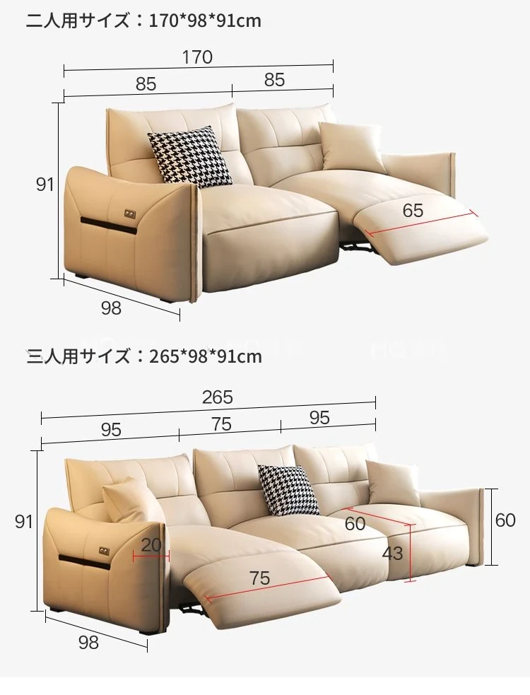 2.65m三人用ソファ(シングル電動)+アームレスト付き一人用ソファ(電動)