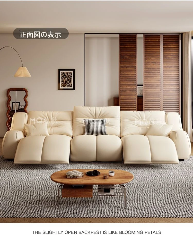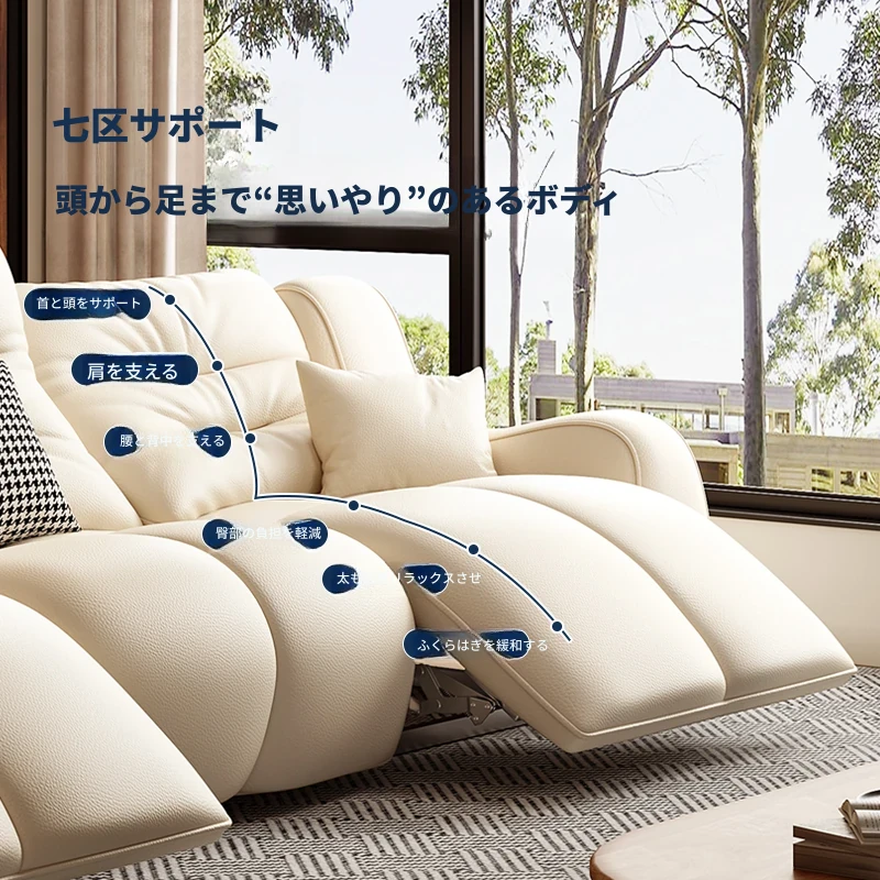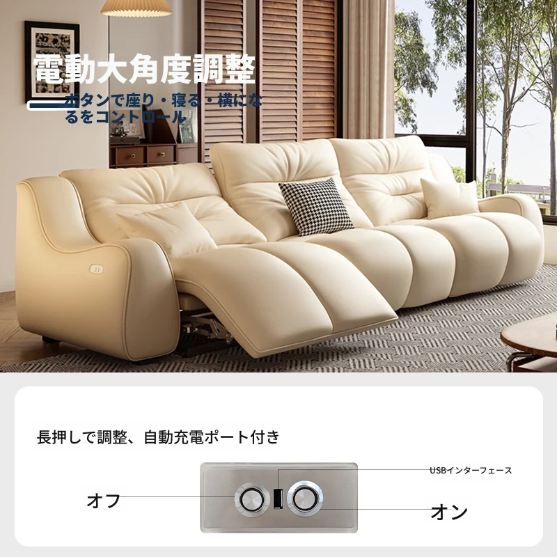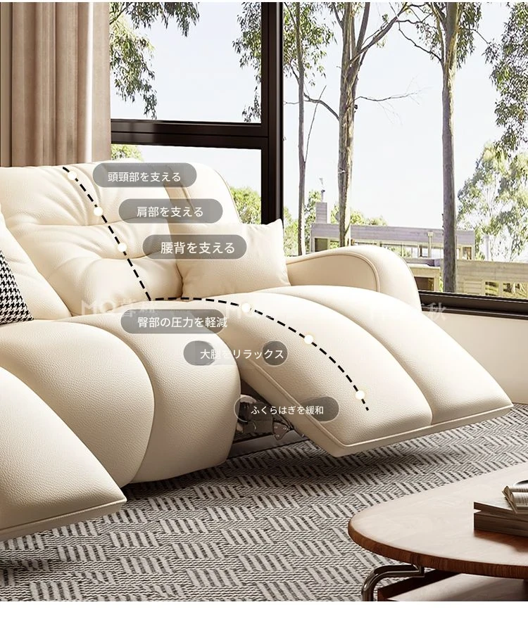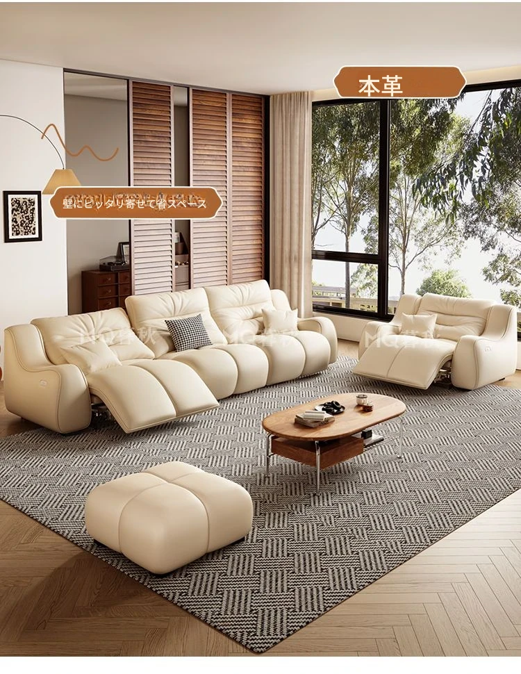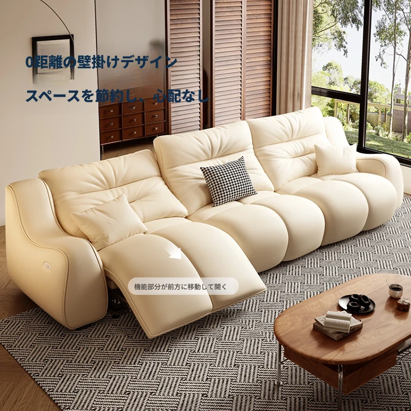 壁に寄せない本革電動ソファ | モダンでシンプルなデザイン | 小型リビングに最適 | 高級牛革使用 | スペースセービング機能付き | 快適な座り心地を実現