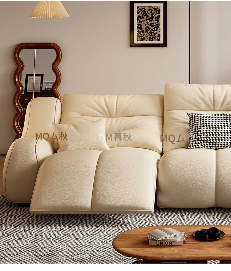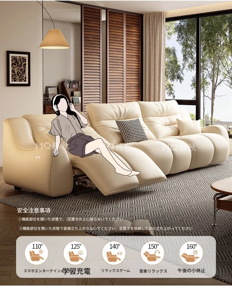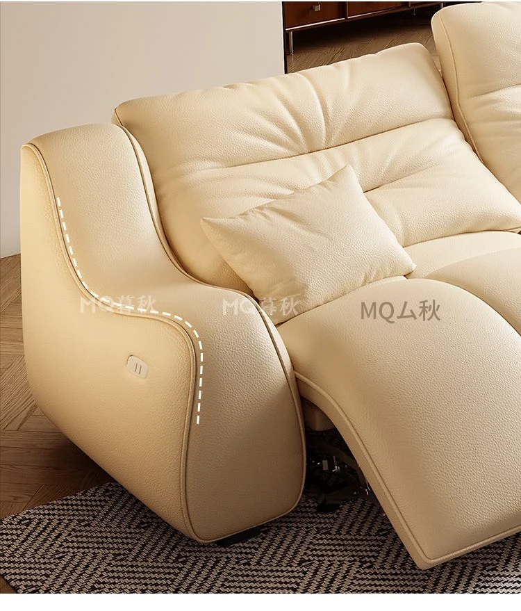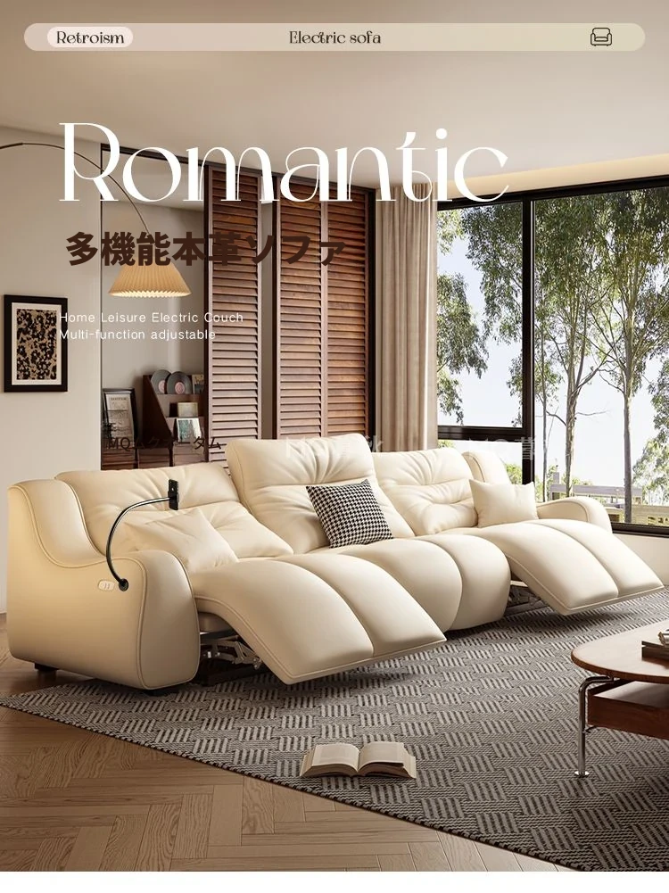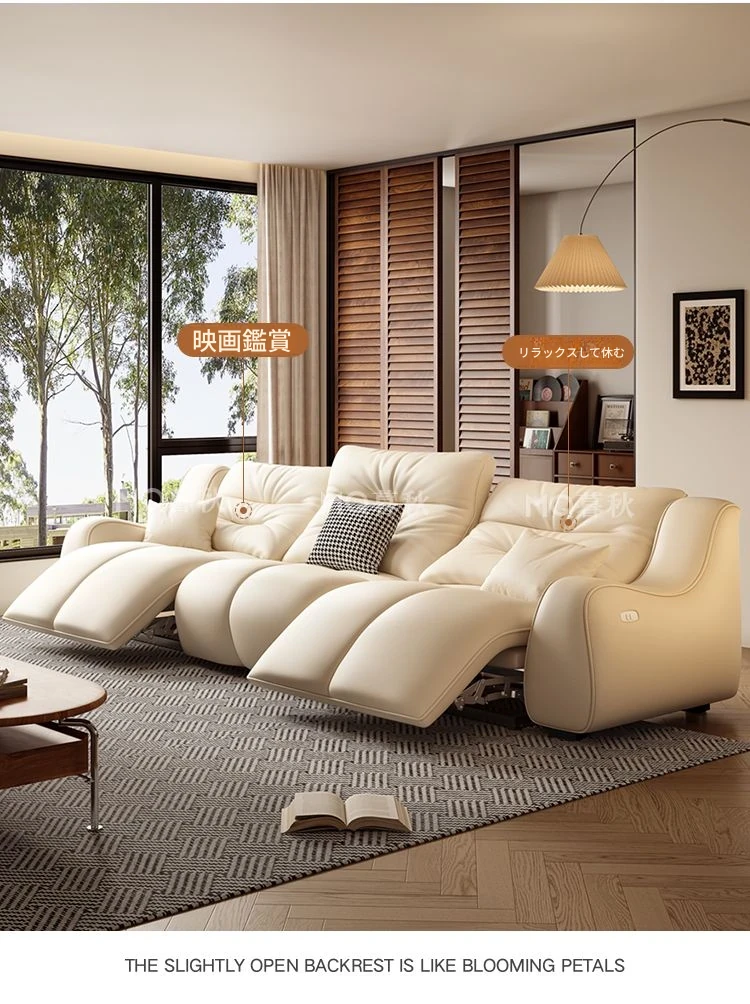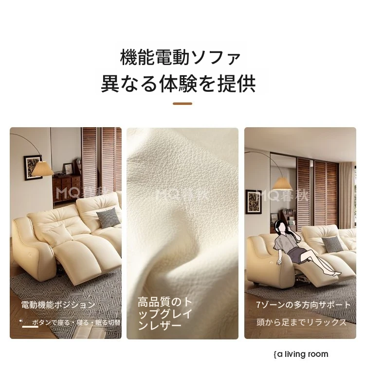 壁に寄せない本革電動ソファ | モダンでシンプルなデザイン | 小型リビングに最適 | 高級牛革使用 | スペースセービング機能付き | 快適な座り心地を実現