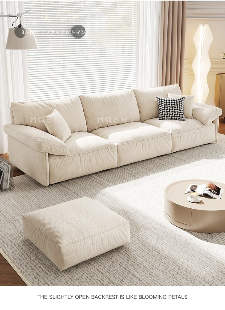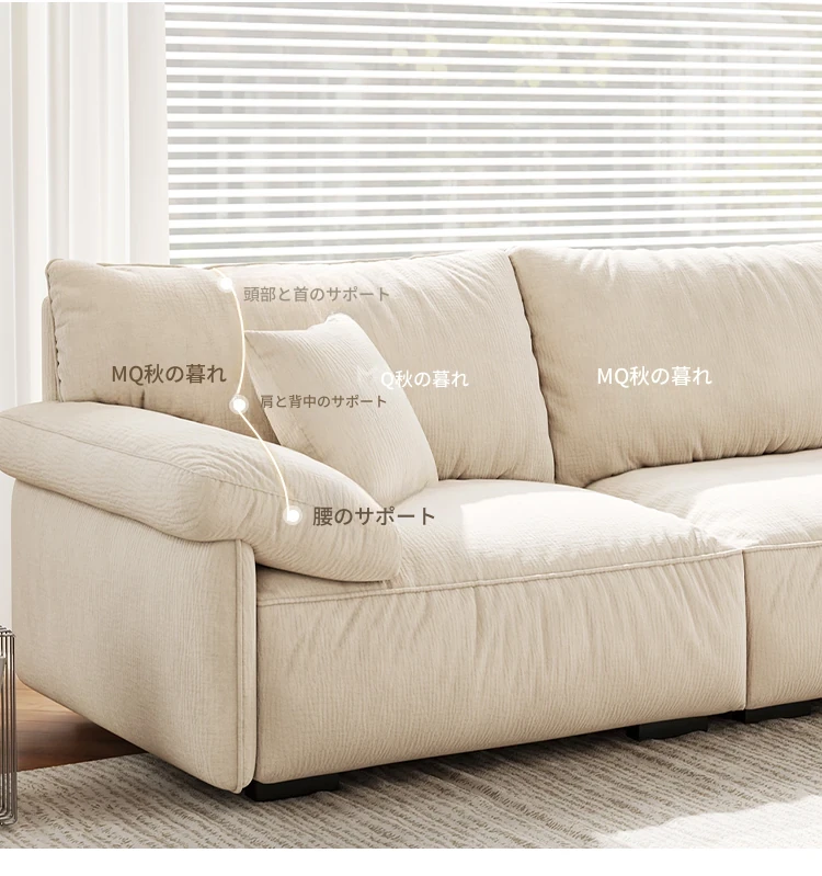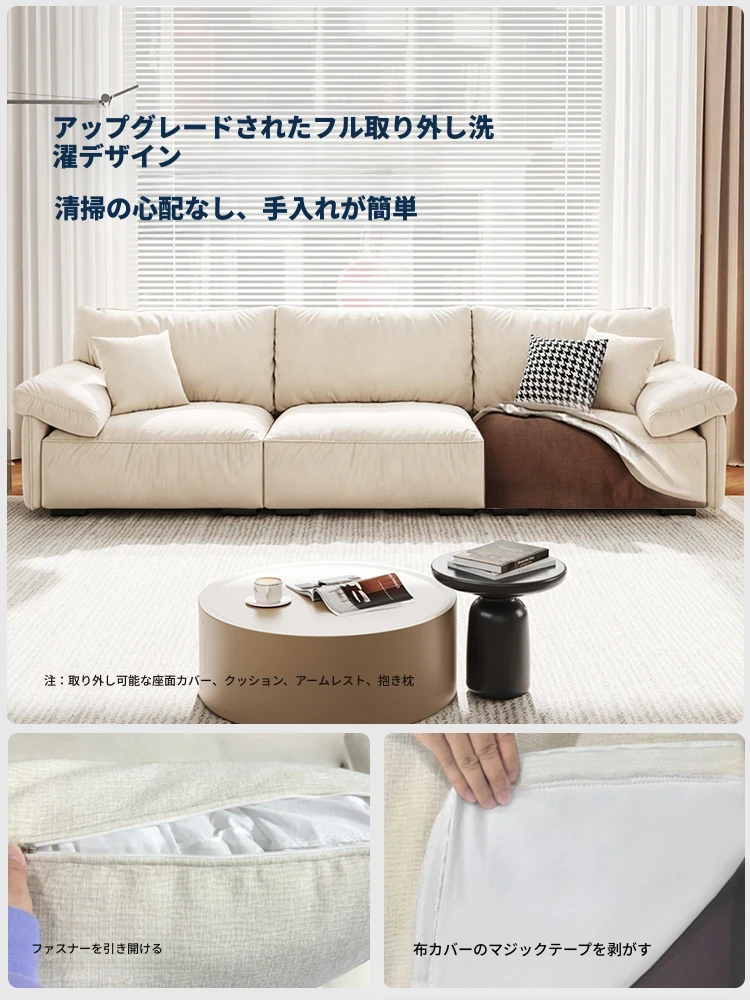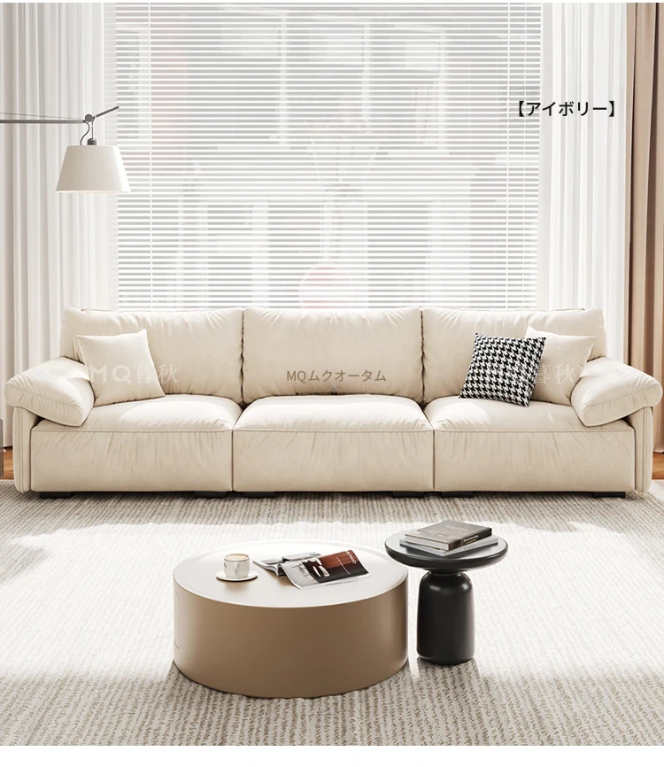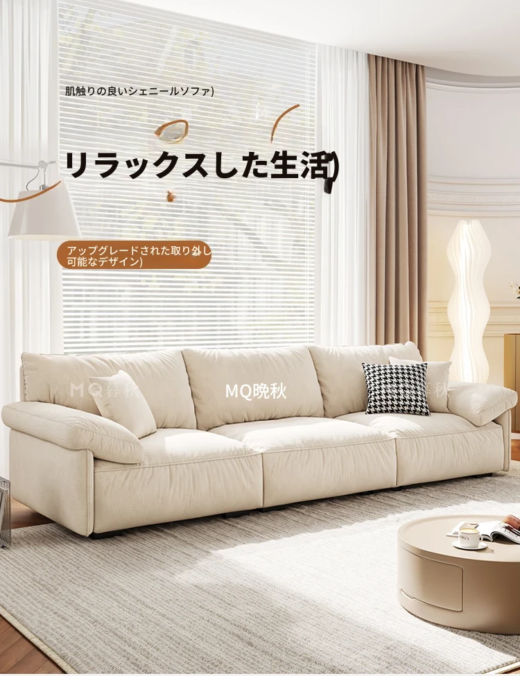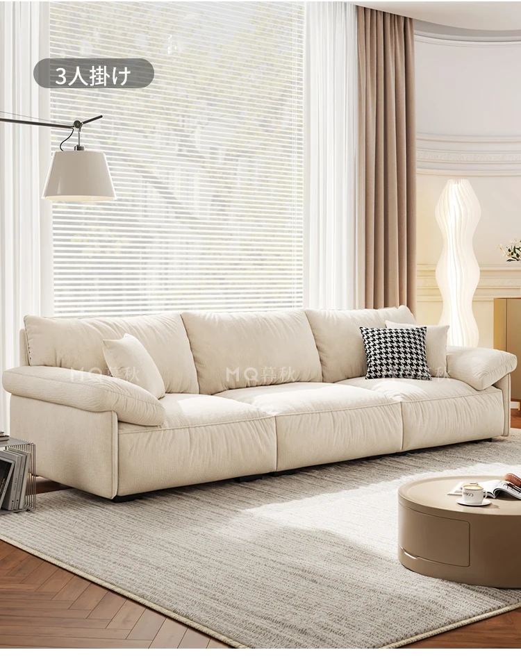 洗える雪ニール製フレンチクリーム風生地の大耳象のソファ、2025年新作!豆腐ブロックデザインで、リラックス空間を演出。おしゃれで快適なリビングにぴったり!