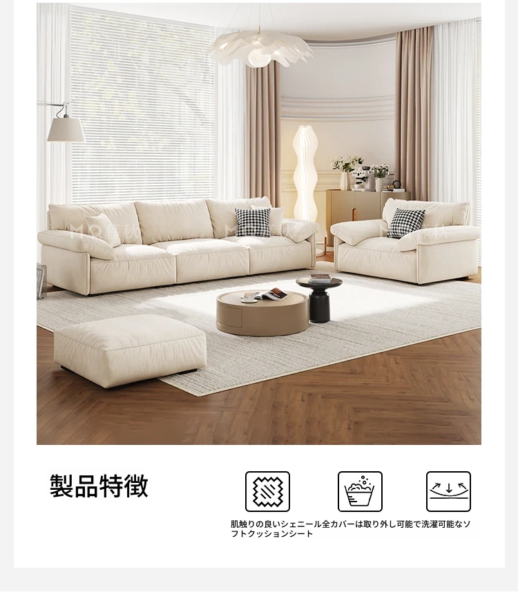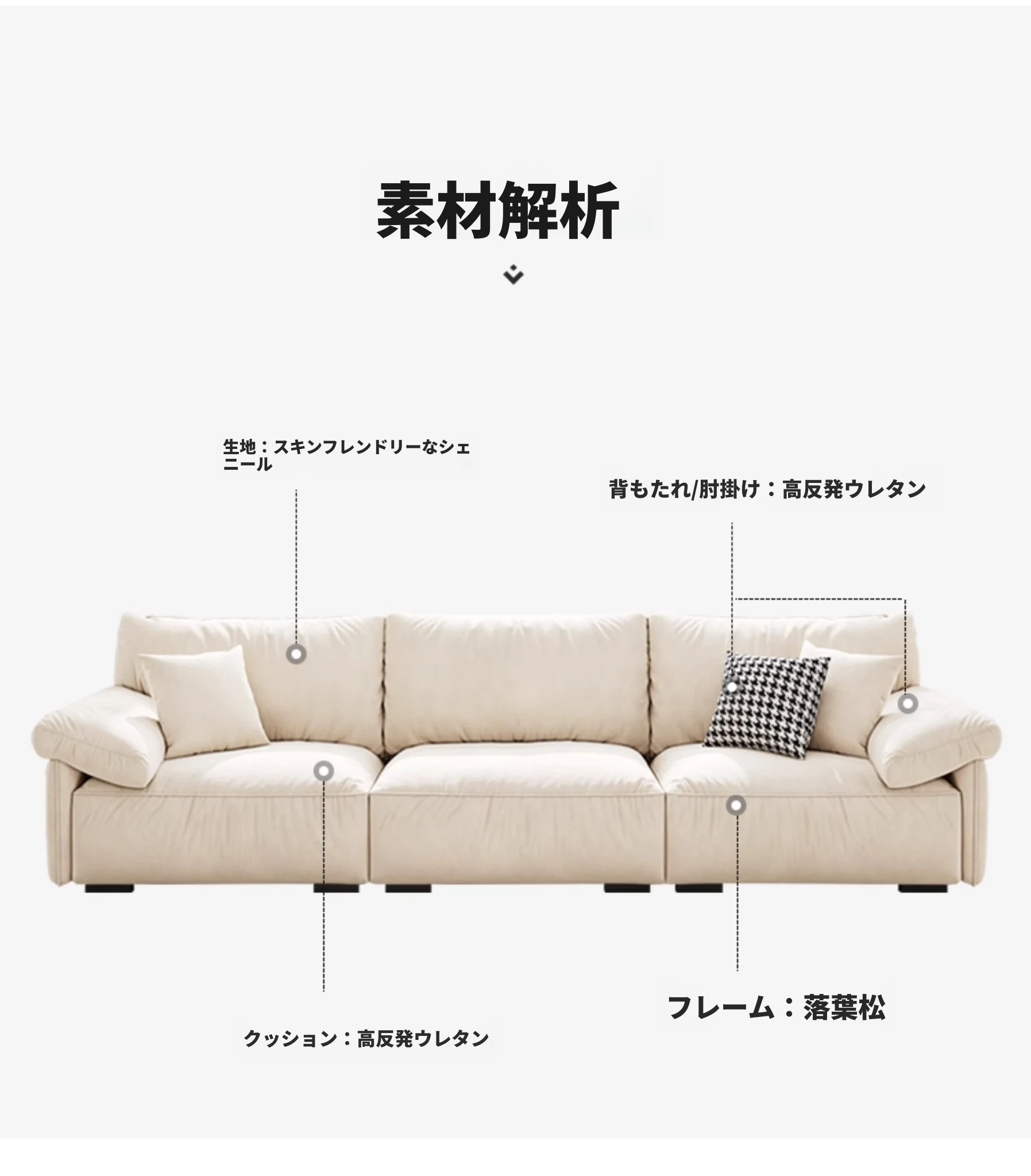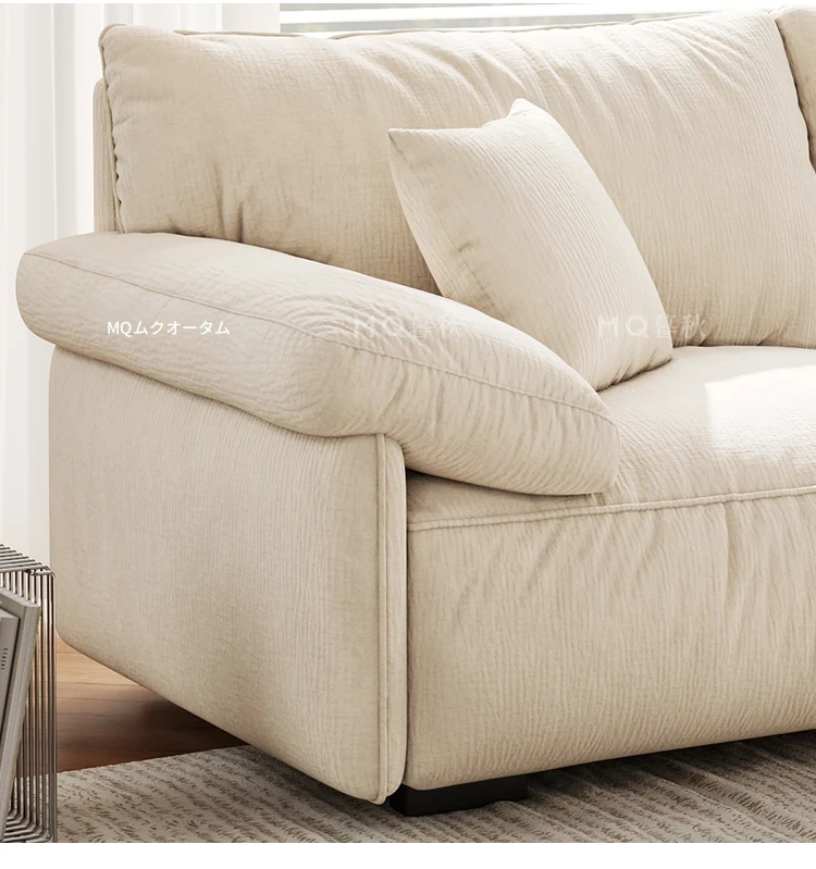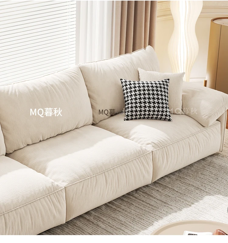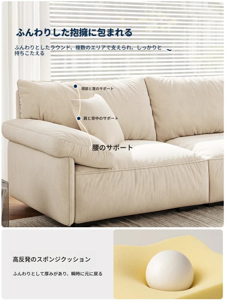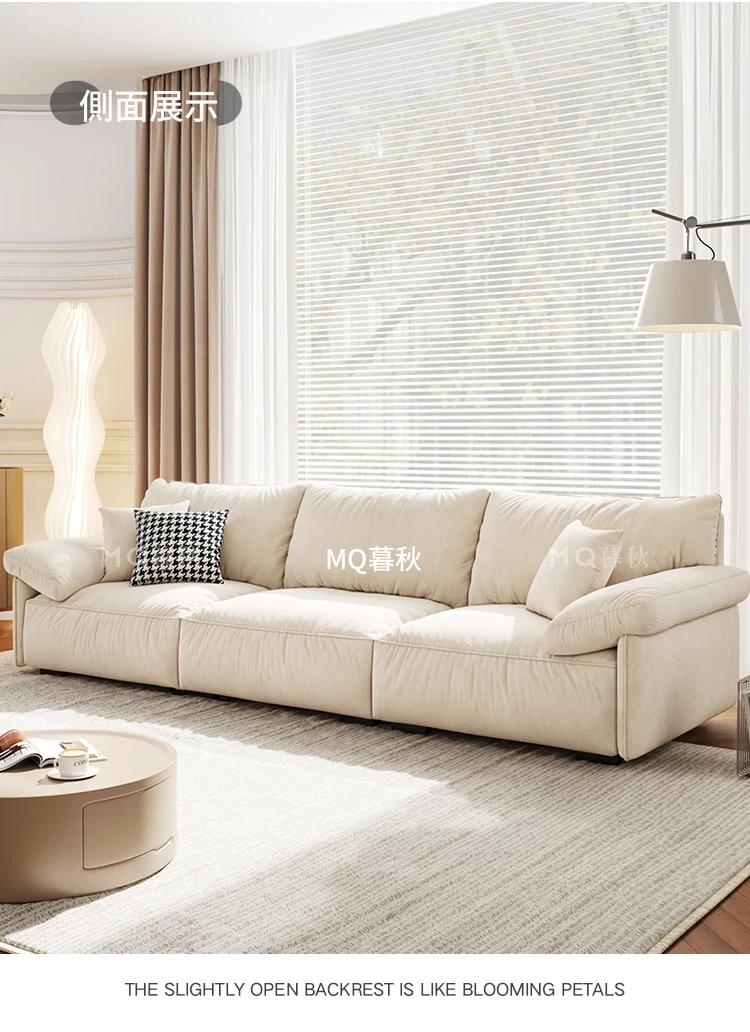洗える雪ニール製フレンチクリーム風生地の大耳象のソファ、2025年新作!豆腐ブロックデザインで、リラックス空間を演出。おしゃれで快適なリビングにぴったり!