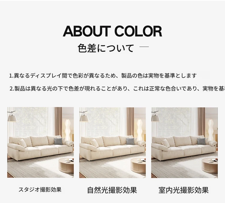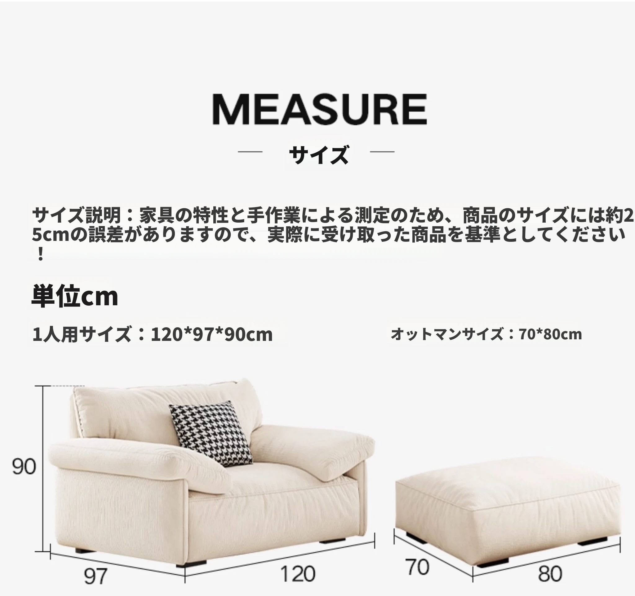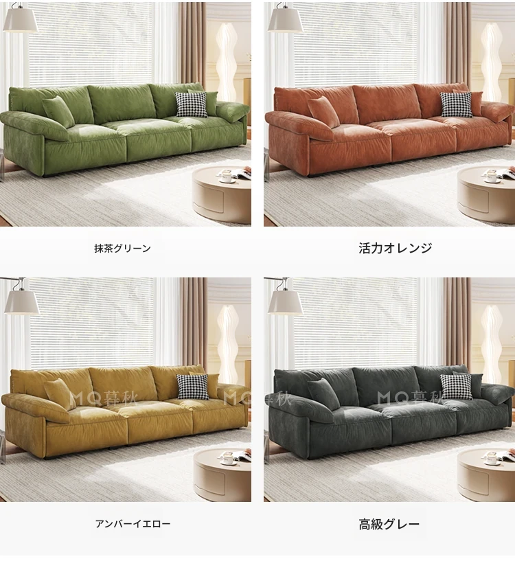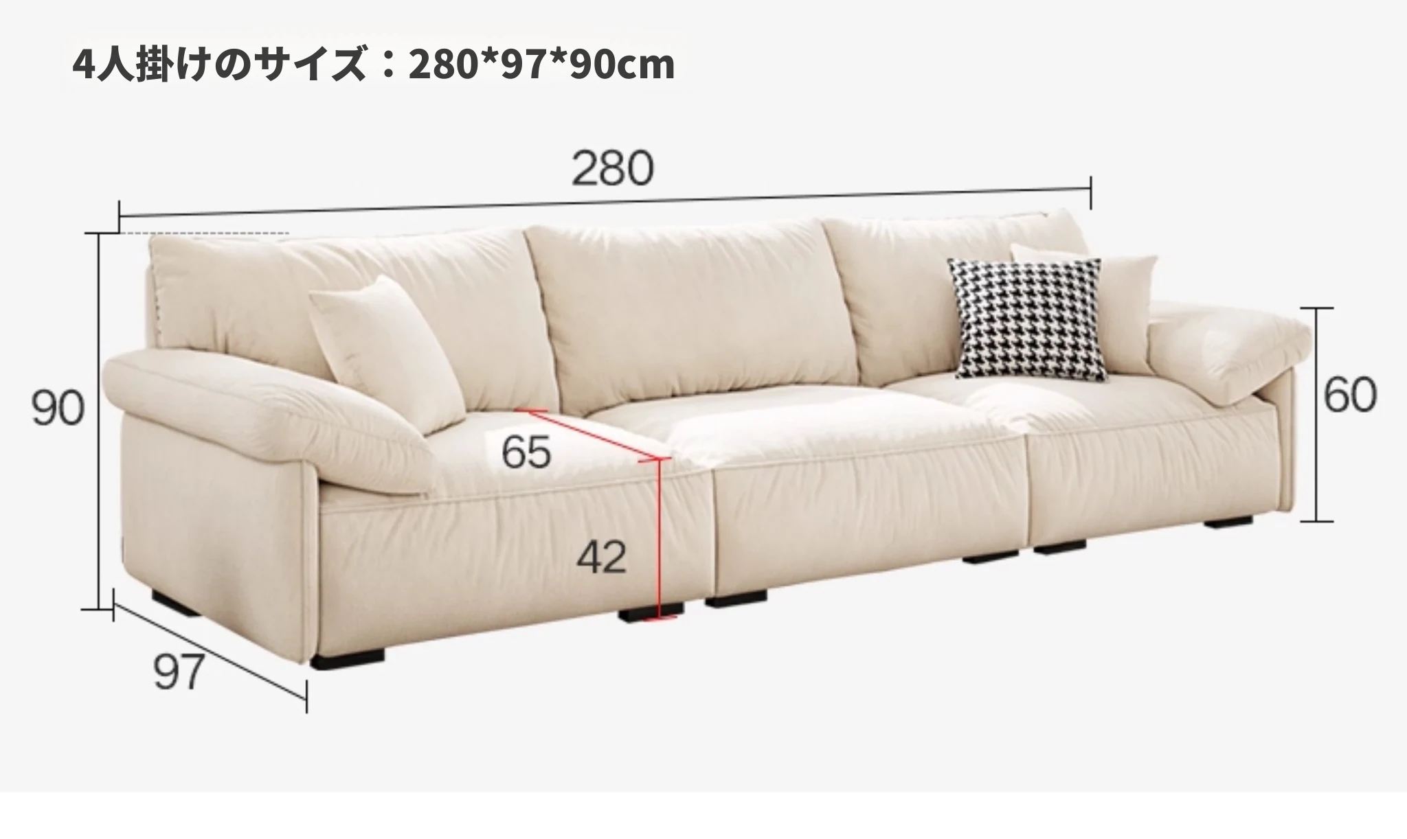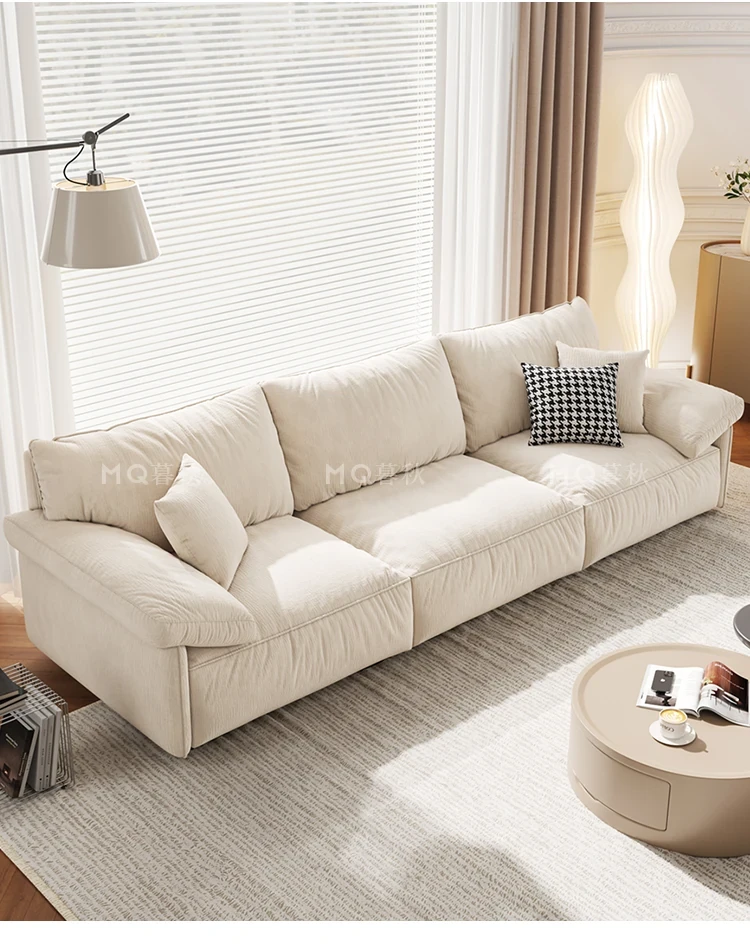 洗える雪ニール製フレンチクリーム風生地の大耳象のソファ、2025年新作!豆腐ブロックデザインで、リラックス空間を演出。おしゃれで快適なリビングにぴったり!
