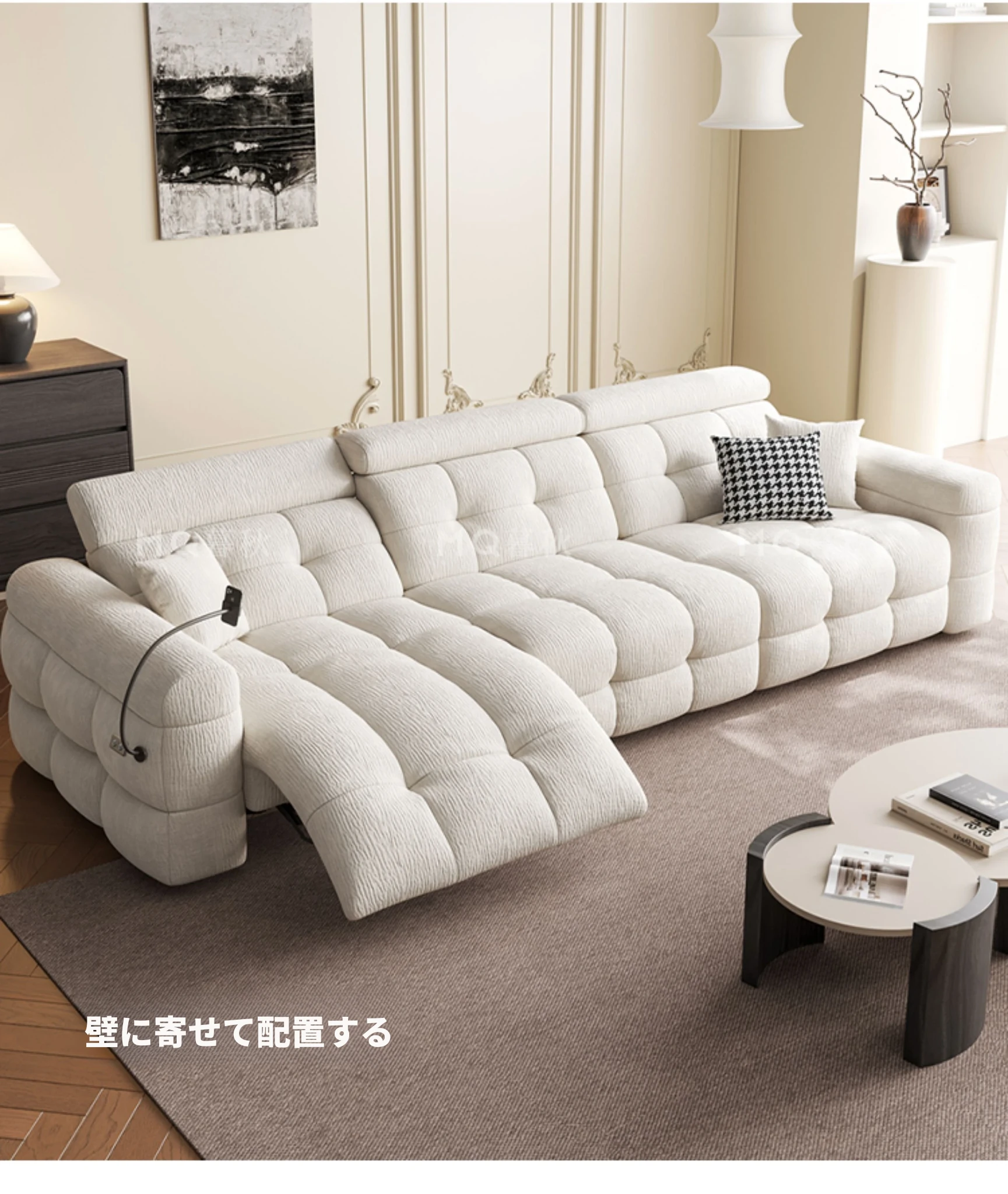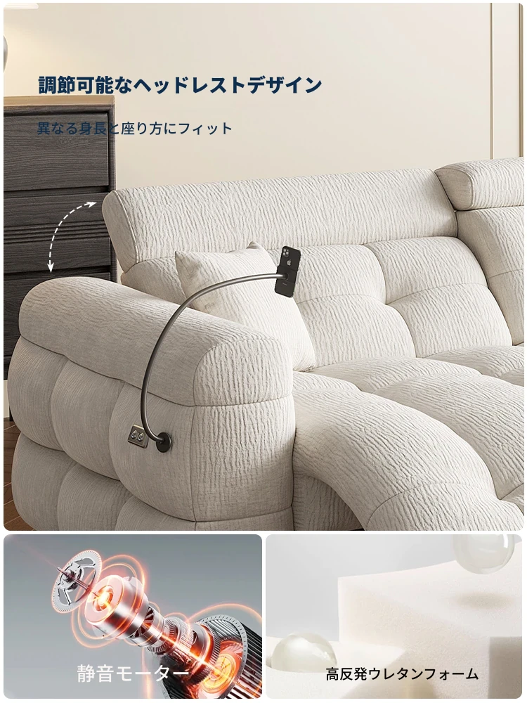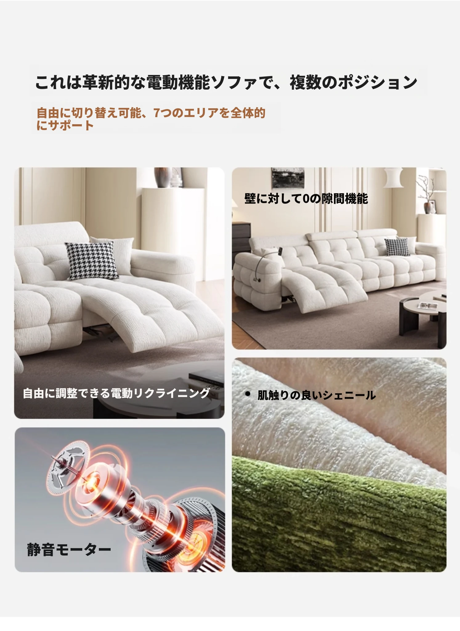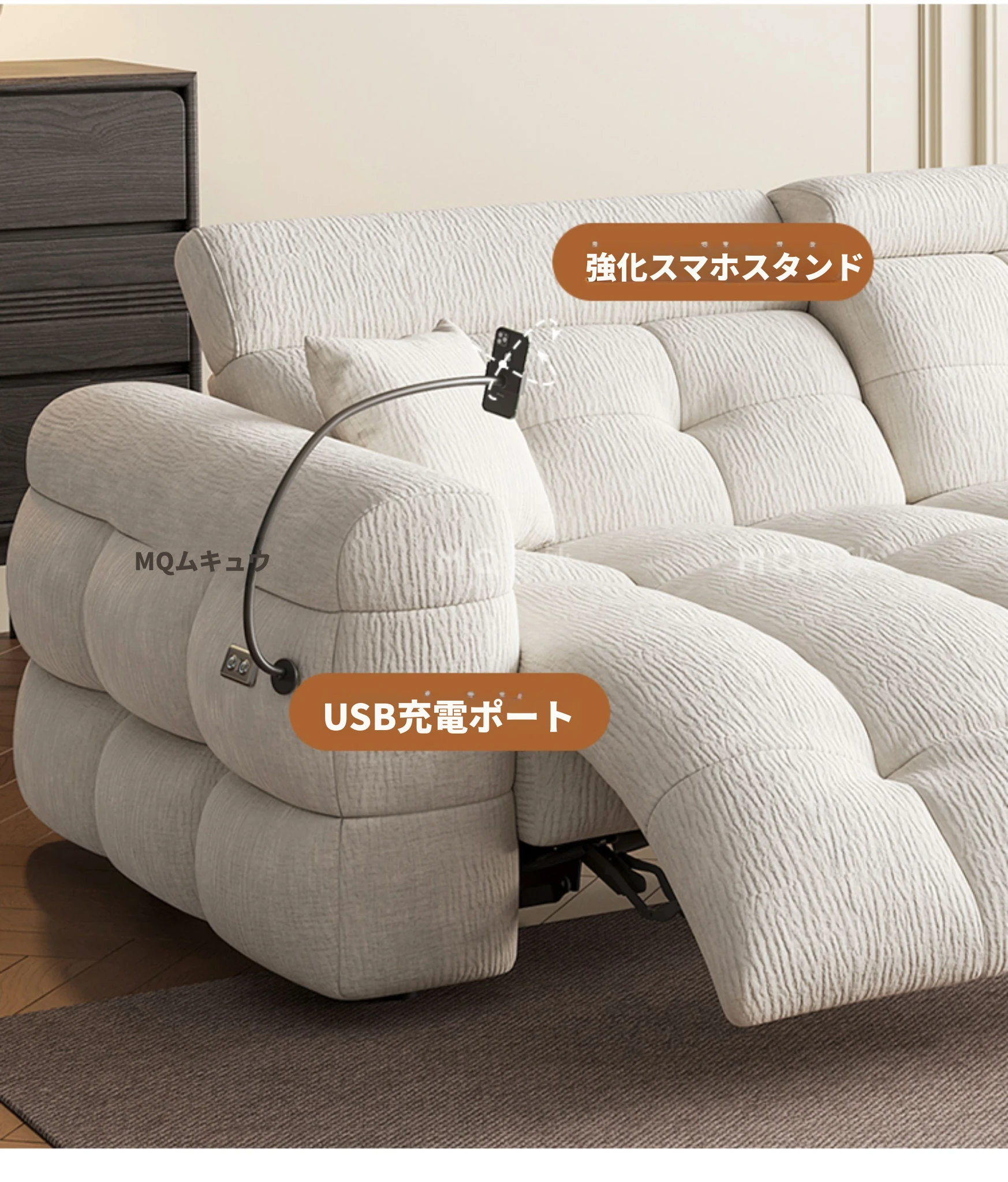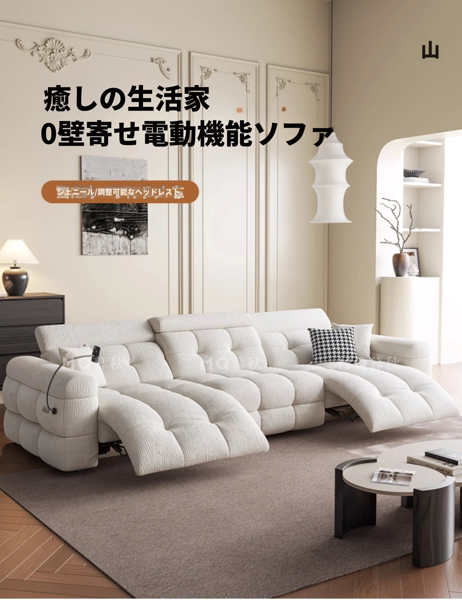壁に依存しない多機能電動ソファ、レトロなデザインの調整可能なヘッドレスト付き、スマートキャビン風のシェニール生地3人掛けソファ - 快適さとスタイルを兼ね備えた理想のリビング空間を実現!