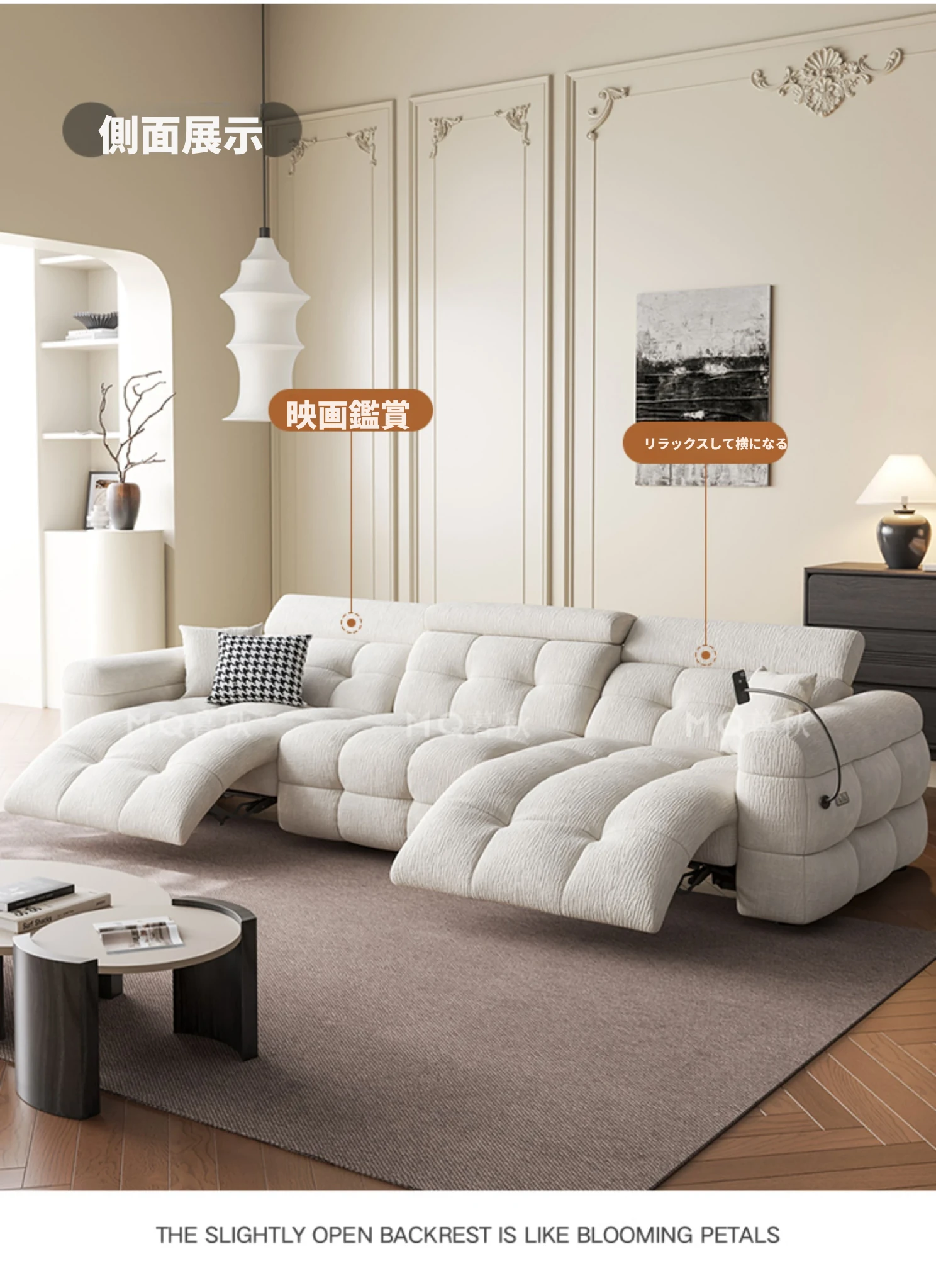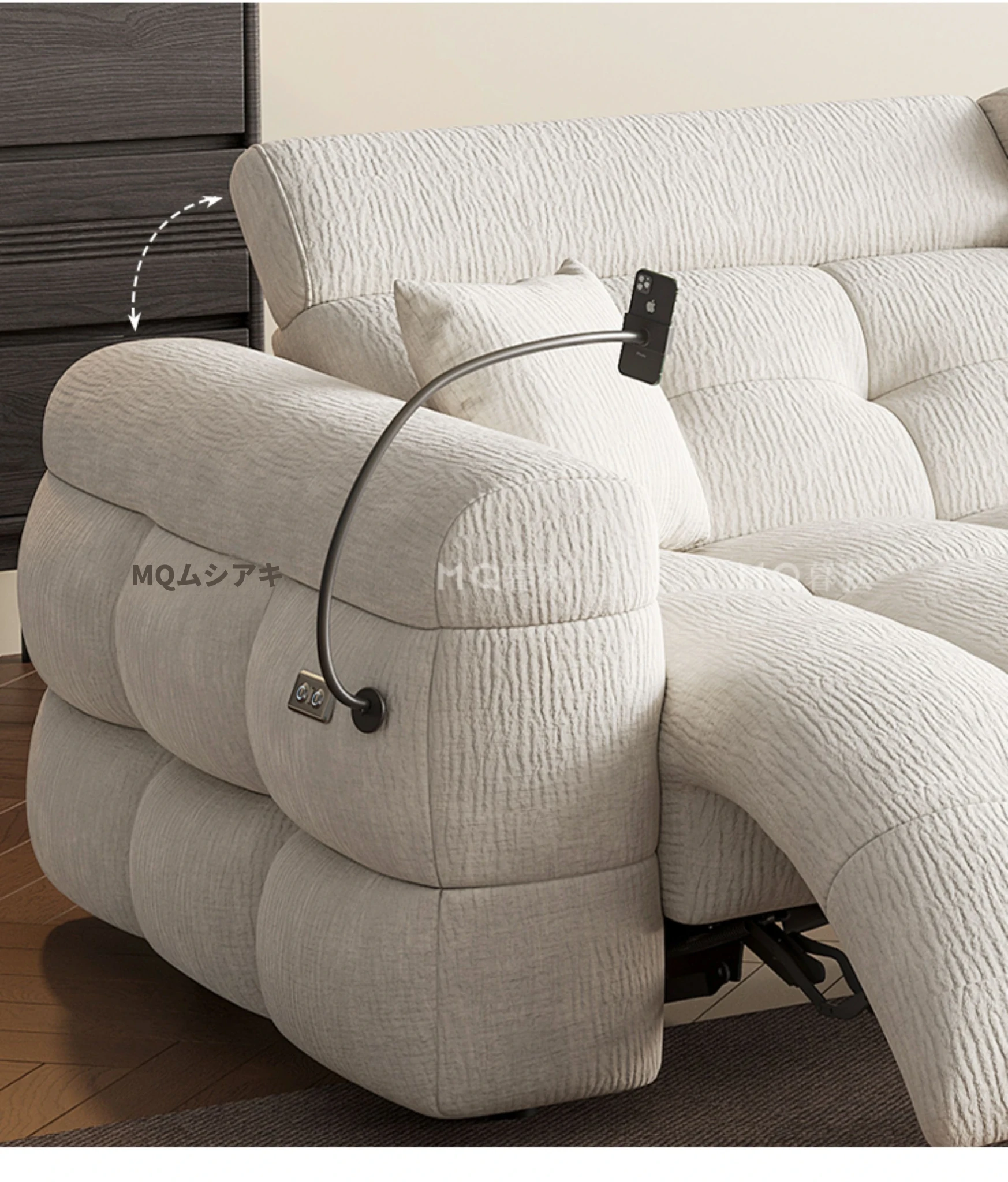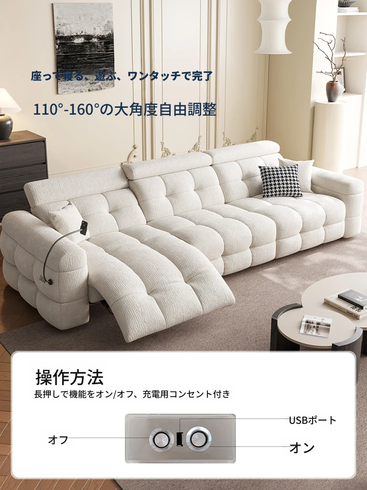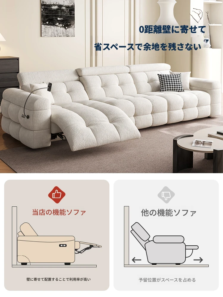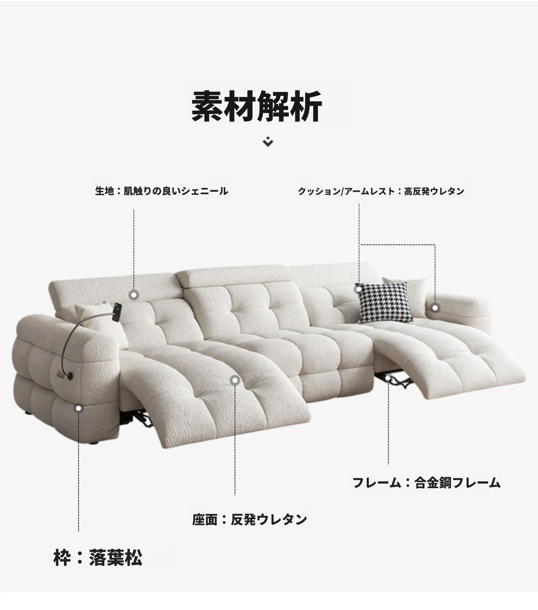 壁に依存しない多機能電動ソファ、レトロなデザインの調整可能なヘッドレスト付き、スマートキャビン風のシェニール生地3人掛けソファ - 快適さとスタイルを兼ね備えた理想のリビング空間を実現!