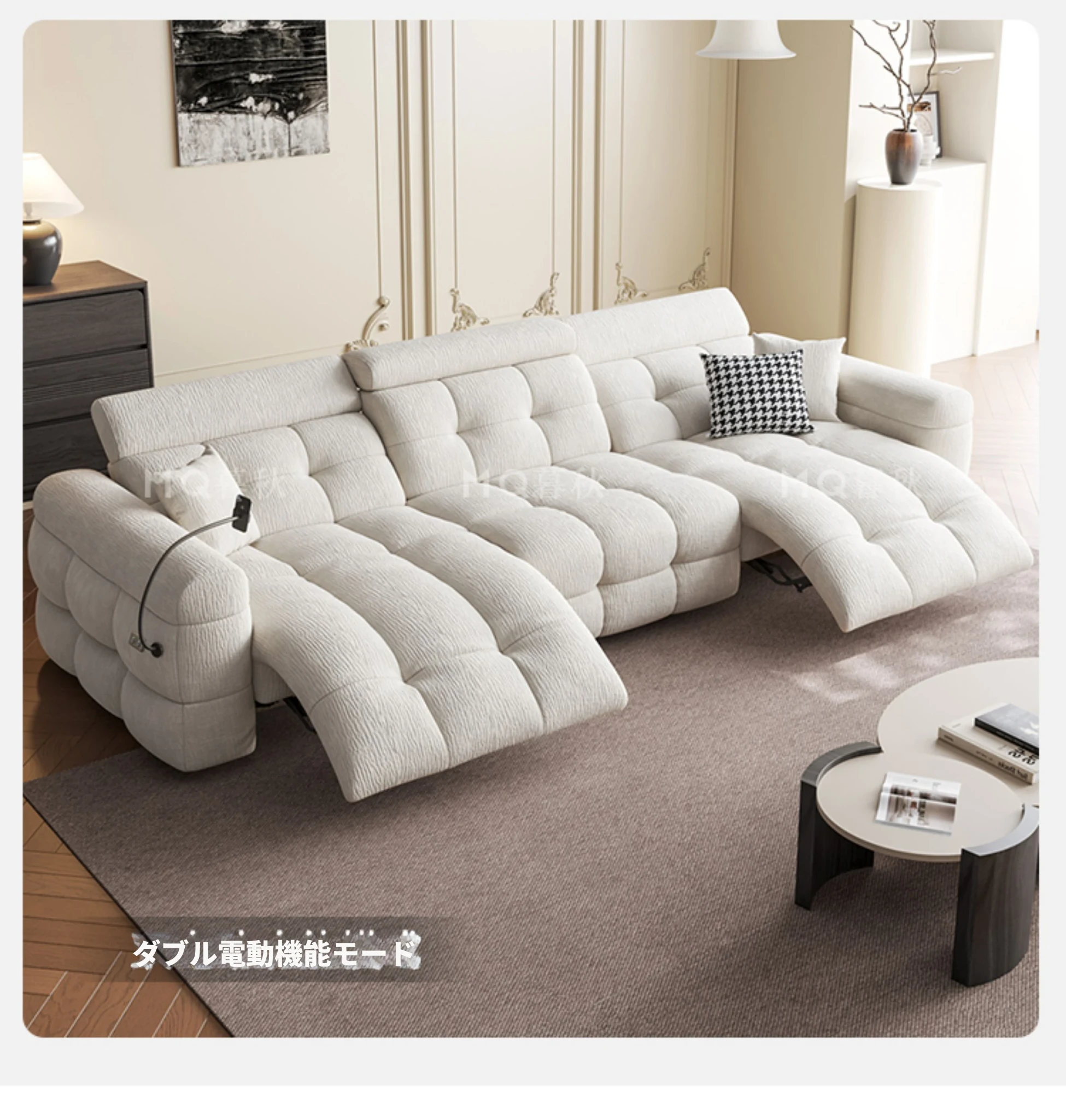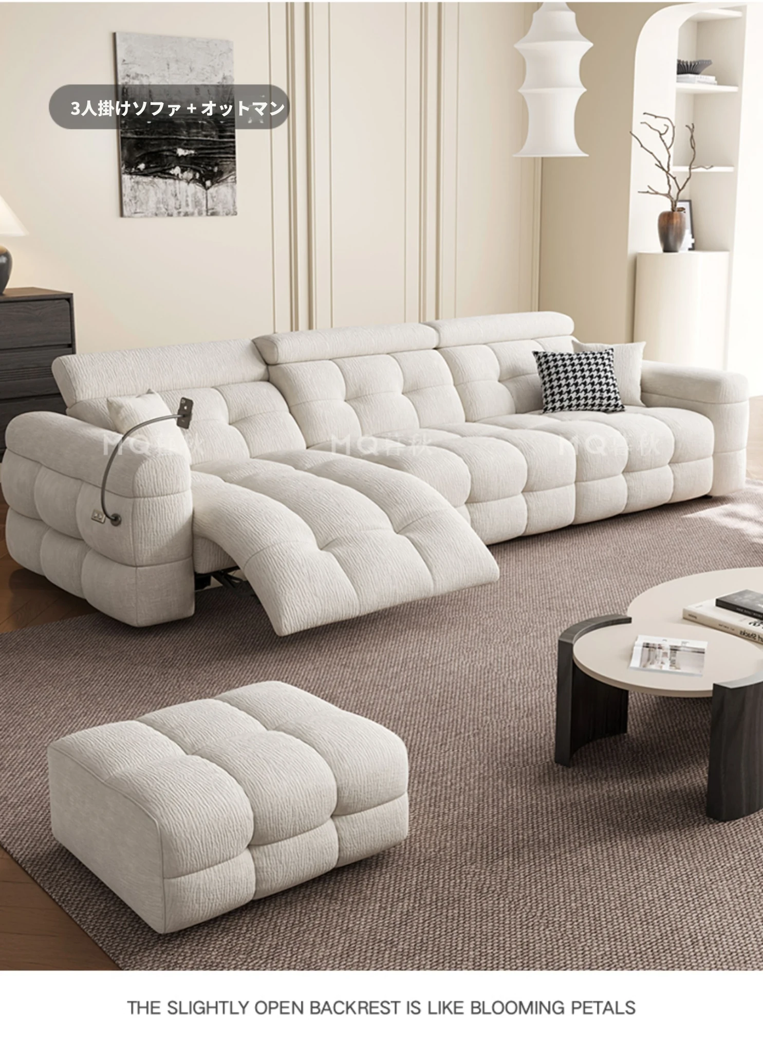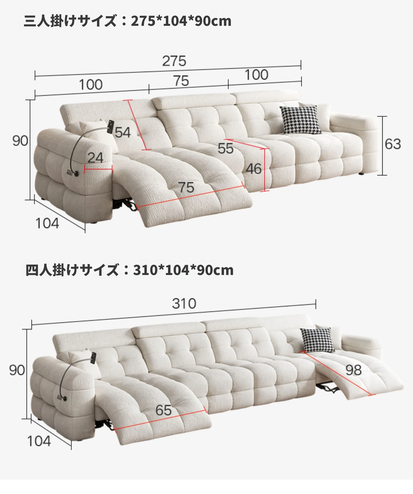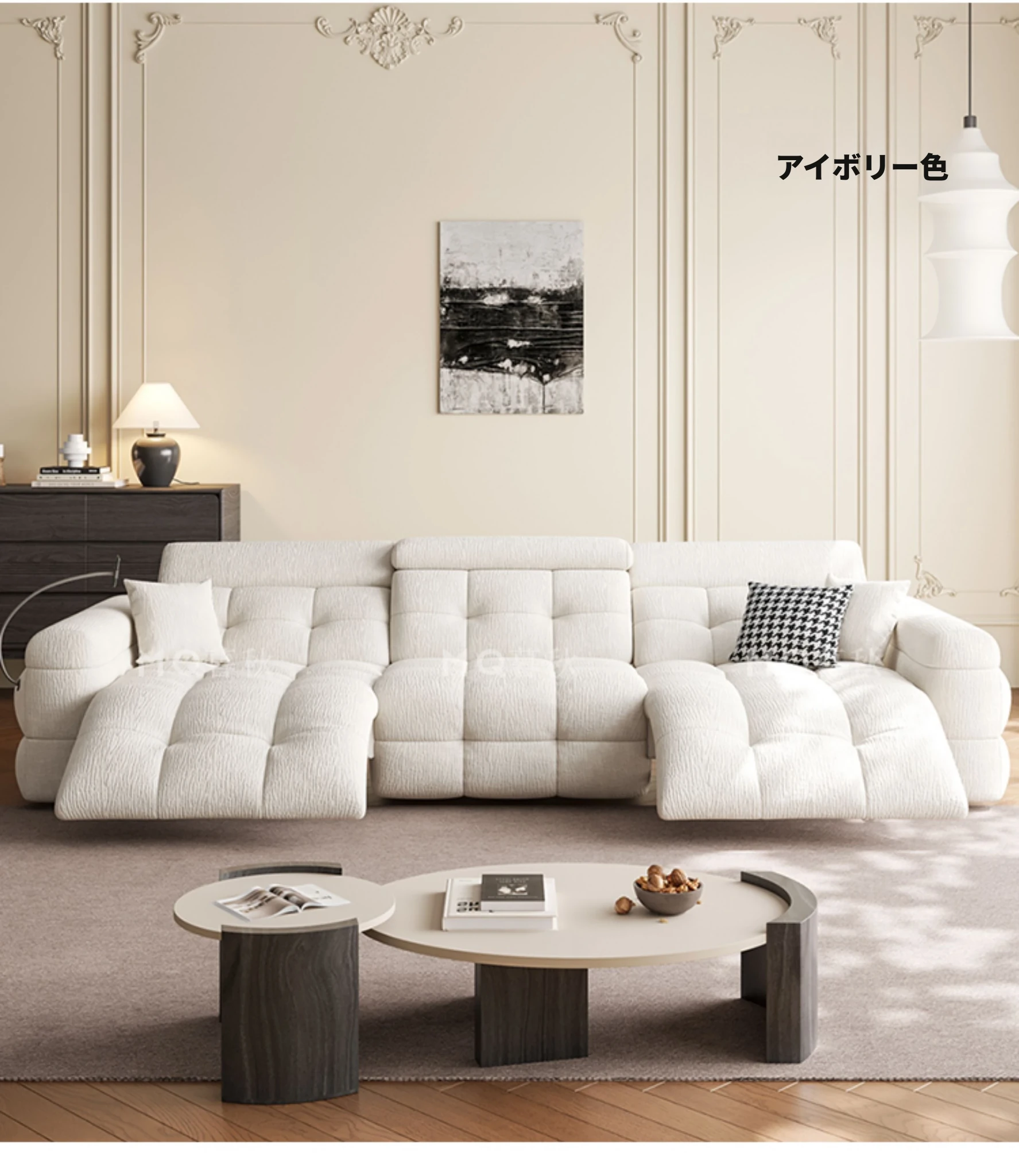 壁に依存しない多機能電動ソファ、レトロなデザインの調整可能なヘッドレスト付き、スマートキャビン風のシェニール生地3人掛けソファ - 快適さとスタイルを兼ね備えた理想のリビング空間を実現!