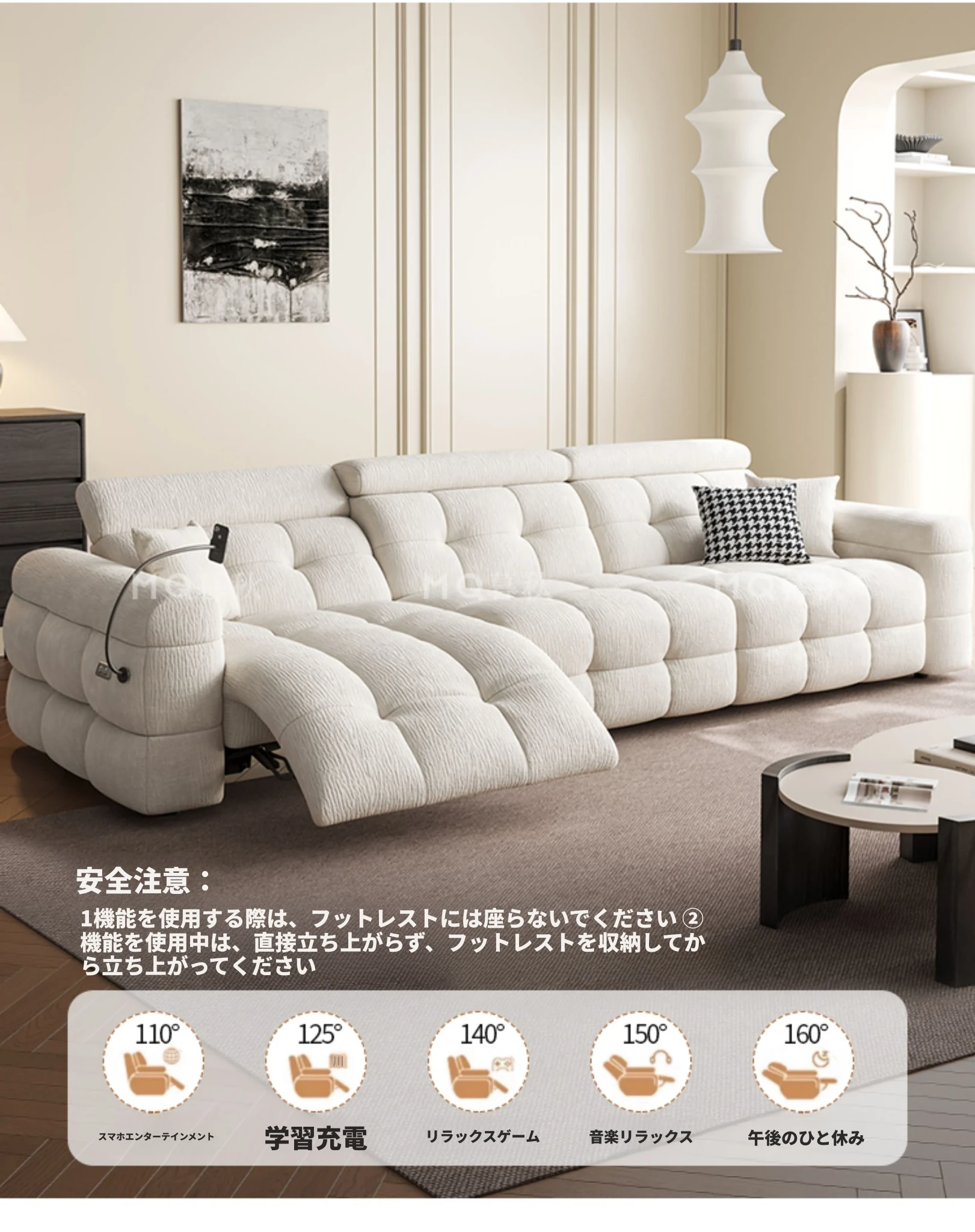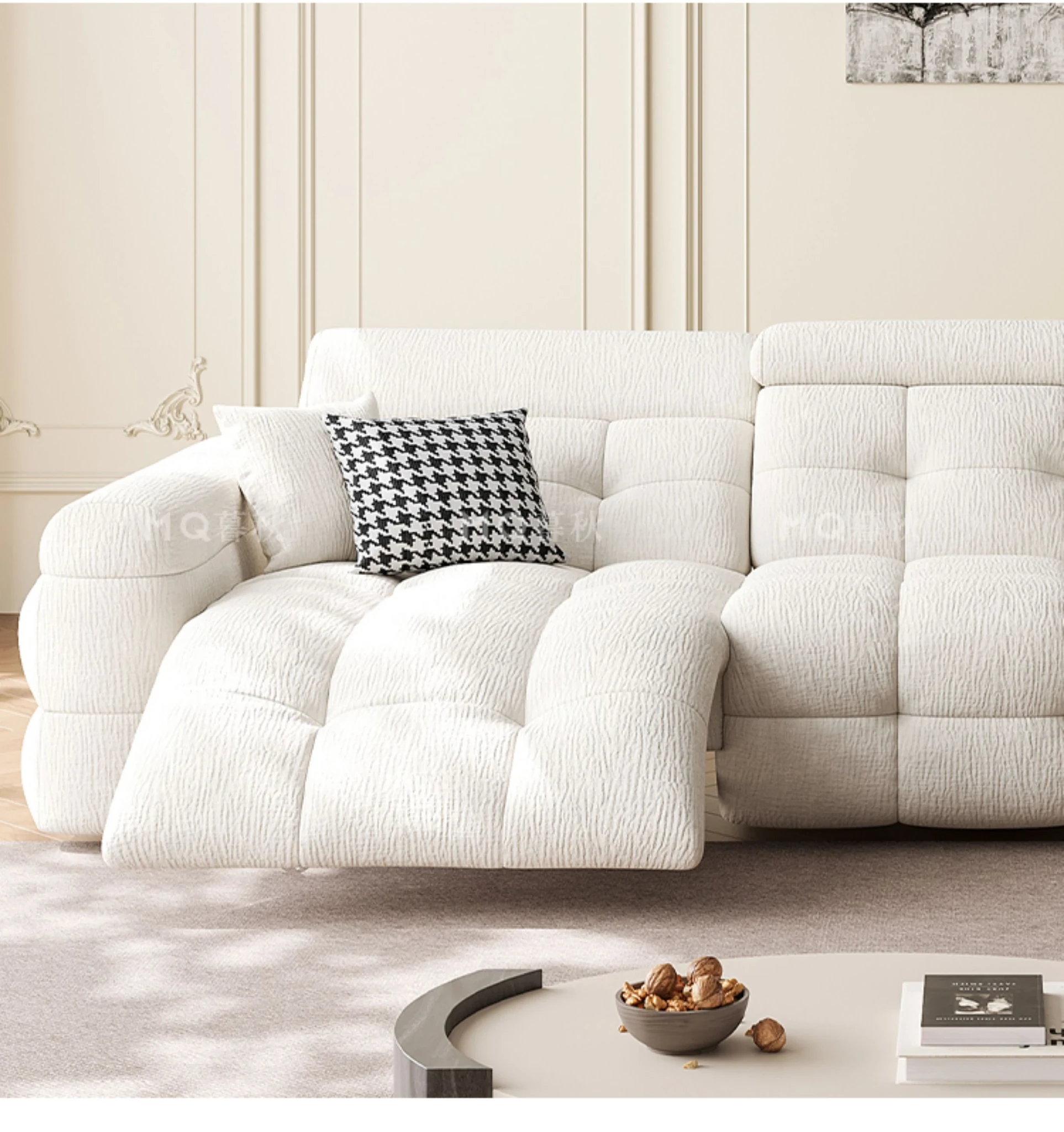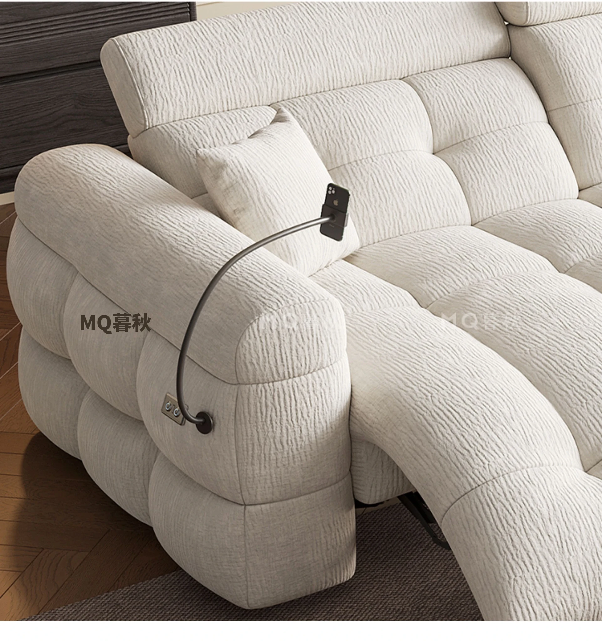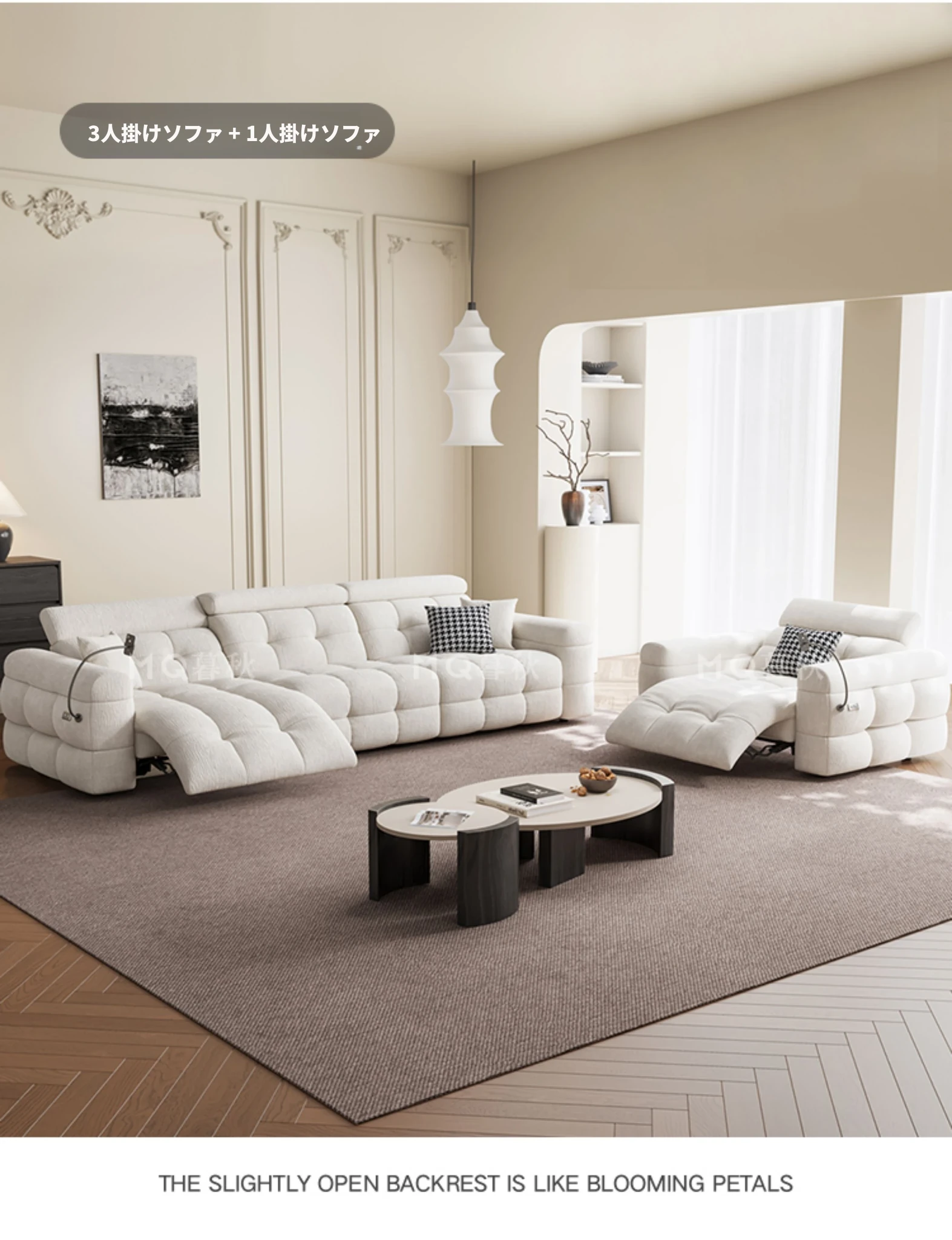 壁に依存しない多機能電動ソファ、レトロなデザインの調整可能なヘッドレスト付き、スマートキャビン風のシェニール生地3人掛けソファ - 快適さとスタイルを兼ね備えた理想のリビング空間を実現!