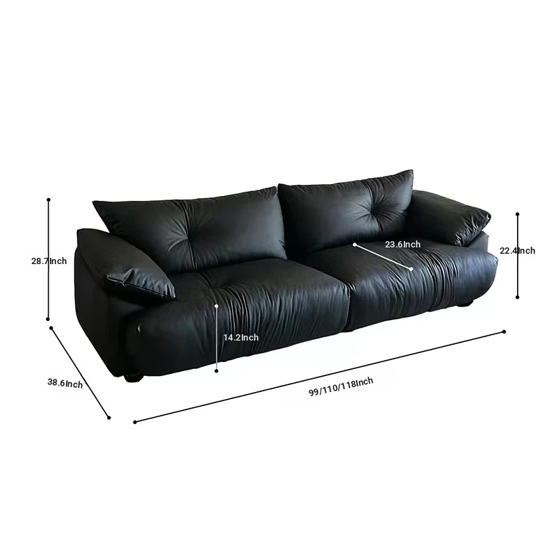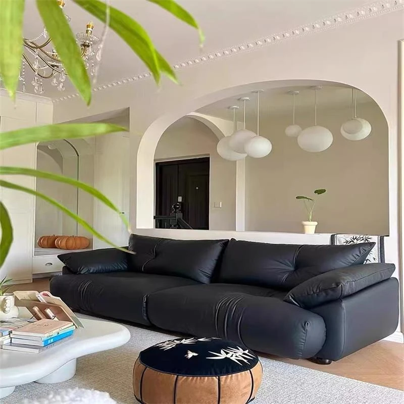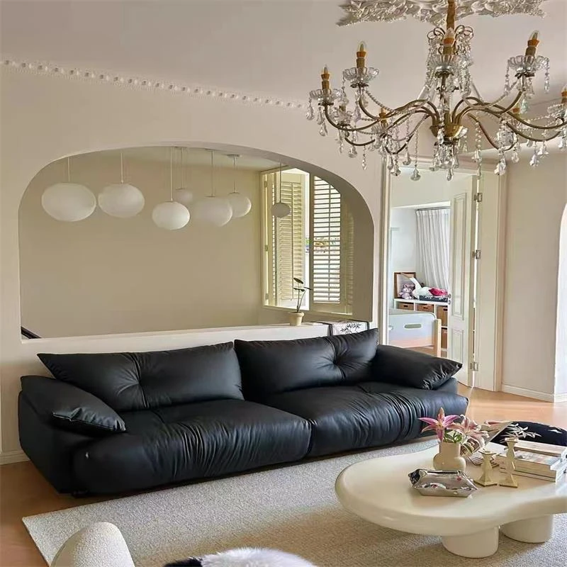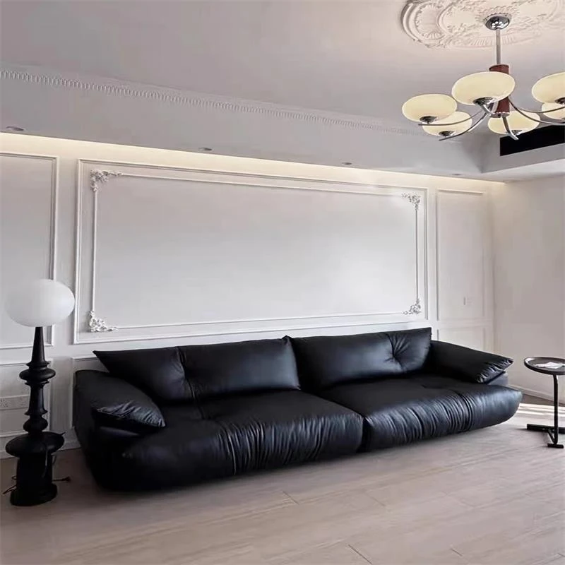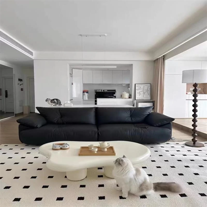 Vintage French Lazy Style Cat Scratching Leather Sofa - Modern Minimalist Italian Designer Living Room Couch with Sleek Straight Lines