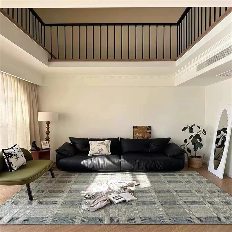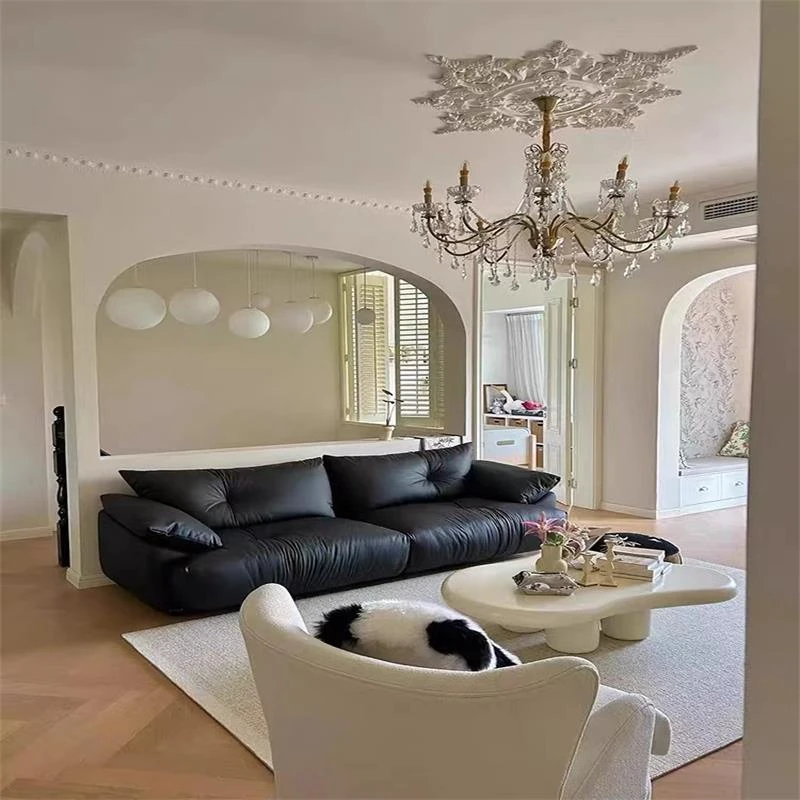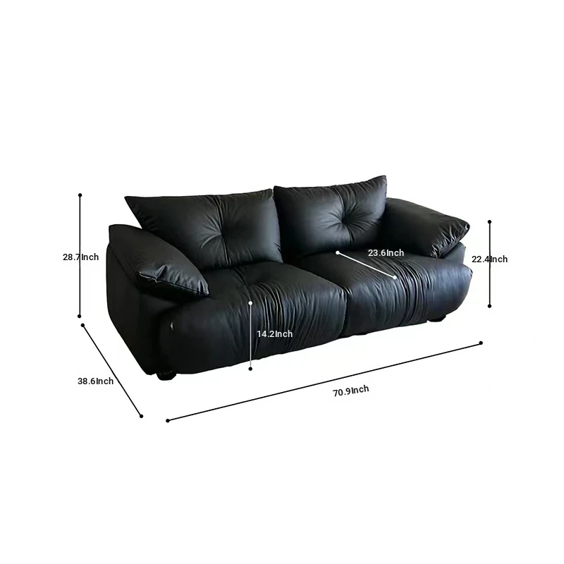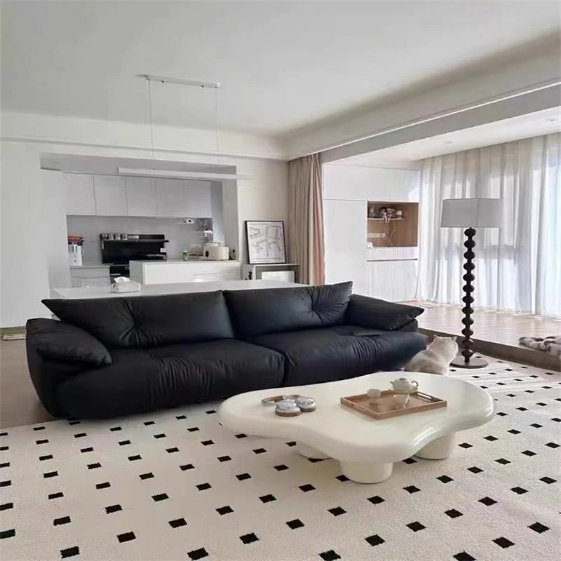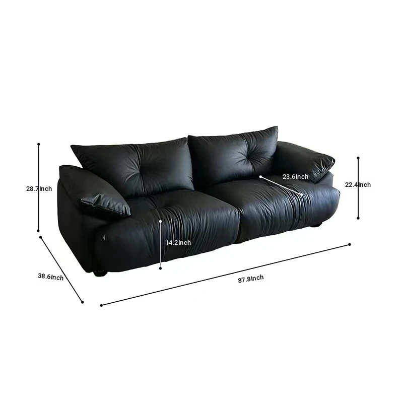 Vintage French Lazy Style Cat Scratching Leather Sofa - Modern Minimalist Italian Designer Living Room Couch with Sleek Straight Lines