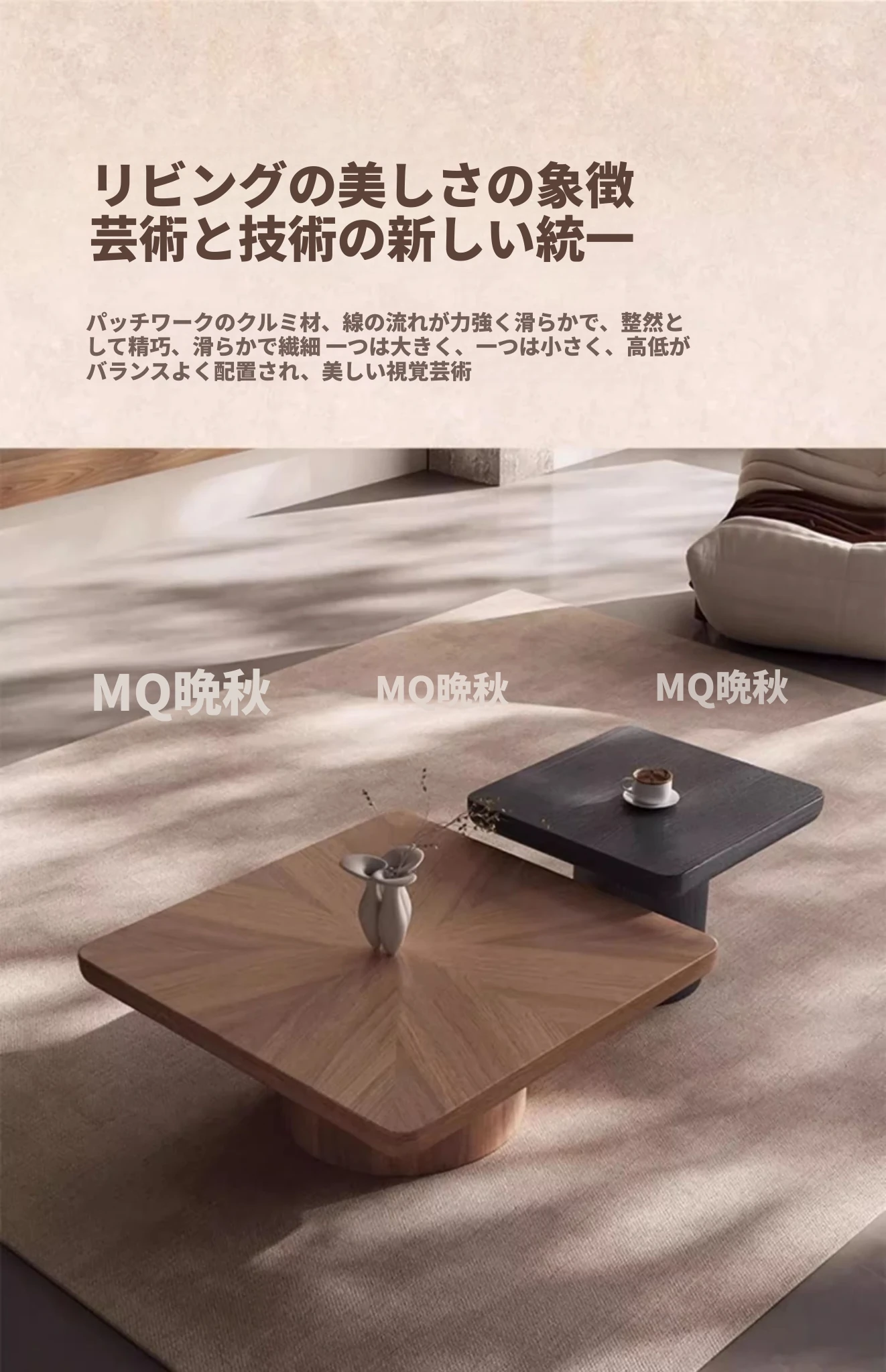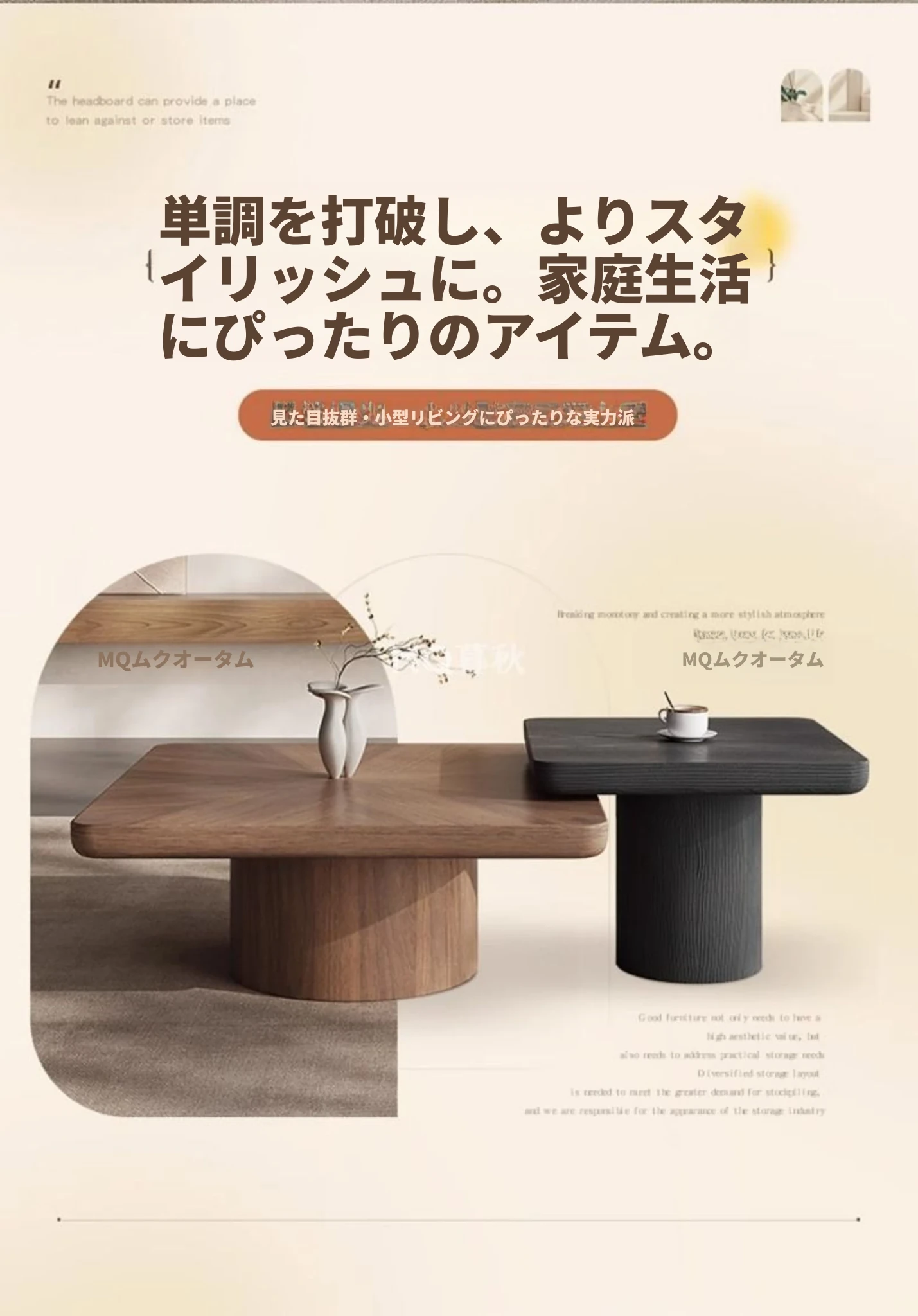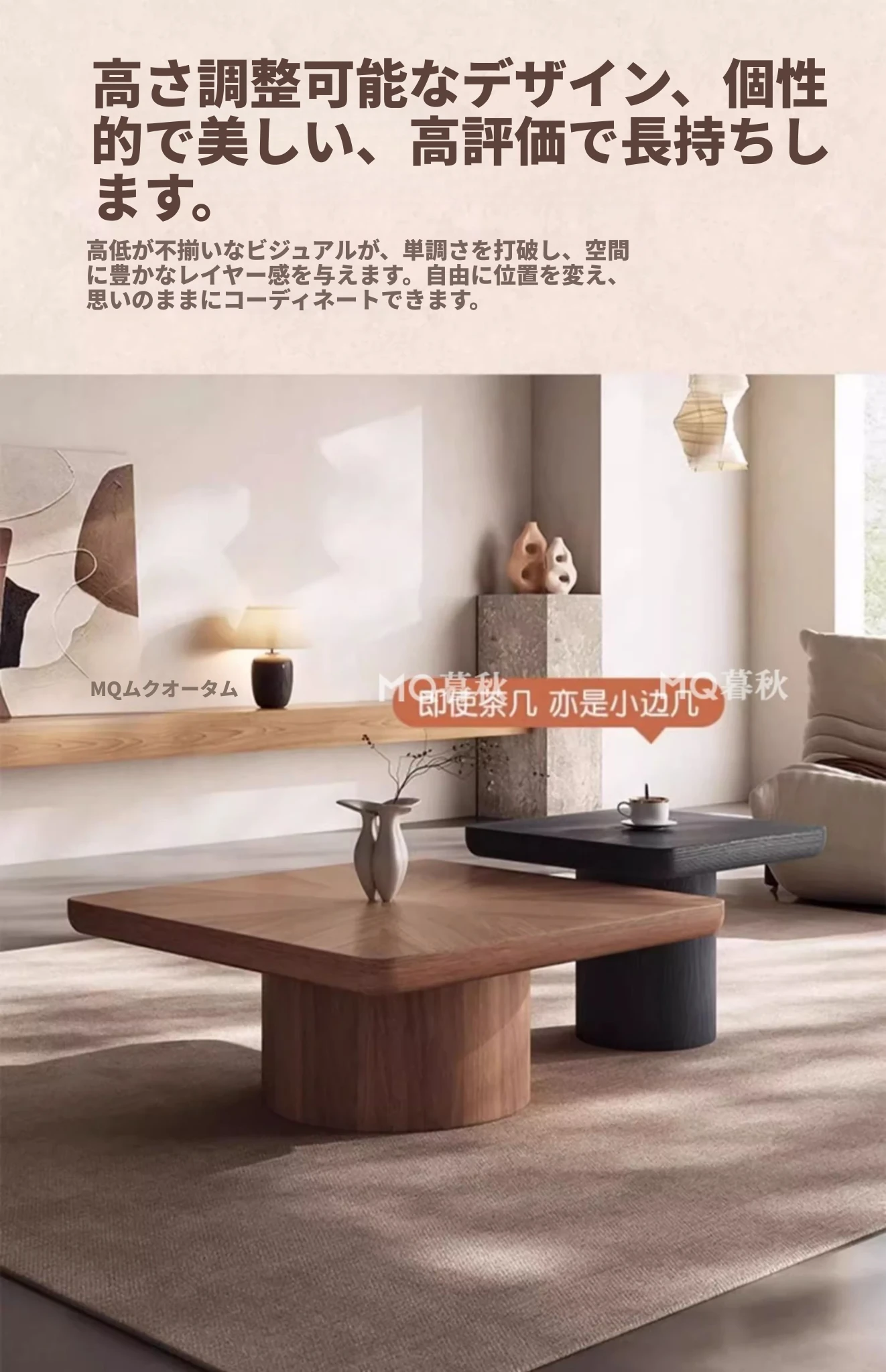 レトロスタイルの無垢材リビングテーブル|イタリアンデザインのミニマルな四角形|小さなお部屋にもぴったりなクリエイティブな中古風テーブル!