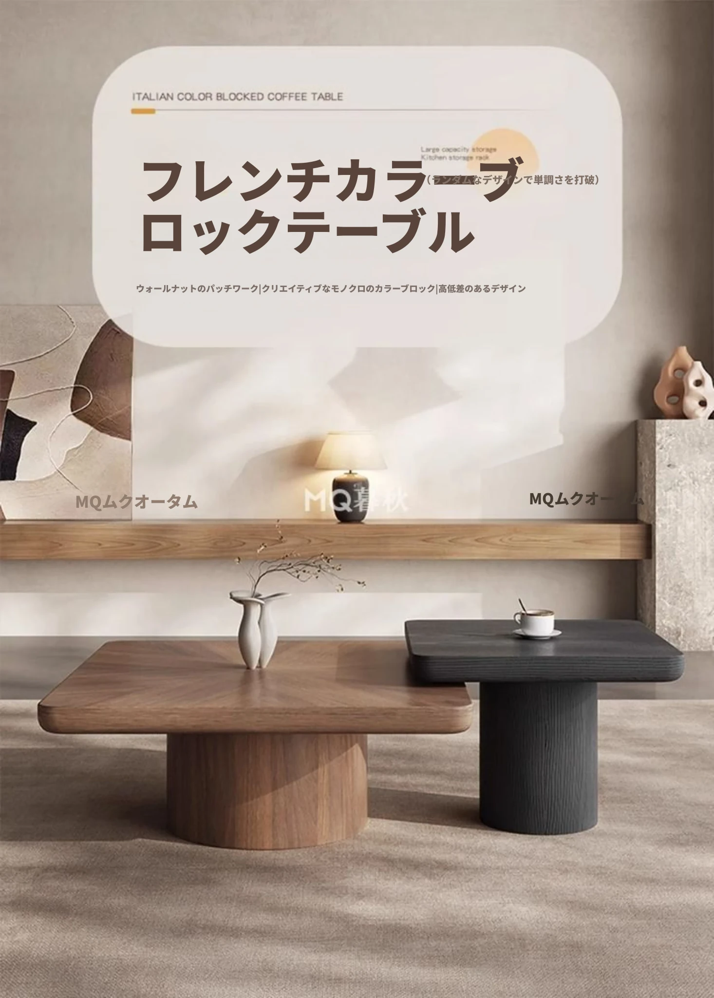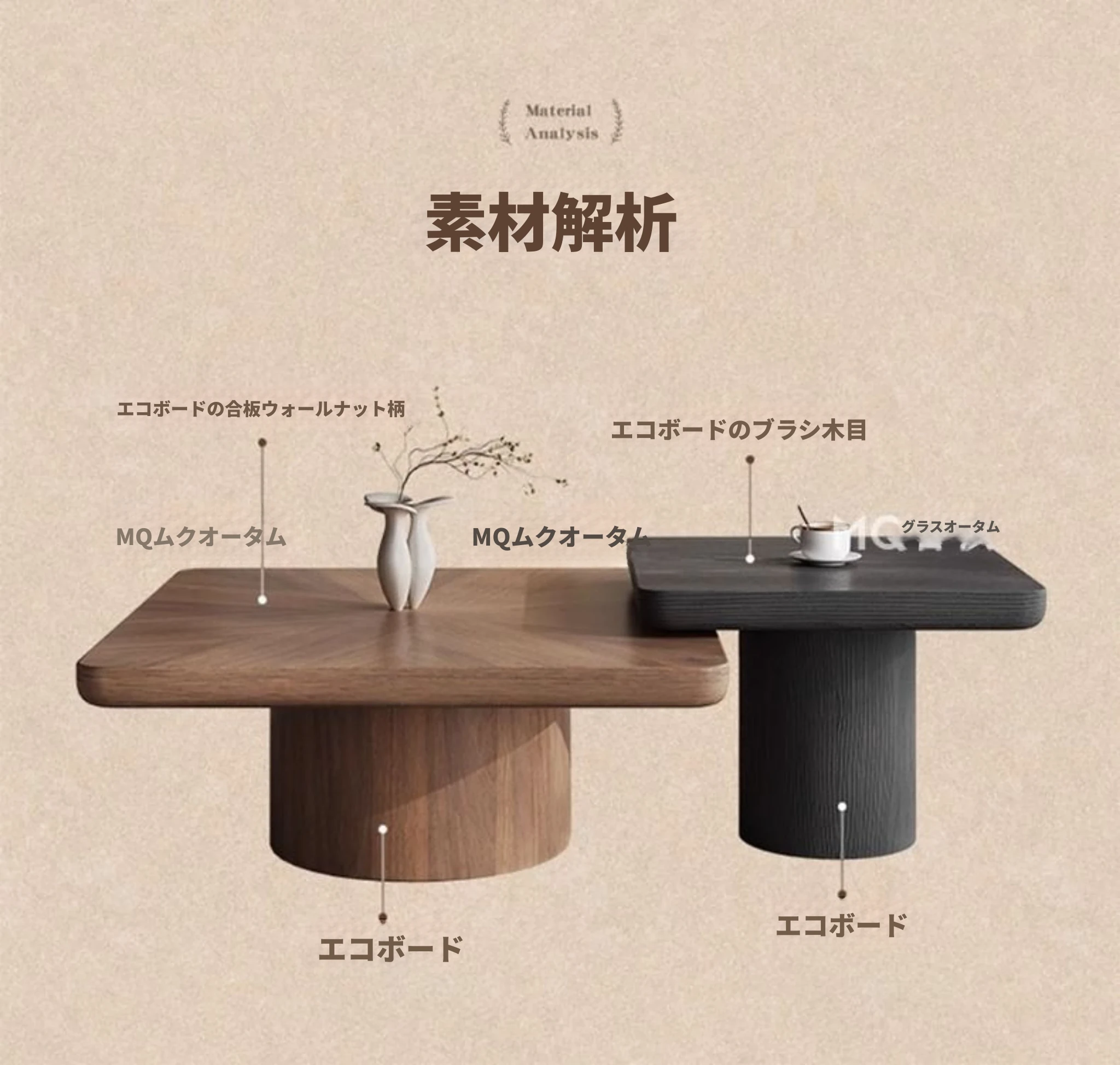 組み合わせコーヒーテーブル (ウォールナット+ダークブラウン)